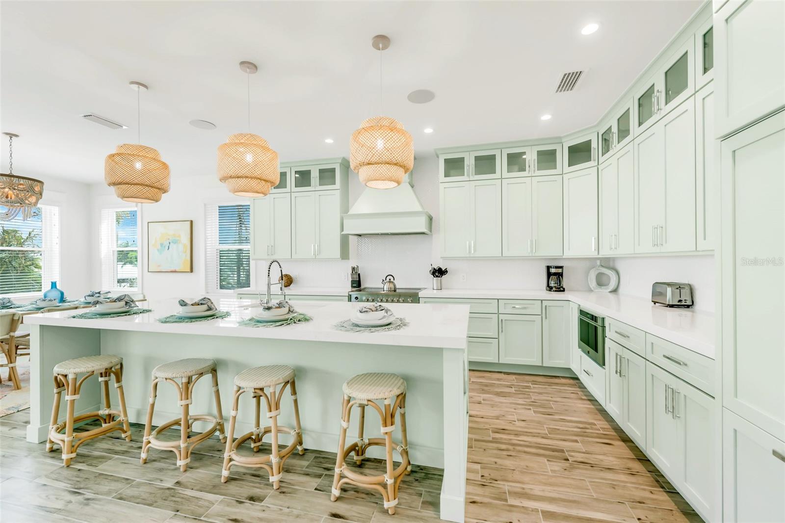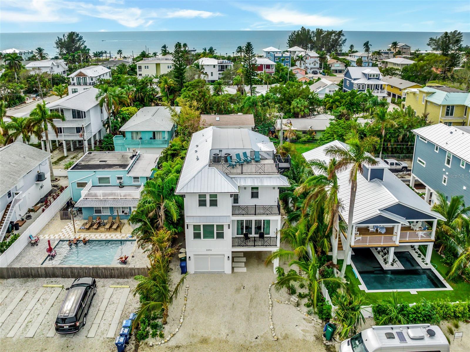 Bem-vindo ao Beachly Beloved, uma ilha paradisíaca de três níveis localizada em um bairro sereno na Ilha Anna Maria, com vistas panorâmicas da Baía de Tampa e do Golfo do México e uma brilhante piscina privativa e banheira de hidromassagem. Esta casa de 7 quartos e 7,5 banheiros foi projetada de tirar o fôlego com uma decoração costeira chique em um layout aberto, tornando sua escapadela luxuosa e conveniente. Divirta-se na sala, conceito aberto e cheio de luz natural com acesso à varanda. A cozinha gourmet totalmente equipada tem bastante balcão de quartzo para preparar refeições, novos eletrodomésticos de aço inoxidável e uma grande ilha com bancada. Todos os quartos foram projetados pensando no puro conforto, cada um com seu próprio banheiro privativo! Durma e acorde revigorado no quarto principal lindamente decorado, com uma deslumbrante cama king-size e um banheiro privativo tipo spa com box amplo e pia dupla. Do terceiro ao quinto quartos têm tons costeiros, camas king-size e banheiros privativos com chuveiros modernos. O sexto quarto é perfeito para crianças, com um beliche completo com rodízio duplo e banheiro privativo com chuveiro e banheira. O sétimo quarto tem duas camas de solteiro e banheiro privativo com box amplo. Depois de passar dias ensolarados na praia, volte para uma piscina refrescante para mergulhar! O spa com hidromassagem é ultra-calmante após a corrida diária na praia, e a área de estar ao ar livre é coberta. Não se esqueça de ir ao deck da cobertura ao pôr do sol! Descubra a ilha pegando o bonde gratuito da AMI, onde você pode fazer um passeio panorâmico até a Pine Ave, no North End, onde você vai adorar as boutiques, cafés, marcos históricos e sorveterias locais.