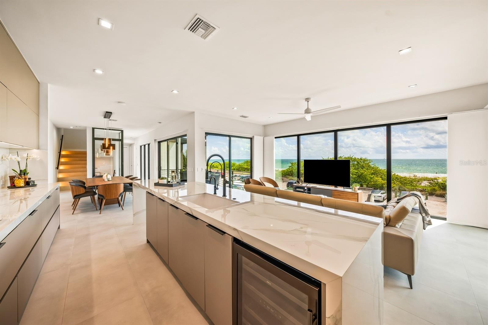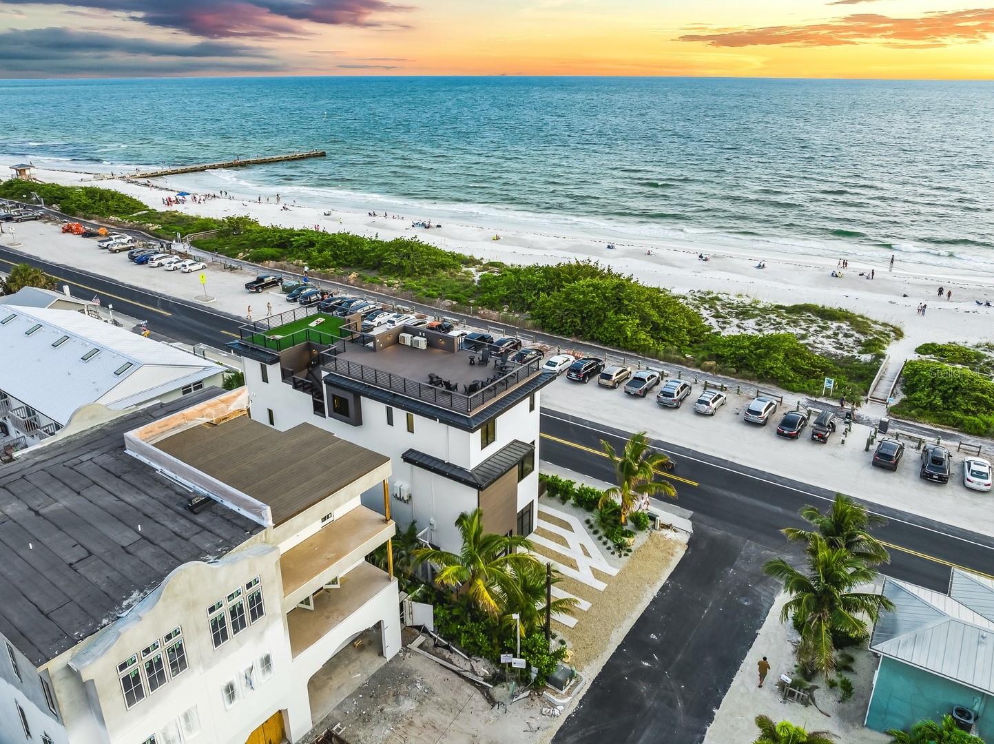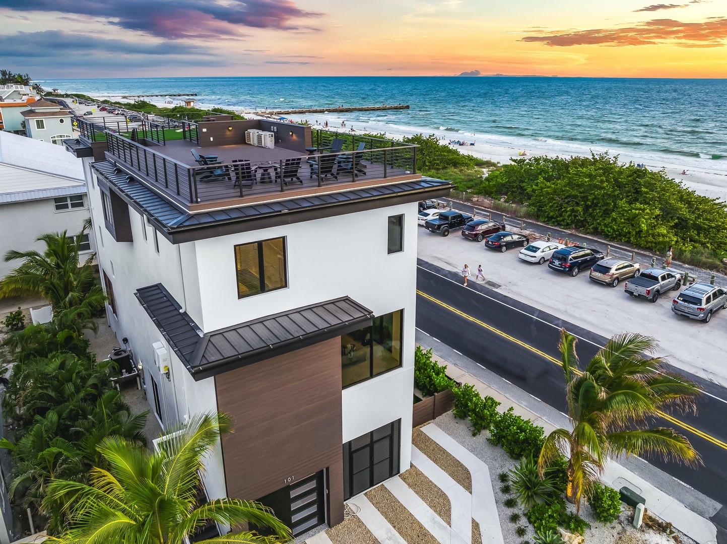 Experimente um luxo incomparável nesta nova casa mobiliada pronta para uso na Ilha Anna Maria, que oferece vistas completas e desobstruídas das praias imaculadas do Golfo do México. Esta requintada residência de seis quartos e cinco banheiros e meio abrange mais de 3.300 pés quadrados de área de estar impecavelmente projetada, onde cada detalhe foi cuidadosamente elaborado para proporcionar conforto e estilo. Esta residência possui elevador, garantindo acessibilidade perfeita em toda a casa. A grande sala de conceito aberto é o coração da casa, apresentando vistas panorâmicas do Golfo que criam o cenário perfeito para relaxamento e entretenimento. Uma cozinha gourmet, equipada com eletrodomésticos de última geração, armários de última geração e uma elegante área de jantar interna, combina perfeitamente funcionalidade com sofisticação. Para quem gosta de jantar ao ar livre, uma espaçosa varanda oferece um ambiente sereno com vistas deslumbrantes para o mar. A suíte principal é um santuário privativo, com uma luxuosa cama king-size, banheiro privativo inspirado em spa com box amplo, banheira de imersão independente e pia dupla. Cada quarto de hóspedes é igualmente convidativo, oferecendo amplo armazenamento e um elevado nível de conforto para família e amigos. Os espaços ao ar livre são projetados para impressionar, com um deck na cobertura que se destaca como a joia da coroa da casa. O espaço ao ar livre é espetacular e possui uma cozinha externa totalmente equipada, assentos confortáveis e uma fogueira aconchegante, onde você pode desfrutar do pôr do sol hipnotizante e das noites estreladas. O quintal é um oásis privado, completo com uma piscina exclusiva e spa no solo, além de um putting green ao lado da piscina, perfeito para relaxar e aproveitar o sol da Flórida. Localizada em Bradenton Beach, esta casa oferece o melhor da vida na ilha, com a praia a poucos passos de distância e restaurantes e lojas locais vibrantes nas proximidades. Seja explorando a ilha através do bonde gratuito, alugando um carrinho de golfe ou passeando pelas ruas pitorescas, esta propriedade coloca você no centro de tudo o que a Ilha Anna Maria tem a oferecer. Oferecendo vistas deslumbrantes da praia em quase todos os quartos, esta casa é uma rara oportunidade de possuir um pedaço do paraíso. Esteja você em busca de sua casa para sempre ou de uma propriedade de investimento lucrativa, esta é a opção certa para você. A casa é atualmente um aluguel por temporada de sucesso. Não perca a oportunidade de tornar este sonho costeiro a sua realidade.