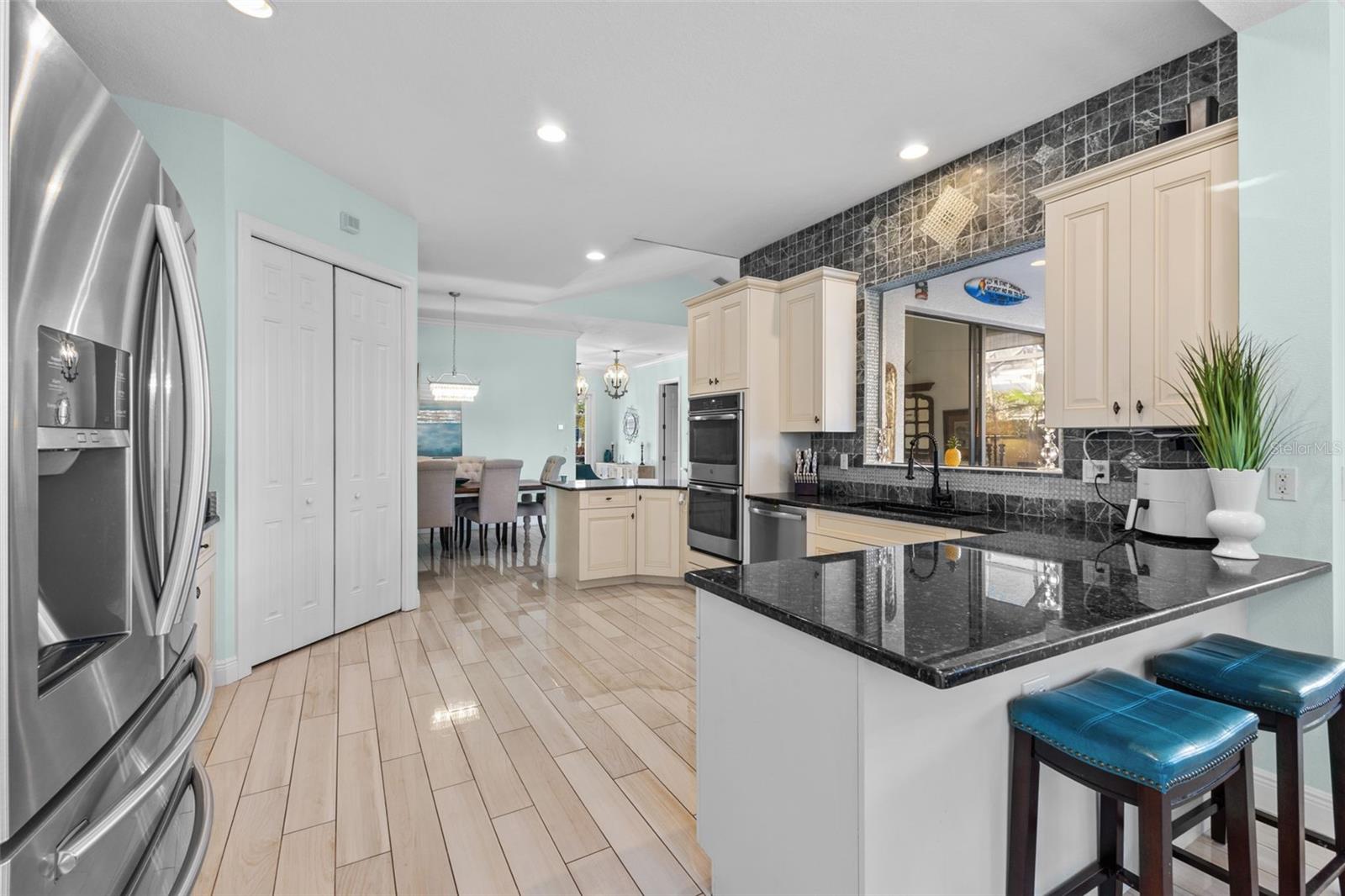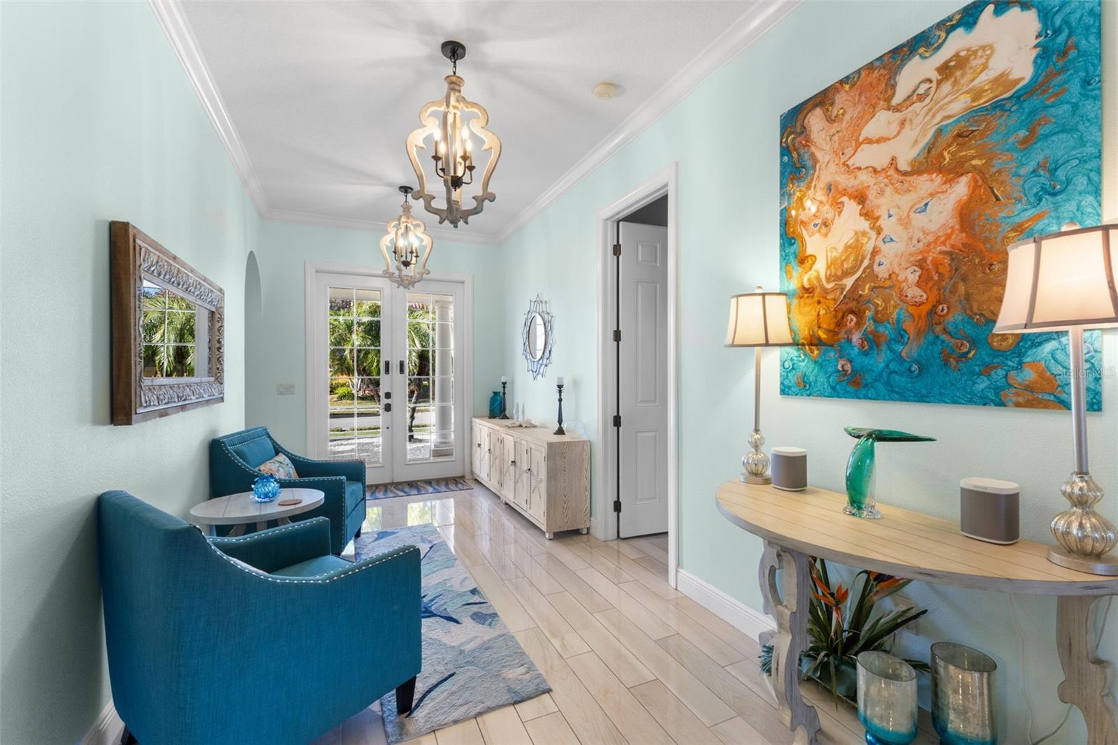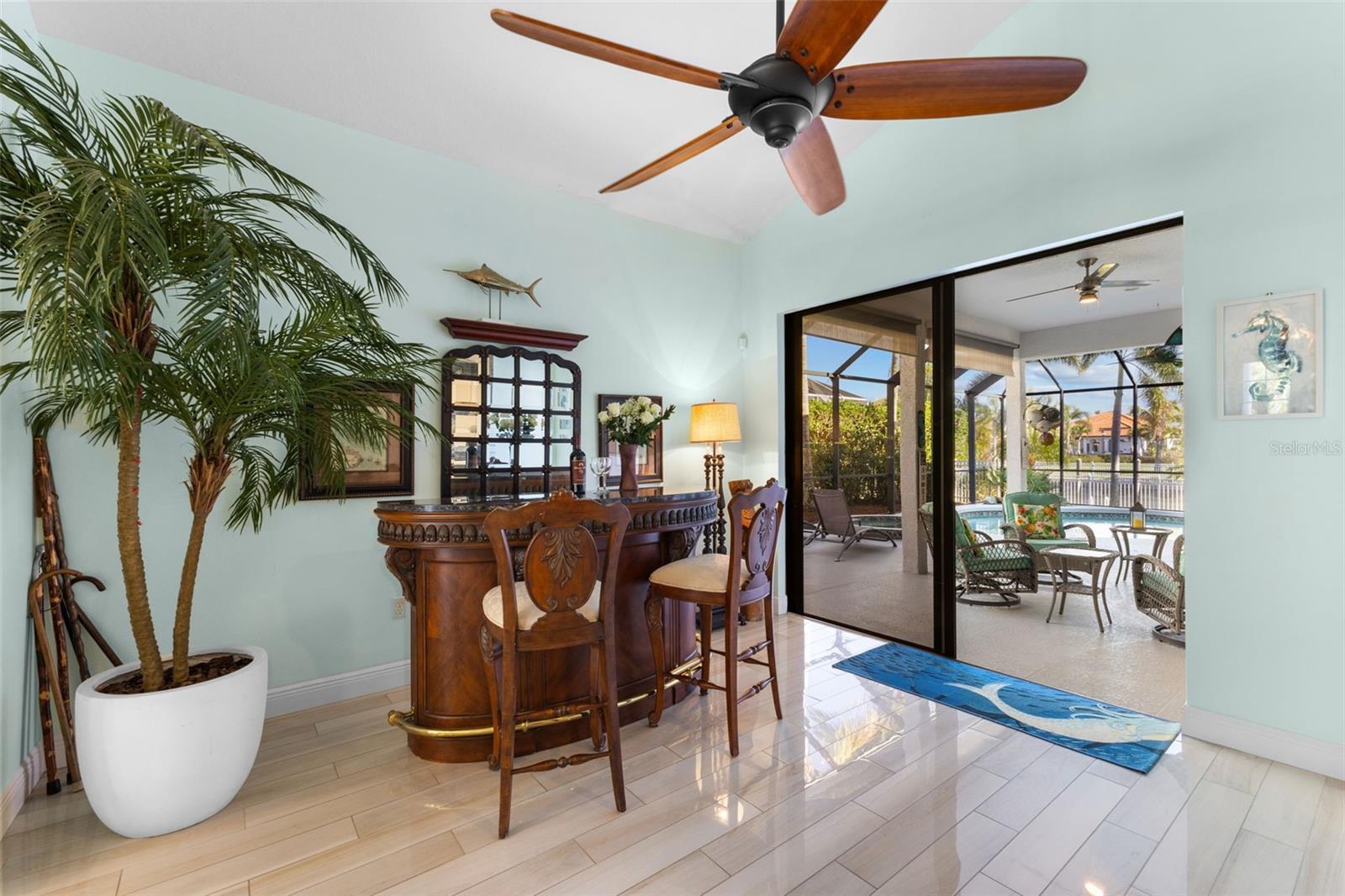A deslumbrante litoral inspirada em 5 quartos, 4 banheiros em casa com doca de barco, piscina, spa, garagem de 3 carros e 2 x Lanai's para o nascer do sol e o pôr do sol. Localizado nas entradas altamente procuradas no rio Manatee, esta casa atualizada com bom gosto tem tudo o que você precisa para viver o estilo de vida perfeito da Flórida. 4 quartos no primeiro andar e uma suíte em Law no segundo andar com sua própria sala de estar, quarto, banheiro completo e uma varanda com vista para a água. A doca do barco fica em um canal de água doce conectada através de um elevador à água salgada. A doca de água doce permite menos manutenção em seu barco. Esta casa lindamente mantida possui uma fogão a gás, forno duplo e portas de canto zero que conduzem da área de jantar para o primeiro pátio exibido. Uma piscina, spa e uma grande TV completam o primeiro lanai com vistas para a água e não têm outras casas com vista para este oásis. O 2º Lanai é perfeito para o pôr do sol noturno e grelhando com vistas privadas com água. A sala de estar se abre de ambos os lados para o 2º Lanai, proporcionando uma verdadeira experiência interna/externa. Além dos 3280 pés quadrados de espaço de estar, há mais de 800 pés quadrados de área externa coberta com um toldo retrátil no West Lanai. O quintal de grandes dimensões é totalmente cercado e ideal para animais de estimação e crianças. Um gerador generac completo foi instalado em 2023. Há uma nova trilha conectando os dois Lanai na parte externa da casa. As entradas são uma comunidade amigável à beira do rio que é meticulosamente paisagística com palmeiras maduras. Para completar tudo, a comunidade tem um HOA baixo e sem CDD, esta é uma jóia verdadeira.