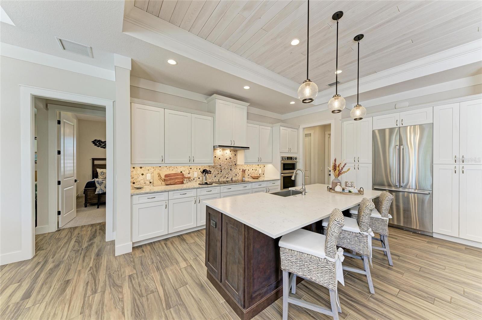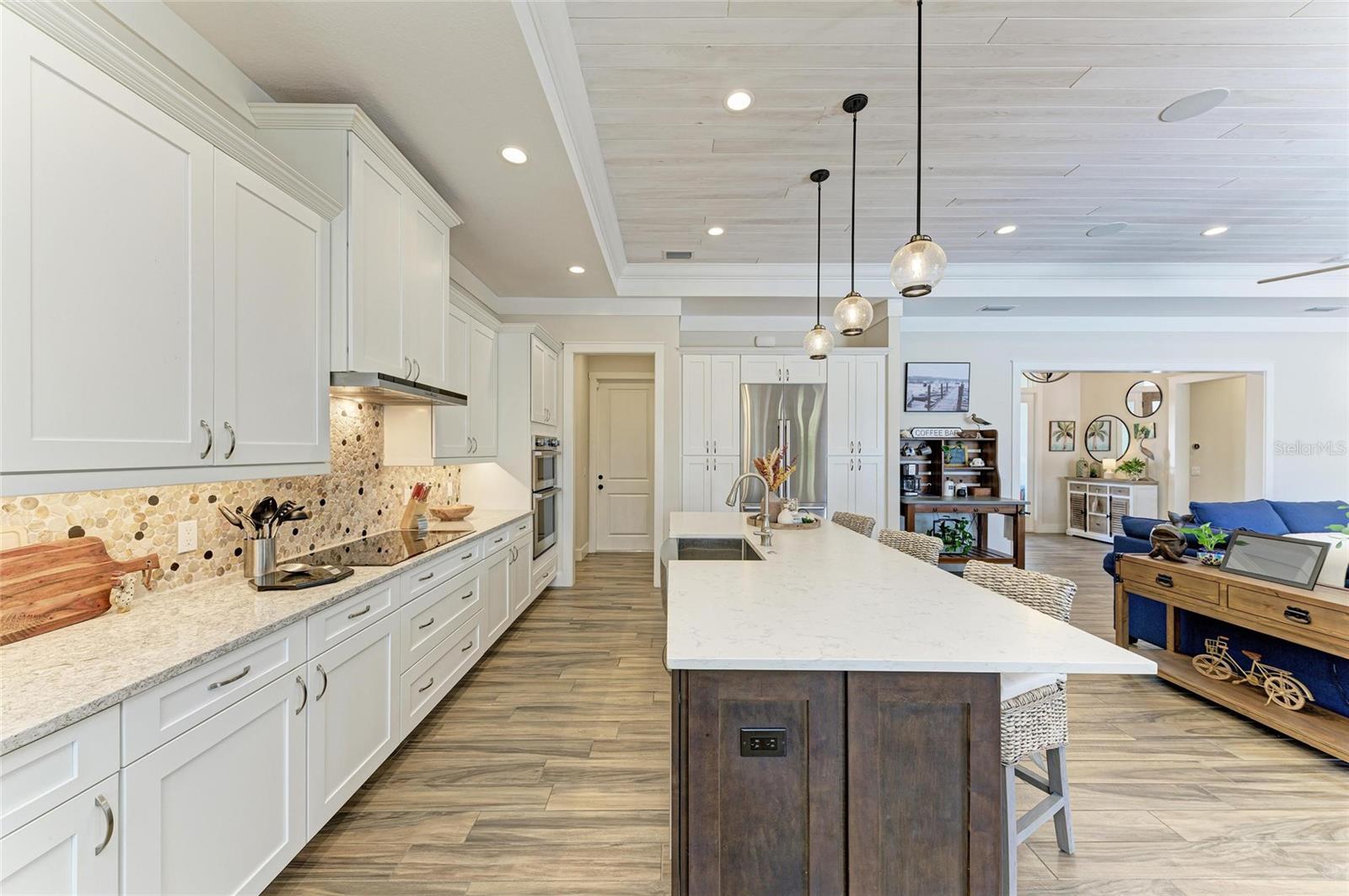 Procurando mais terras, em uma comunidade menor com taxas baixas de HOA? O Luxo Coastal encontra o charme atemporal nesta casa de modelo construída personalizada, de Bruce Williams, oferecendo uma tonelada de atualizações extras, como belas tábuas de teto de teto e tábuas de madeira de teto de cipreste, pontos de acesso da onipresença de grau corporativo para capacidade máxima de alcance Wi Fi e luxuriosos modernos por toda parte. Este modelo de 3 quartos de 3 banheiros e Spanish Creek é construído com uma mistura requintada de elegância costeira e design atencioso, aninhado na encantadora e íntima comunidade do rio sinuoso. Esta casa de qualidade foi construída com isolamento Icynene e possui baixas janelas resistentes ao impacto e para adicionar eficiência energética. Aprecie as vistas deslumbrantes de uma reserva pacífica e lagoa, esta casa fica em quase 1/2 acre e oferece a privacidade e a serenidade que você sonha. Passe pela bela porta de vidro e deixe a abundante luz natural e tetos altos de volume tirar o fôlego. Cada detalhe foi projetado para evocar calor e caráter, a partir das colunas naturais com fichas na entrada das portas de vidro deslizantes de bolso que apagam a linha entre a vida interna e externa. O coração da casa é a cozinha dos sonhos de um chef, onde as bancadas de quartzo de Cambria, um backsplash de pedra natural e aparelhos de última geração, incluindo um forno de convecção/combinação de microondas, cooktop de indução e uma geladeira com câmeras embutidas criam o espaço perfeito para reunir, cozinhar e fazer memórias. A expansiva ilha central é onde as conversas fluem, as refeições são compartilhadas e a vida acontece. O retiro do proprietário não é nada menos que um santuário. Acorde para belas vistas da piscina cintilante, saia para o Lanai com o seu café da manhã e relaxe no seu banho-mestre semelhante a um spa, completo com uma banheira de imersão profunda, vaidades duplas e um armário personalizado que parece uma boutique. Mas a magia não para por aí. Um segundo espaço de estar oferece o local perfeito para uma sala de TV aconchegante, sala de bônus, um recanto de leitura pacífico ou uma fuga criativa. A despensa e a lavanderia de grandes dimensões torna a vida diária sem esforço, enquanto a garagem para carros triplos com tetos altos garante que haja um lugar para tudo. Saia e você sentirá que entrou em um paraíso particular. A piscina de água salgada aquecida brilha sob o sol da Flórida, completa com uma prateleira de sol para relaxar. A nova velocidade variável Pentair Intelflo Pool Bomba higieniza a água salgada enquanto você nada. Ouça sua música favorita em toda a casa com o Origin Acoustics Media Hub, fornecendo qualidade de som superior que pode usar a tecnologia Alexa. O Lanai extra grande foi projetado para reuniões inesquecíveis, noites tranquilas e noites sem fim de verão. Escondido em uma comunidade pequena e acolhedora, esta casa oferece uma rara mistura de luxo e tranquilidade, com uma rampa de barco particular para apenas os membros da comunidade, a poucos momentos de distância. Seja você está divertido, descontraído ou simplesmente desfrutando da beleza da natureza ao seu redor, isso é mais do que um lar, é um estilo de vida. Se você está procurando taxas baixas de HOA e sem CDD, esta casa é para você. Não perca a chance de se apaixonar e agendar sua turnê privada hoje. Os tamanhos dos quartos são estimados e devem ser verificados. Comprador para verificar todas as regras e documentos do HOA. Todas as informações são consideradas precisas e verdadeiras, mas é responsabilidade dos compradores verificar as informações