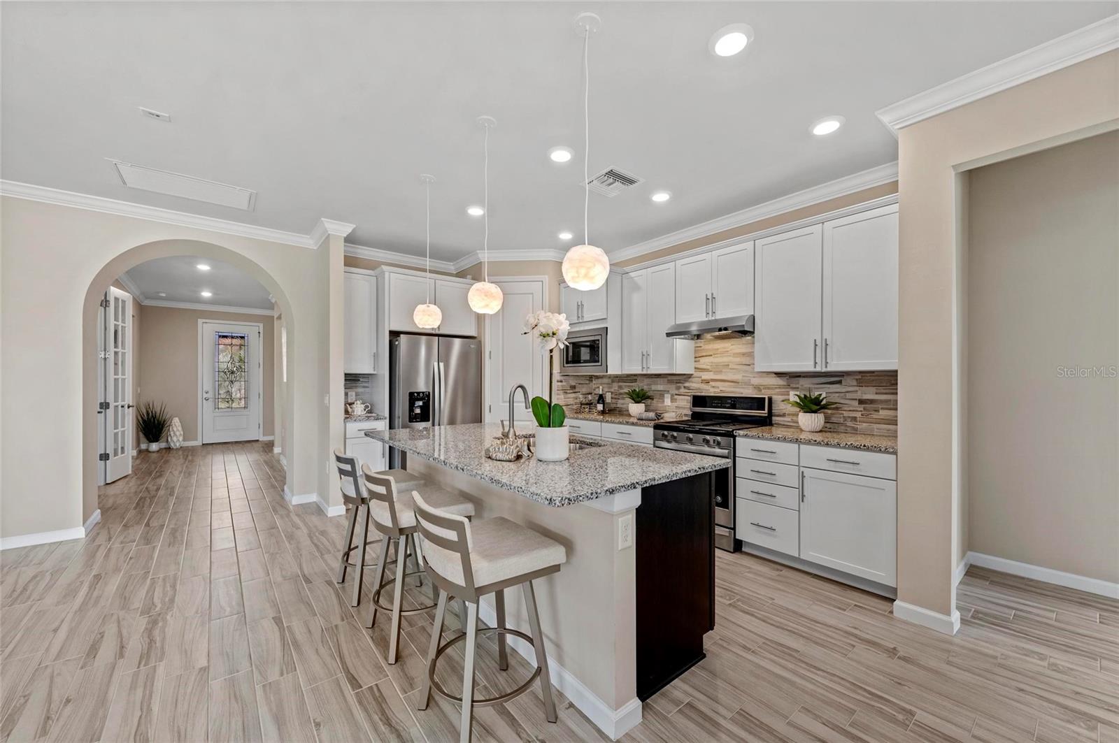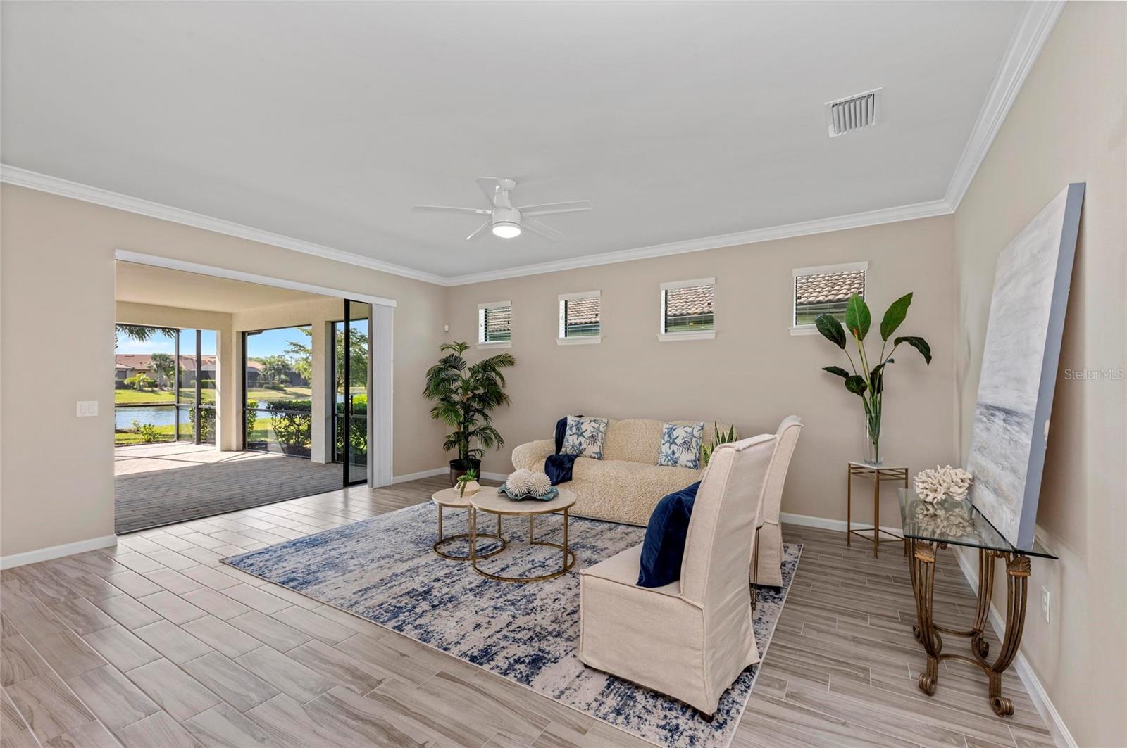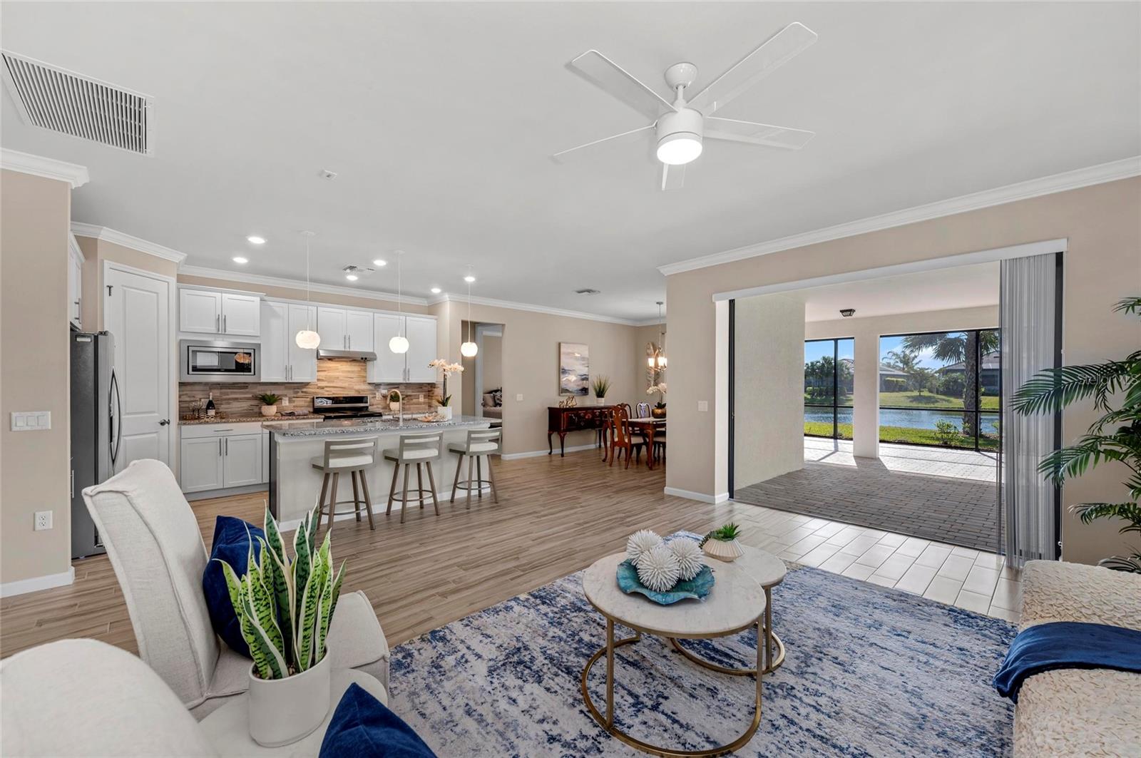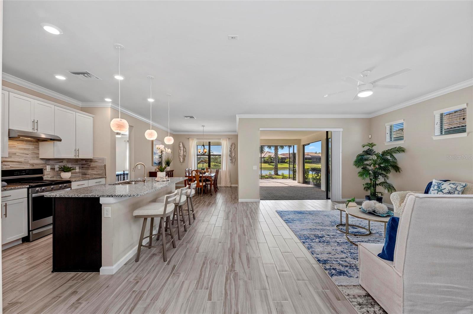 AH QUE VISTA!!! e APENAS REDUZIDO !!! Este é o que você estava esperando!!! Modelo Summerwood à beira-mar imaculadamente mantido e atualizado em Del Webb em Lakewood Ranch com uma enorme varanda estendida de 643 pés quadrados para melhorar suas vistas para o mar. Perfeito para entretenimento ao ar livre. Muitas atualizações, como varanda frontal com tela para uma brisa cruzada maravilhosa, persianas, portas de vidro para flexibilizar a sala/escritório, iluminação pendente na cozinha, portas de vidro deslizantes para varanda, escadas suspensas para o sótão com piso de madeira compensada para armazenamento e muito mais!!! Del Webb Lakewood Ranch é a principal comunidade ativa com mais de 55 anos, onde uma vida excepcional o aguarda! Del Webb está localizado no desenvolvimento planejado multigeracional número 1 do país. Este lindo modelo Summerwood apresenta uma planta aberta e iluminada, 2 quartos, um escritório/sala flexível, 2 banheiros e garagem para 2 carros, além de espaço de garagem tandem bônus, perfeito para armazenamento ou um carrinho de golfe. No Del Webb Lakewood Ranch, você desfrutará de comodidades de classe mundial, incluindo 6 quadras de tênis, 8 quadras de pickleball, bocha, academia de ginástica de última geração, aulas em grupo, piscina estilo resort e piscina olímpica, restaurante e bar no local e uma variedade de clubes e atividades sociais supervisionadas por um Diretor de Estilo de Vida em tempo integral. Venha ver por si mesmo o mais rápido possível!!!