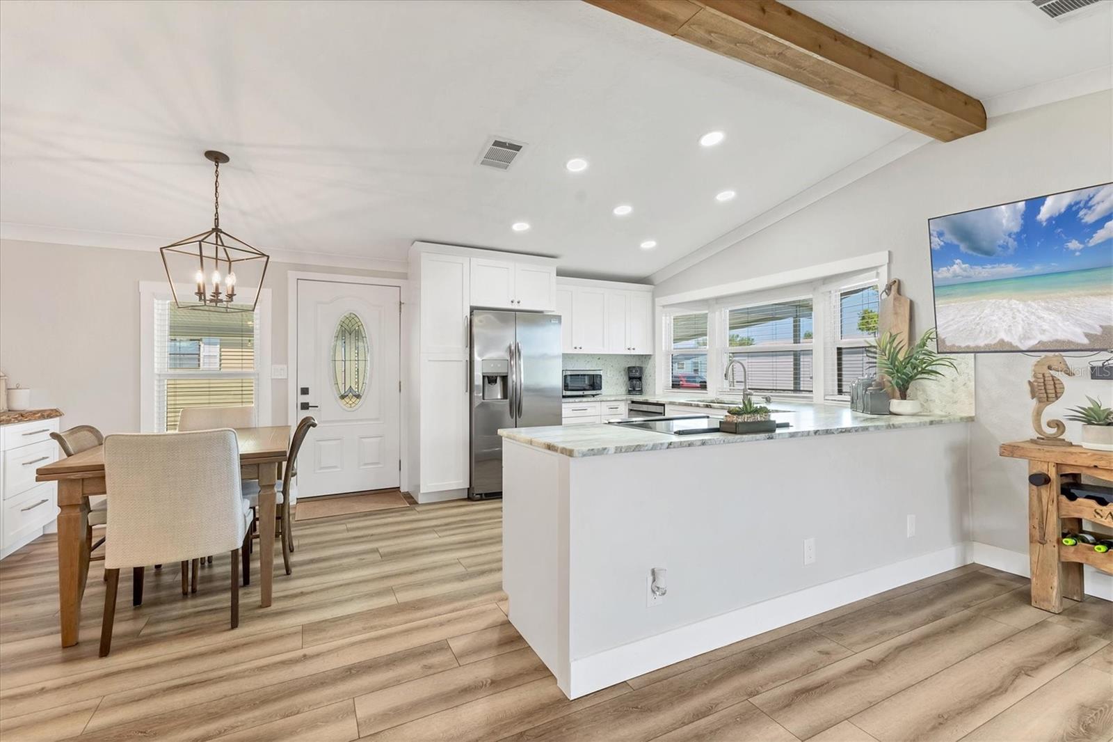Bem -vindo à sua casa de sonho em Gold Tree Mobile Home Community, um dos mais desejáveis de 55 bairros de Sarasota! Esta casa totalmente remodelada de 2 quartos e 2 banheiros, com um escritório/Den adicional, verifica todas as caixas para uma vida moderna e confortável. Entre e fique impressionado com a espaçosa plano de piso conceito aberto, inundado com luz natural e aprimorado por tetos abobadados e pisos de tábuas de vinil de luxo por toda parte. Moldagem da coroa e acabamento atualizado Adicione um toque elegante, enquanto os grandes ventiladores de teto mantêm o espaço fresco e confortável o ano todo. O coração da casa é a cozinha do chef personalizado, com bancadas em granito, abundante espaço de contador, gavetas de close suave, um backsplash de ladrilhos de grife e amplo armazenamento, perfeito para entretenimento ou vida cotidiana. A grande área de estar adjacente flui perfeitamente para a sua linha frontal fechada e selecionada, oferecendo vistas serenas do lago, ideal para o café da manhã ou o relaxamento da noite. O quarto de hóspedes extra grande possui um armário de grandes dimensões e é servido por um banho de hóspedes incrivelmente remodelado. Retire para a sua enorme suíte primária, completa com outro armário de grandes dimensões e um banho primário semelhante ao spa, com um gabinete de chuveiro personalizado, vaidade dupla e uma estação de maquiagem embutida. Precisa de um espaço de trabalho? A conveniente área de escritório/den oferece flexibilidade para o seu estilo de vida. As vantagens adicionais incluem o workshop de sonho de um trabalhador manual e galpão de armazenamento localizado perto da garagem de 3 carros. Este lote de perímetro muito procurado também oferece toneladas de privacidade. In addition, you can enjoy peace of mind with these recent upgrades: New Roof in 2022, New A/C in 2020, 14” air ducts, New Vapor Barrier, New Ater Heater, New Irrigation system, and New Sod. Gold Tree offers an amenity-rich lifestyle, including tennis courts, pickleball, a heated pool and spa, fitness center, shuffleboard, and a catch-and-release fishing lake, not to mention an on-site storage Yard para o seu barco, RV ou trailer.