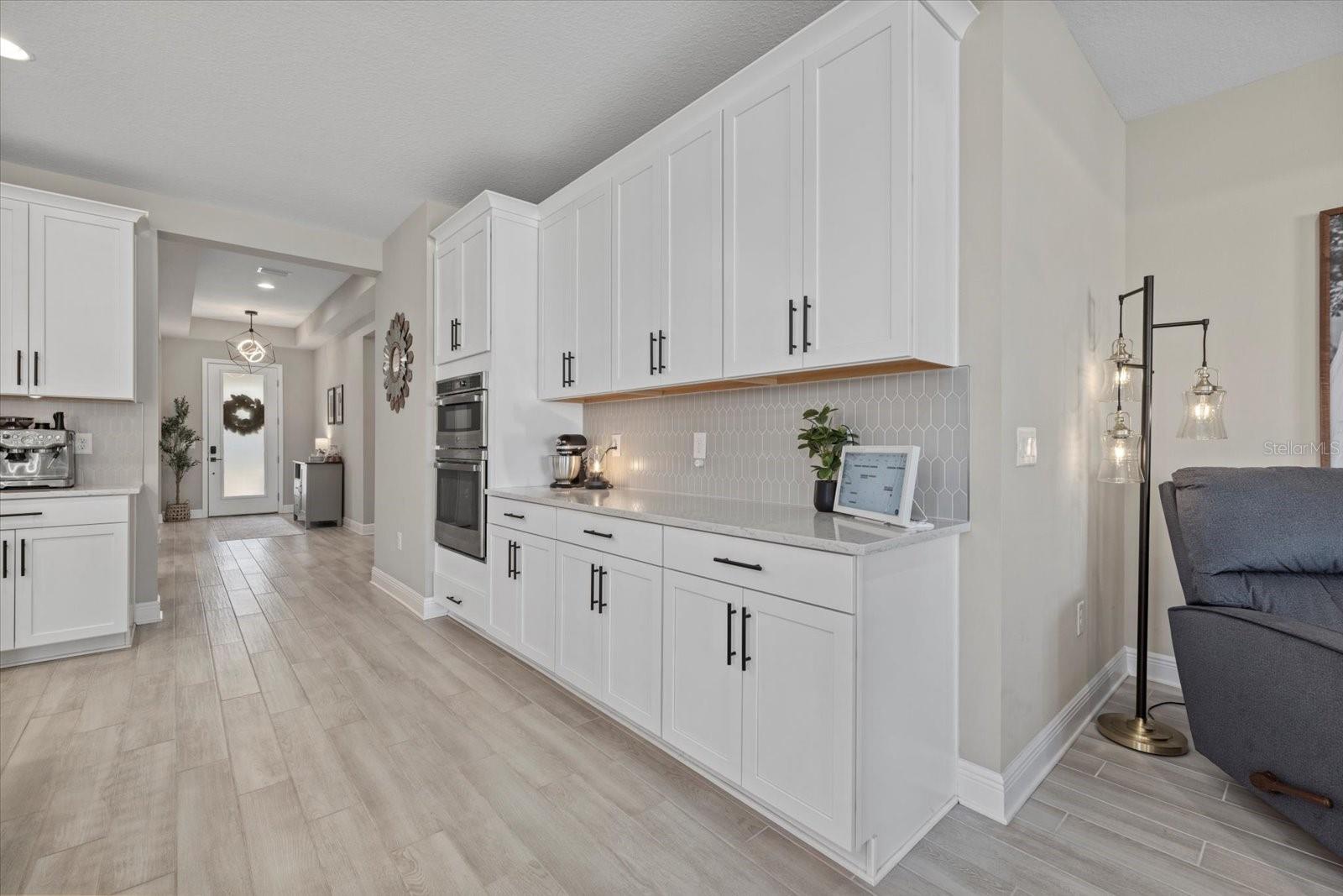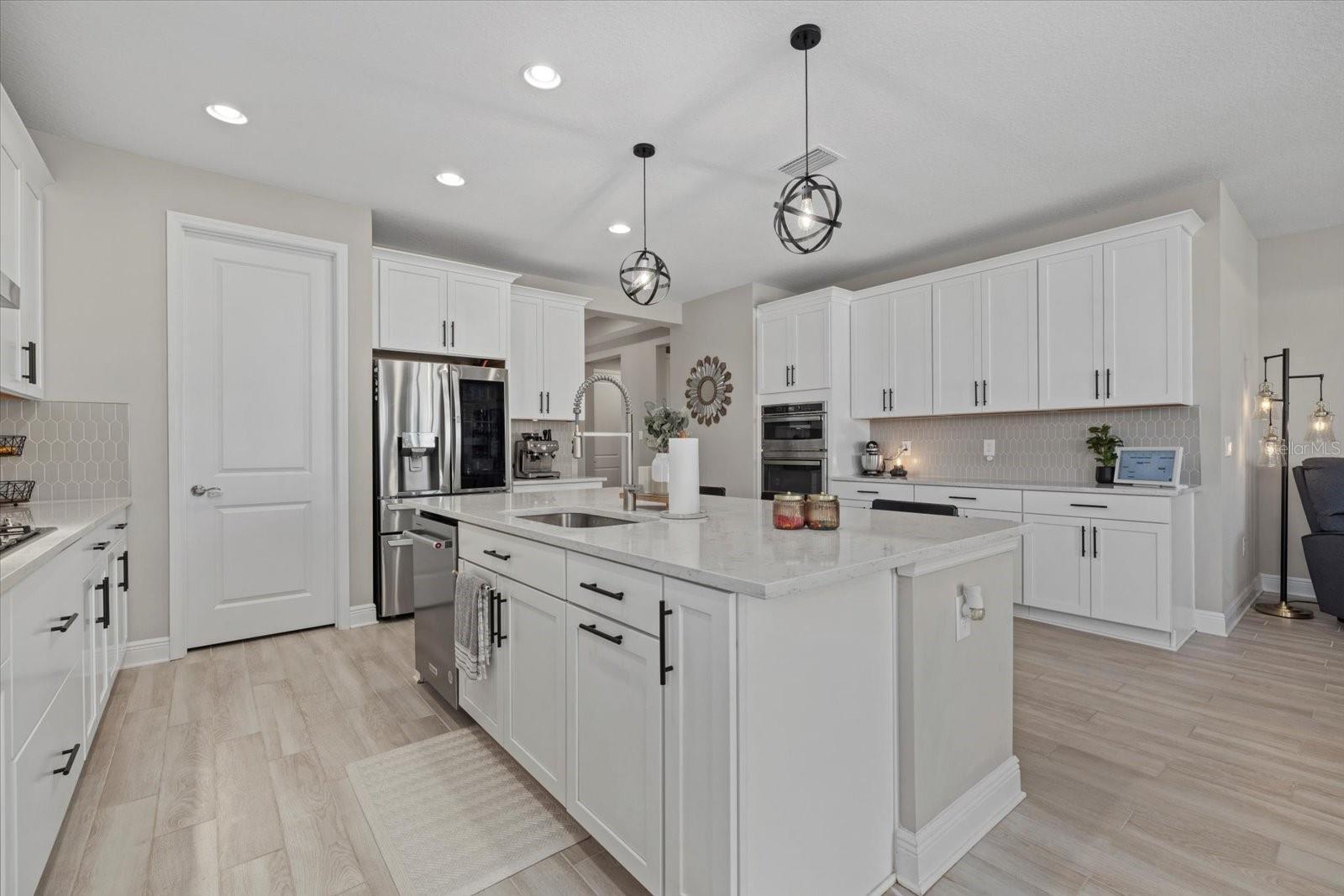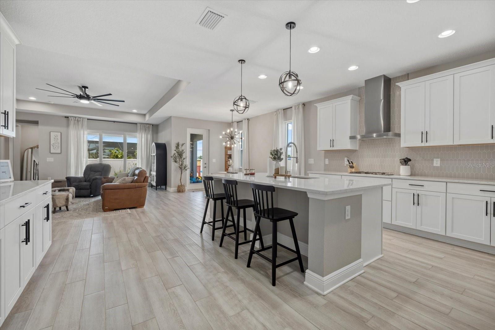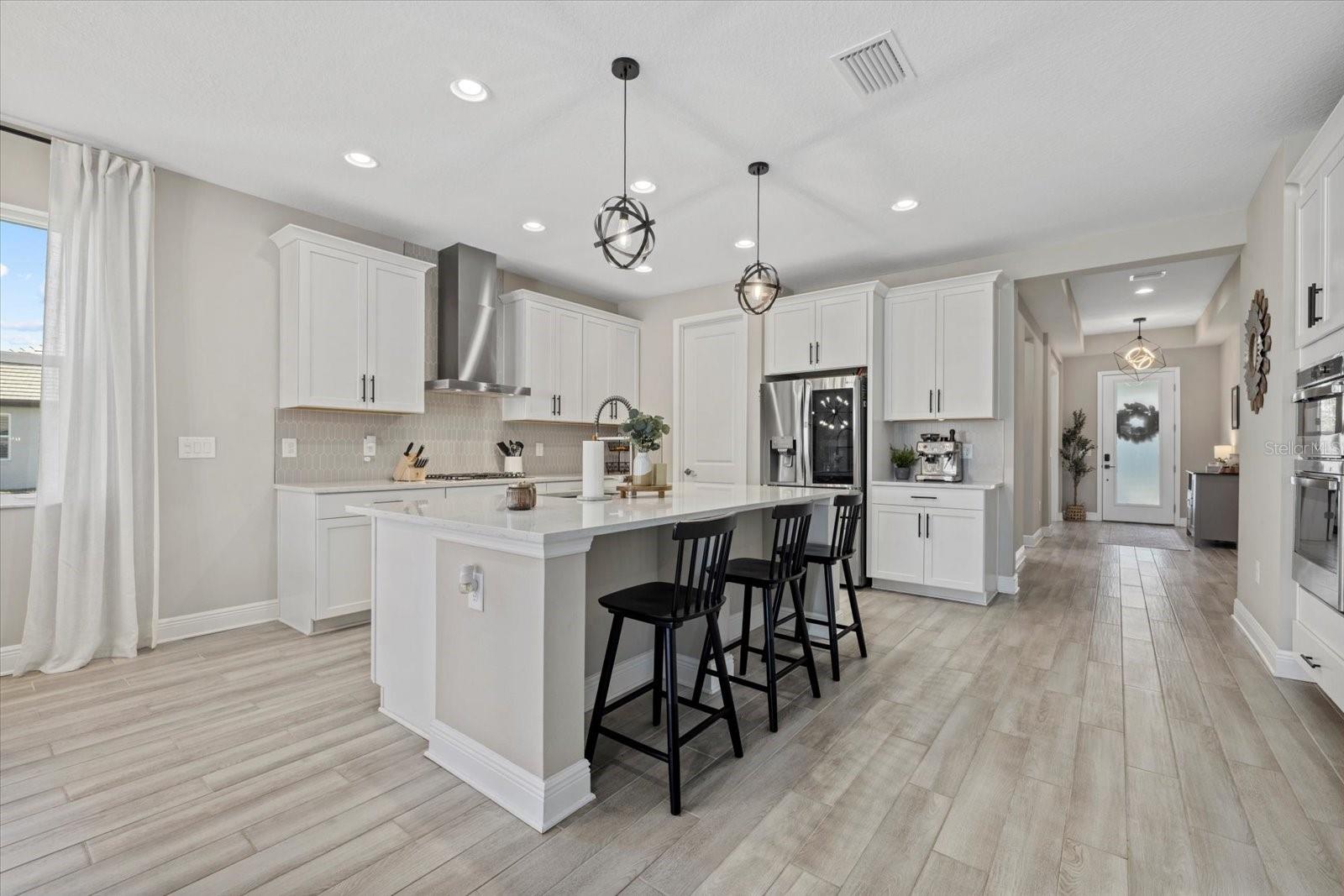Bem -vindo em casa !! 17676 Savory Mist Circle é uma casa unifamiliar meticulosamente projetada localizada na cobiçada comunidade Sweetwater, em Lakewood Ranch, Flórida. Esta casa combina perfeitamente a estética moderna com espaços funcionais, oferecendo um estilo de vida luxuoso e confortável. Esta impressionante casa de conceito aberto é cuidadosamente projetado com uma variedade de atualizações de ponta que aprimoram sua sensação luxuosa e oferecem conforto e funcionalidade excepcionais. Desfrute de tranquilidade com janelas de impacto, controles deslizantes e portas que fornecem proteção aprimorada para tempestades e melhor eficiência energética. A cozinha do chef apresenta armários atualizados com moldagem por coroa de gabinete, uma gama de gás embutida com capuz, um armário de lixo e reciclagem, bancadas de quartzo e uma ilha espaçosa com uma única pia de submada com uma torneira elegante de puxador de mola. Um backsplash da cozinha elegante complementa a máquina de lavar louça de KitchenAid premium e a refrigerto máximo da LG. A suíte do proprietário serve como um retiro privado, com um teto de bandeja, dois armários e um banheiro privativo com vaidades duplas e um chuveiro fechado de vidro. Dois quartos adicionais e um Den oferecem opções versáteis, perfeitas para acomodações de hóspedes, um escritório em casa ou um espaço de hobby dedicado, com o banheiro 2 com uma segunda pia para maior conveniência. Para ainda mais funcionalidades, uma mesa de tecnologia dedicada serve como espaço perfeito para trabalho remoto, estudo ou organização doméstica. Os ladrilhos de luxo se estendem pelas principais áreas de estar, enquanto o tapete de nível 3 acrescenta calor e conforto aos quartos 2 e 3. Tetos sofisticados de bandeja no quarto principal, grande sala e hall de entrada adicionam interesse arquitetônico e um toque de grandeza. As seleções aprimoradas de iluminação incluem luzes pendentes elegantes sobre a ilha da cozinha, um pacote de iluminação de lata na grande sala e acessórios para refeições e hall de entrada atualizados que adicionam um ambiente elegante. The home’s interior is further enhanced with solid 8-foot, 2-panel interior doors, 5-1/4” baseboards throughout, and elegant black hardware that creates a modern aesthetic. Additional touches include modern ceiling fans, 2” faux wood blinds, a glass front door that makes a stylish statement, and a laundry room that is thoughtfully equipped with shelving and a premium Whirlpool washer and dryer. Ao ar livre, desfrute da rara vantagem de um lote aberto ao lado que não será construído, aumentando a serenidade e a sensação espaçosa da propriedade. A casa é pré-conectada para uma piscina e spa e fechada com uma cerca de vinil durável para maior privacidade. Desfrute da Lanai de grandes dimensões, perfeita para relaxar ou divertir, junto com uma varanda encantadora com uma área de estar. A casa também se beneficia de um aquecedor de água sem tanques para eficiência energética e luzes de Natal permanentes festivas para o prazer durante todo o ano. Moradores de Sweetwater em Lakewood Ranch desfrutam de acesso a uma variedade de comodidades, incluindo um centro de fitness, quadra de basquete, quadras de pickleball, playground e uma piscina de resort aquecida. A localização privilegiada da comunidade garante a proximidade de escolas locais, shopping centers, opções de refeições e instalações recreativas, tornando -a uma escolha ideal para quem procura conforto e conveniência. Experimente o epítome da Flórida que vive em 17676 Savory Mist Circle - uma residência que combina harmoniosamente luxo, funcionalidade e estilo.