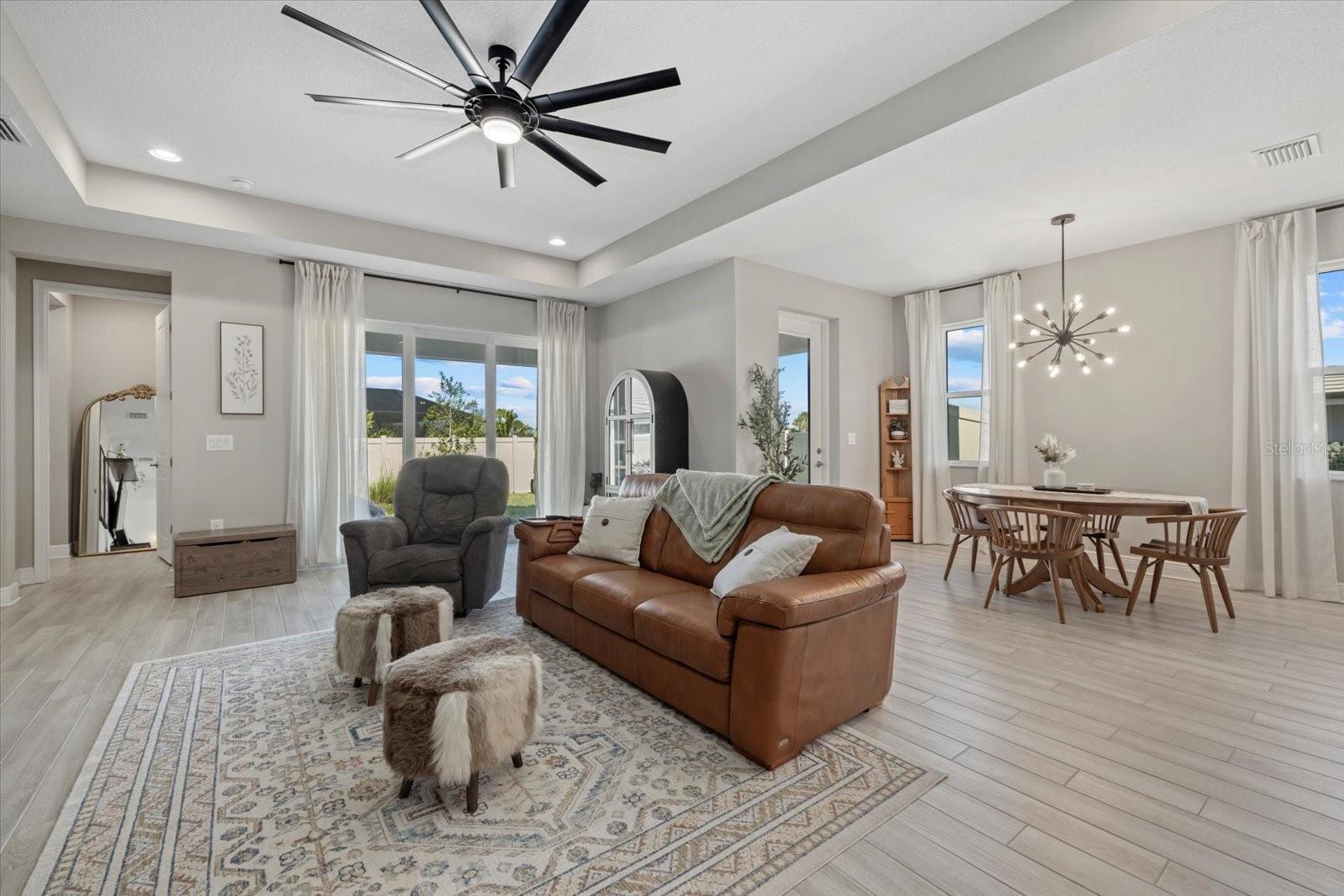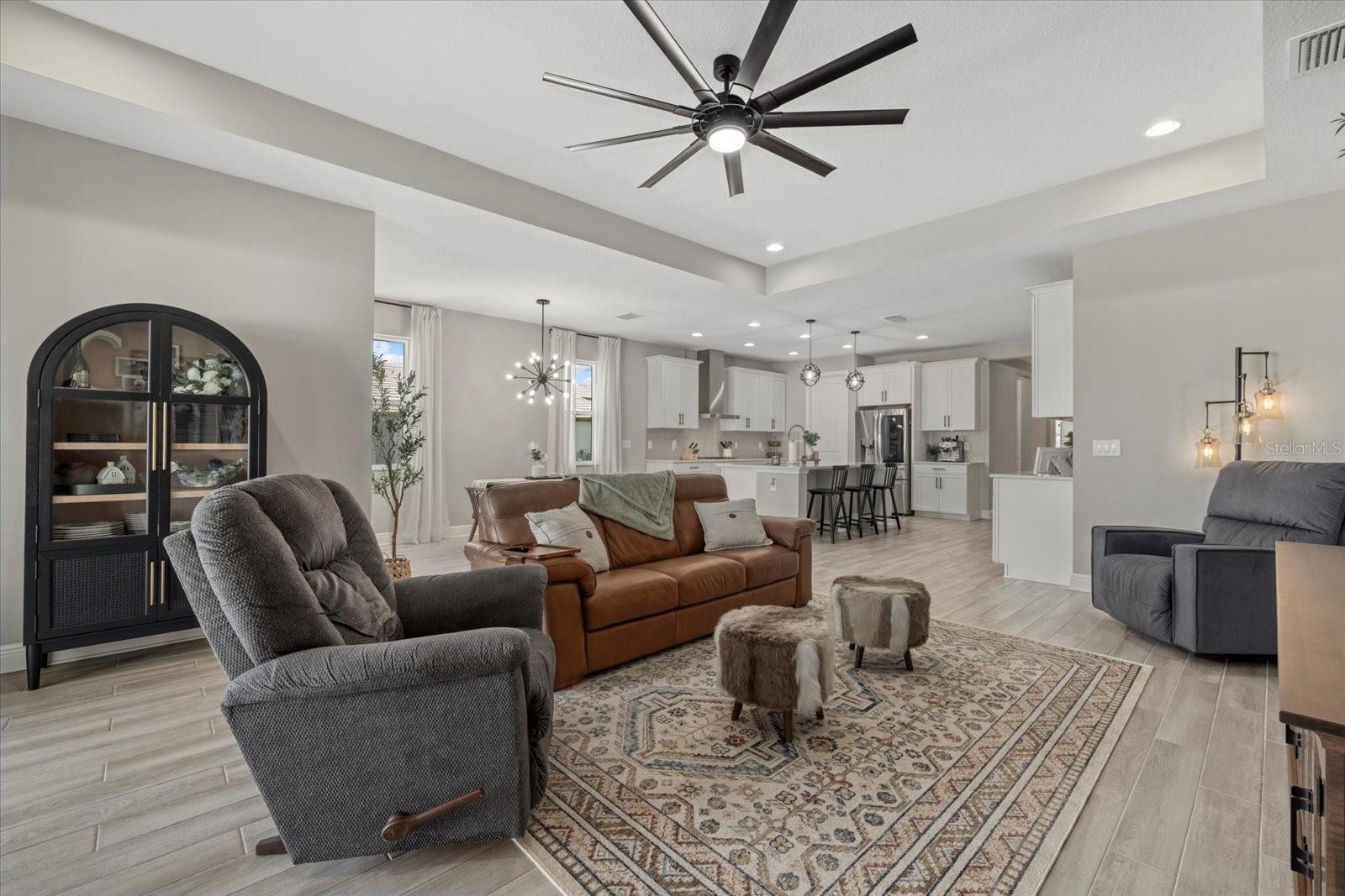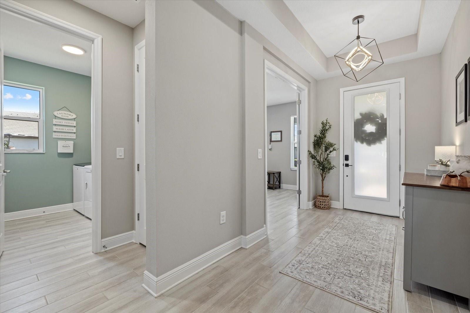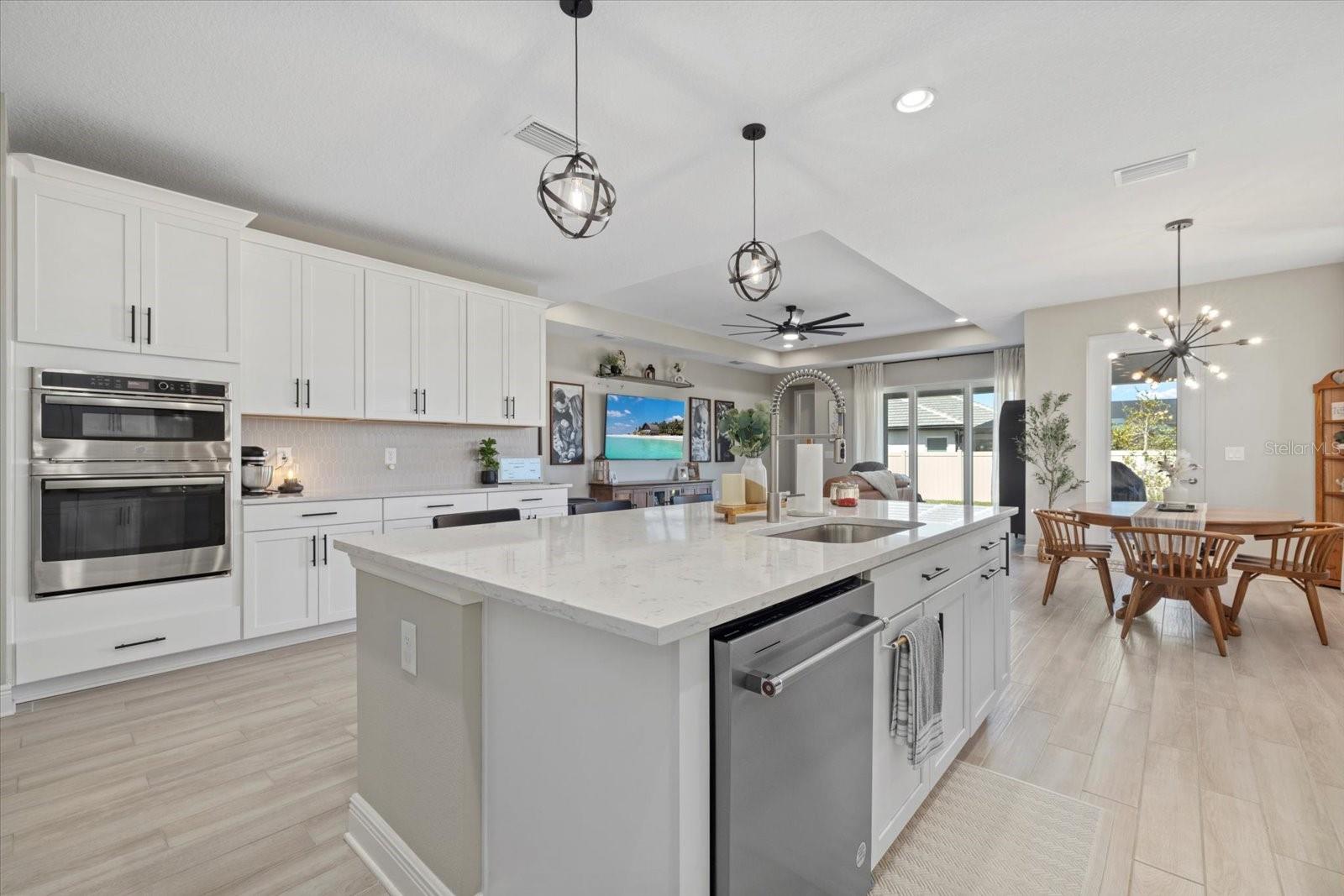 Bem -vindo em casa !! 17676 Savory Mist Circle é uma casa unifamiliar meticulosamente projetada localizada na cobiçada comunidade Sweetwater, em Lakewood Ranch, Flórida. Esta casa combina perfeitamente a estética moderna com espaços funcionais, oferecendo um estilo de vida luxuoso e confortável. Esta impressionante casa de conceito aberto é cuidadosamente projetado com uma variedade de atualizações de ponta que aprimoram sua sensação luxuosa e oferecem conforto e funcionalidade excepcionais. Desfrute de tranquilidade com janelas de impacto, controles deslizantes e portas que fornecem proteção aprimorada para tempestades e melhor eficiência energética. A cozinha do chef apresenta armários atualizados com moldagem por coroa de gabinete, uma gama de gás embutida com capuz, um armário de lixo e reciclagem, bancadas de quartzo e uma ilha espaçosa com uma única pia de submada com uma torneira elegante de puxador de mola. Um backsplash da cozinha elegante complementa a máquina de lavar louça de KitchenAid premium e a refrigerto máximo da LG. A suíte do proprietário serve como um retiro privado, com um teto de bandeja, dois armários e um banheiro privativo com vaidades duplas e um chuveiro fechado de vidro. Dois quartos adicionais e um Den oferecem opções versáteis, perfeitas para acomodações de hóspedes, um escritório em casa ou um espaço de hobby dedicado, com o banheiro 2 com uma segunda pia para maior conveniência. Para ainda mais funcionalidades, uma mesa de tecnologia dedicada serve como espaço perfeito para trabalho remoto, estudo ou organização doméstica. Os ladrilhos de luxo se estendem pelas principais áreas de estar, enquanto o tapete de nível 3 acrescenta calor e conforto aos quartos 2 e 3. Tetos sofisticados de bandeja no quarto principal, grande sala e hall de entrada adicionam interesse arquitetônico e um toque de grandeza. As seleções aprimoradas de iluminação incluem luzes pendentes elegantes sobre a ilha da cozinha, um pacote de iluminação de lata na grande sala e acessórios para refeições e hall de entrada atualizados que adicionam um ambiente elegante. The home’s interior is further enhanced with solid 8-foot, 2-panel interior doors, 5-1/4” baseboards throughout, and elegant black hardware that creates a modern aesthetic. Additional touches include modern ceiling fans, 2” faux wood blinds, a glass front door that makes a stylish statement, and a laundry room that is thoughtfully equipped with shelving and a premium Whirlpool washer and dryer. Ao ar livre, desfrute da rara vantagem de um lote aberto ao lado que não será construído, aumentando a serenidade e a sensação espaçosa da propriedade. A casa é pré-conectada para uma piscina e spa e fechada com uma cerca de vinil durável para maior privacidade. Desfrute da Lanai de grandes dimensões, perfeita para relaxar ou divertir, junto com uma varanda encantadora com uma área de estar. A casa também se beneficia de um aquecedor de água sem tanques para eficiência energética e luzes de Natal permanentes festivas para o prazer durante todo o ano. Moradores de Sweetwater em Lakewood Ranch desfrutam de acesso a uma variedade de comodidades, incluindo um centro de fitness, quadra de basquete, quadras de pickleball, playground e uma piscina de resort aquecida. A localização privilegiada da comunidade garante a proximidade de escolas locais, shopping centers, opções de refeições e instalações recreativas, tornando -a uma escolha ideal para quem procura conforto e conveniência. Experimente o epítome da Flórida que vive em 17676 Savory Mist Circle - uma residência que combina harmoniosamente luxo, funcionalidade e estilo.