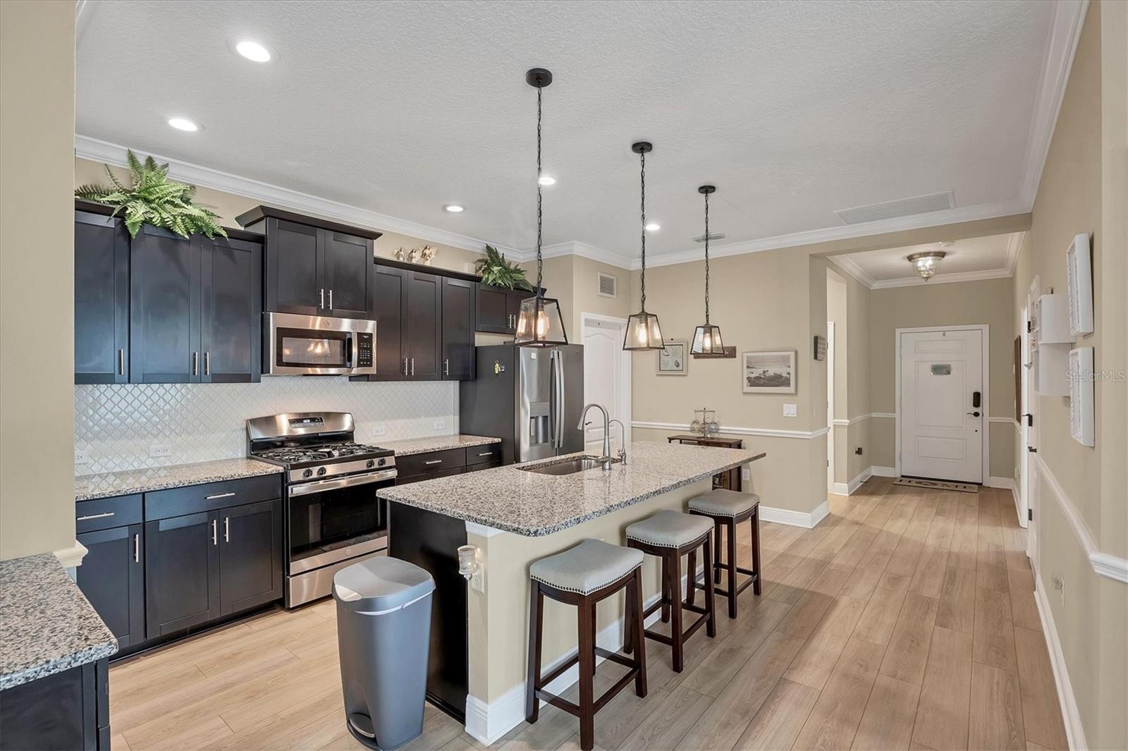 Esta planta requintada '' Sandcastle '' fica em um dos lotes mais desejáveis do Indigo! Esta magnífica vila é construída forte e segura com sua construção de blocos de concreto, teto de ladrilhos de concreto, janelas de impacto do furacão por toda parte e está localizado na desejável zona de inundação "x". Esta vila também possui recursos de 'casa inteligente', que permitem ajustar remotamente seu termostato, abrir e fechar sua garagem, além de travar e desbloquear a porta da frente! A cozinha possui uma despensa de tamanho agradável, uma faixa de gás natural de back-slash e 5 queimadores, utensílios de aço inoxidável, ilha com barra de café da manhã, osmose reversa torneira na pia e iluminação LED embaixo dos armários do agitador que complementam as bancadas de pedra. O quarto principal inclui dois armários de grandes dimensões, vaidades duplas separadas com balcões atualizados e uma caminhada no chuveiro. Abra os três controles deslizantes de bolso com impacto de furacão com painéis e você ficará cativado pelas vistas traseiras, onde verá alguns dos pôr do sol mais espetacular sobre a água. Abandone o seu tanque de propano para este lanai externo estendido vem com uma ligação de gás de grau de construtor para sua grade favorita ou uma nova cozinha compacta. A Indigo é uma comunidade ativa que apresenta um gerente de tempo integral, bem como um diretor de atividades em tempo integral que gerencia um extenso calendário de atividades para todas as idades. A Gullett Elementary e a Mona Jain, com classificação A, também estão do lado de fora de nossos portões! Você também pode esperar calçadas de ambos os lados da rua, 'Oasis' ', piscina/spa, piscina comunitária aquecida ao estilo resort no clube principal, onde encontrará 5 cabanas com uma abundância de assentos, 4 quadras de pickleball, 2 quadras de bocce, exercício de 24 horas Gym, sala de reuniões/sala de bancos e playground. O Indigo não é apenas uma comunidade que cuida de toda a manutenção do solo para incluir cortes, fertilização, irrigação, arbustos e cobertura morta, mas está ao virar da esquina para uma infinidade de jantares, bancos, entretenimento, transporte público e muito mais!