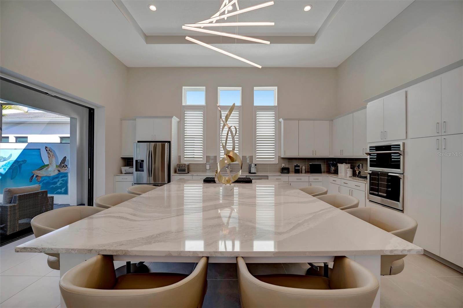 Bem-vindo a esta casa de designer impressionante e sofisticada na comunidade de lagoa aqua procurada, atualmente apresentada em The Parade of Homes, na Baía de Sarasota. Com atenção meticulosa aos detalhes, este 3 quartos e 3 banheiros é uma verdadeira obra-prima, mostrando mais de US $ 130.000 em móveis requintados de Robb e Stucky. Com 2.448 pés quadrados de espaço de vida de luxo, esta casa oferece uma mistura perfeita de conforto e elegância. Apresentando iluminação de luxo personalizada, persianas e obras de arte de luxo, a propriedade exala sofisticação a cada passo. Centrado em casa para a vida inteira fora de fora está o seu pátio privado e piscina aquecida com móveis novos e um gabinete exibido, permitindo que você mantenha suas portas deslizantes completas abertas para facilitar o acesso durante todo o fluxo da casa. Aprimorar sua experiência é um mural de parede cheia personalizada de tirar o fôlego por um dos melhores artistas da Flórida. As pavimentadoras estavam totalmente seladas e manchadas, oferecendo um acabamento refinado e polido. O coração da casa é sua cozinha expansiva com tetos de catedral, projetados com funcionalidade e elegância em mente. Apresentando utensílios de aço inoxidável, uma geladeira de bebida, um forno embutido e microondas, armários personalizados e bancadas elegantes, esse espaço é perfeito para refeições casuais e cozinha gourmet. A cozinha inclui uma grande ilha central estendida com uma fogão a gás e uma abundância de assentos ao redor, proporcionando amplo espaço para preparação para refeições ou convidados divertidos. A iluminação personalizada linda ilumina o espaço, destacando os acabamentos de qualidade e melhorando a atmosfera sofisticada. A sala de estar formal fica ao lado da cozinha, com uma parede de recursos personalizados completos únicos que é uma peça de declaração verdadeira para esta luxuosa casa. Logo na sala de estar há um espaço adicional atualmente utilizado como um espaço elegante de assentos, mas você também pode facilmente converter para uma sala de jantar formal. O quarto principal é um retiro sereno, oferecendo luxo e conforto, proporcionando um espaço ideal para relaxar. A iluminação personalizada, um sotaque de parede completa e acabamentos sofisticados definem o tom, enquanto grandes portas deslizantes para o quadro de piscina permitem que a luz natural inundasse a sala. A suíte master inclui um closet, com soluções de armazenamento personalizado. Incluído no quarto está um banheiro privativo do tipo spa, com vaidades duplas, banheira de imersão e um chuveiro separado. Adjacente ao quarto principal, há um quarto adicional que também pode ser utilizado como espaço para o seu escritório em casa. Há um banheiro de reposição completo, convenientemente localizado ao lado, que também está perfeitamente colocado do acesso direto ao clima de piscina. Na asa separada da casa, há o terceiro quarto com um banheiro privativo. Com uma entrada do beco, a garagem de dois carros foi atualizada com espaço de armazenamento extra. A casa inclui um sistema de segurança de anel e foi totalmente inspecionada, a mitigação de vento aprovada e todos os itens de garantia concluídos. Esteja você procurando um lar para ligar para o seu, um retiro da Flórida ou um investimento anual de aluguel, essa propriedade verifica todas as caixas com as comodidades, flexibilidade e privacidade modernas. A Aqua Lagoon está convenientemente localizada perto da academia IMG de renome mundial, IMG Golf & CC, Anna Maria Island, Cortez Village e Aeroporto SRQ, enquanto permanecem a uma curta distância dos distritos de compras e entretenimento como UTC e St Armand's Circle. Bata a espera por uma nova construção e agende sua exibição particular.