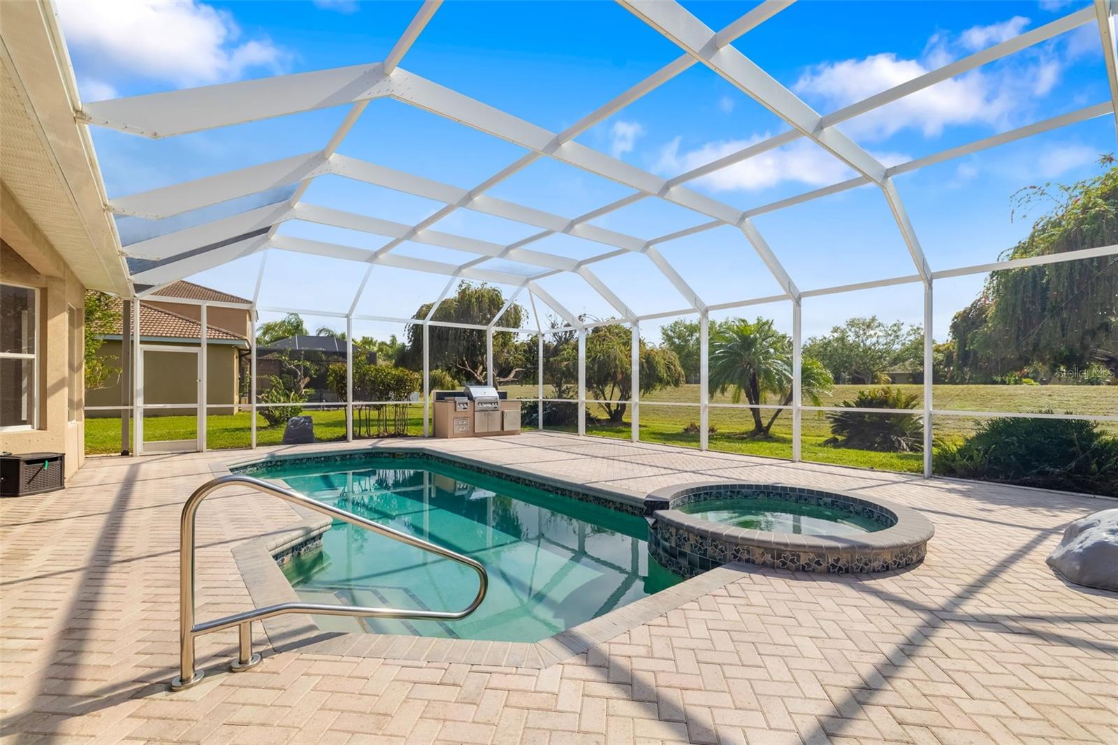 *** ENORME REDUÇÃO DE PREÇOS *** Office de 3 quartos mais, casa de 2 banheiros, aninhada no coração da comunidade fechada e altamente desejável de Greyhawk Landing, onde é permitida cercar. Situado em um lote de grandes dimensões, esta casa combina conforto, funcionalidade e elegância da Flórida. Entre e seja recebido por um espaçoso piso plano aberto com tetos de bandeja crescente, moldagem por coroa e rico piso de vinil de luxo em estilo de madeira nas principais áreas de estar. O coração da casa - a cozinha lindamente decorada com um recanto de jantar aconchegante. Um layout cuidadosamente projetado cria um fluxo contínuo perfeito para a vida e o entretenimento cotidianos. A suíte primária de tamanho generoso inclui um closet e um banho de banho com vaidades duplas, uma banheira de imersão e um chuveiro. Dois quartos adicionais, um escritório em casa versátil, Den com embutido e um banho de hóspedes completo oferecem amplo espaço para a família ou os hóspedes. Saia para o seu oásis privado, onde uma piscina e spa de exibição aguardam, cercados por paisagismo exuberante e um cenário de reserva pacífico. O Lanai com churrasqueira embutida é ideal para refeições ao ar livre ou relaxante à beira da piscina com um bom livro. Destaques adicionais incluem uma espaçosa garagem de dois carros com espaço para acomodar um terceiro veículo ou armazenamento extra, persianas de plantações por toda parte e painéis solares. Esta casa é apenas momentos de todas as comodidades excepcionais que Greyhawk Landing é conhecido-duas piscinas em estilo resort, fitness center, tênis e quadras de basquete, playgrounds, quilômetros de trilhas naturais e um cais de pesca. Com um baixo HOA de apenas US $ 75/ano, esta casa realmente oferece uma combinação imbatível de estilo de vida e valor. Não perca sua oportunidade, agende sua exibição particular hoje!