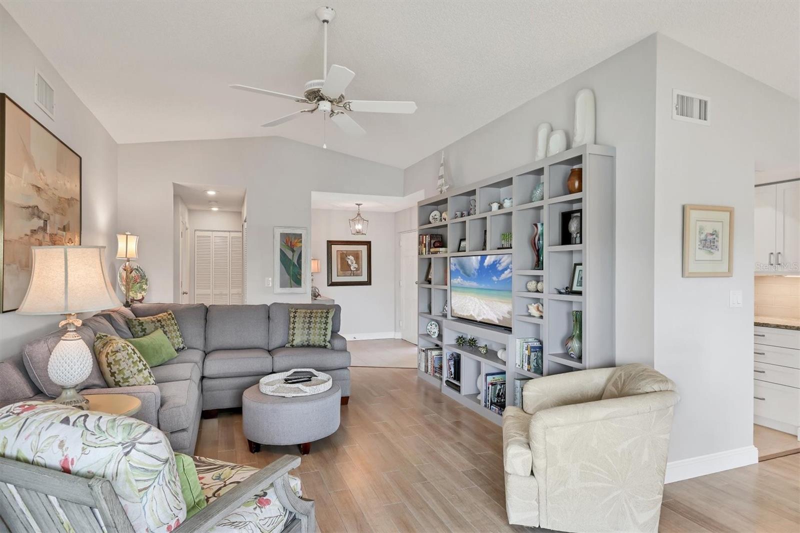 ** Pacífico à beira do lago vivendo a poucos minutos da praia! ** Bem-vindo a este condomínio lindamente mantido, um condomínio de um andar, oferecendo privacidade, tranquilidade e vistas deslumbrantes do lago de todos os quartos. De propriedade de apenas seus dois proprietários, esta casa de 2 quartos e 2 banheiros, cheia de 2 quartos, apresenta um quarto espaçoso e privado e um interior cuidadosamente atualizado, incluindo uma cozinha moderna, piso mais recente e um banho primário renovado. Janelas e portas com classificação de impacto proporcionam um conforto e segurança adicionais. Nenhum dano ao furacão. Desfrute de uma vida no estilo resort com acesso a duas piscinas brilhantes, quadras de tênis e pickleball, uma área de lançamento e armazenamento de caiaque, shuffleboard e uma academia bem equipada-tudo com um clube principal bem mantido e portão de guarda comunitário. Pouco menos de 5 quilômetros das praias premiadas da Ilha Anna Maria, este retiro sereno é a mistura perfeita de conveniência e charme costeiro. Não perca a chance de viver o estilo de vida da Flórida que você sonha!
