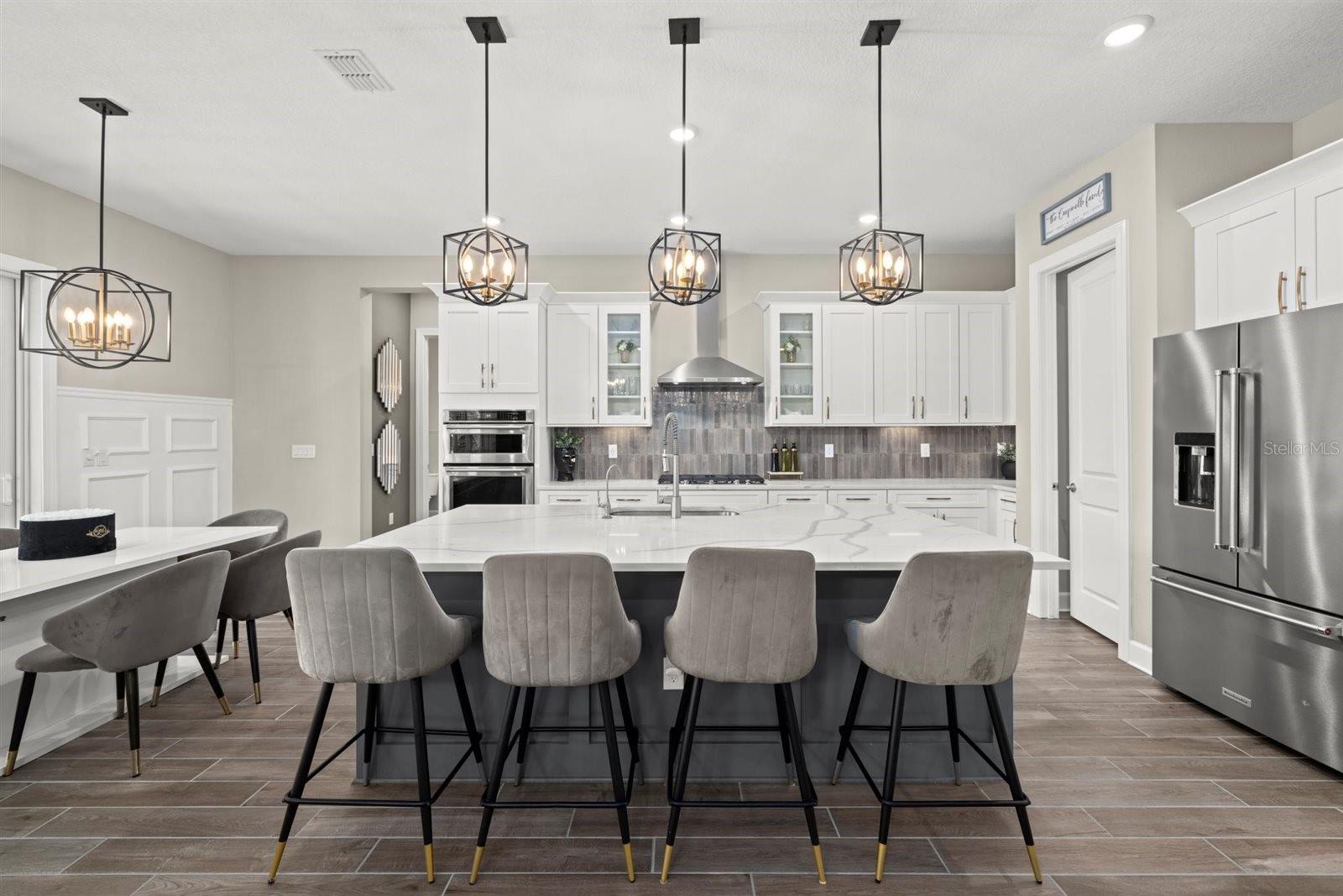 Descubra a casa dos seus sonhos no coração da incrível comunidade de savanas, onde a vida de luxo encontra conveniência incomparável. Esta magnífica residência de dois andares de 8 quartos e 4 banheiros é uma mistura harmoniosa de elegância e conforto, projetada com atenção meticulosa aos detalhes e nenhuma despesa poupada. Quando você entra, o grande hall de entrada com molduras requintadas em todo o palco para a sofisticação que aguarda. Os grades de escadas de ferro forjado adicionam um toque de charme do mundo antigo, enquanto a sala de jantar formal e os escritórios fornecem a mistura perfeita de funcionalidade e estilo. A cozinha gourmet é o sonho de um chef, com appliances de KitchenAid de primeira linha, gavetas de close suave, bancadas de quartzo e um deslumbrante backsplash do Zellige Tile. A despensa adjacente de mordomo com uma caminhada adicional na despensa garante que o entretenimento seja fácil. A suíte master do primeiro andar é um oásis privado, completo com um luxuoso banheiro privativo e espaço generoso no armário. No andar de cima, você encontrará seis quartos lindamente decorados, cada um com armários personalizados e acesso a dois banheiros completos. A casa é cuidadosamente projetada com duas lavanderias, uma convenientemente equipada com uma pia de utilidade, garantindo que as tarefas diárias não tenham esforço. Saia para uma área piscina panorâmica sem ver com tela, sem ver, onde você pode desfrutar de um mergulho refrescante na piscina, relaxe no spa, maravilhe-se com a cachoeira na piscina ou absorva o sol na prateleira do sol. A cozinha ao ar livre, completa com uma pia e uma geladeira de bebidas, faz um delicioso ao ar livre. Um banho de piscina externo completo aumenta a conveniência, enquanto os sistemas de alto -falantes internos e externos criam o ambiente perfeito para qualquer reunião. Para os entusiastas do cinema, a sala de teatro com assentos para seis, dois mini frigoríficos, um projetor e uma tela oferece a experiência cinematográfica final. Esta casa não é apenas sobre luxo; É também sobre praticidade e segurança. Recursos como lareira, sistema de amaciador de água e janelas de impacto do furacão e porta da frente garantem conforto e tranquilidade. A comunidade Savanna oferece uma riqueza de comodidades de luxo, incluindo uma piscina em estilo resort, clubhouse, fitness center, parque de cães e playgrounds. Sua localização conveniente o coloca perto de compras, restaurantes, instalações médicas de Lakewood Ranch, escolas altamente cotadas e uma variedade de atividades ao ar livre. Não perca a oportunidade de chamar essa propriedade extraordinária de sua casa. Programe uma visualização hoje e experimente o epítome da vida de luxo.