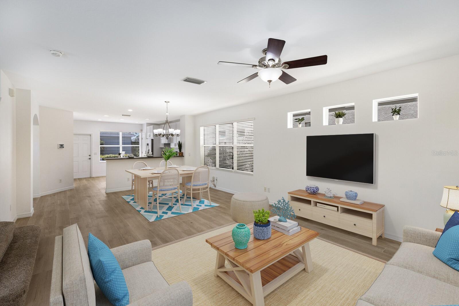 Uma ou mais fotos foram praticamente encenadas. Novo telhado! Bem-vindo ao "Gull Cottage", uma encantadora casa de 3 quartos e 2,5 banheiros no estilo West, aninhado na comunidade Gated River Sound. Esta residência cuidadosamente projetada de dois andares oferece 1.680 pés quadrados de espaço arejado, construção sólida e equipada com persianas de furacões de metal para adicionar a paz de espírito. O layout exclusivo apresenta quartos espaçosos com armários, uma garagem de 2 carros e um quintal que pode ser cercada entre a casa e a garagem-ideal para animais de estimação, jardinagem ou relaxamento em uma rede. Um pátio pavimentado de tijolos acrescenta privacidade e beleza ao retiro do quintal, perfeito para uma churrasqueira, refeições ao ar livre ou uma fogueira aconchegante. O andar de baixo apresenta um novo piso de azulejos! A cozinha é o sonho de um anfitrião, apresentando novos armários de cozinha, bancadas de coriano, utensílios de aço inoxidável, ilha central, despensa, bar de café da manhã e piso de azulejo que flui para a sala aberta. Uma sala de pó no térreo e dois pátios ao ar livre tornam o divertido e a vida todos os dias fáceis e confortáveis. No andar de cima, a suíte primária privada tem um teto alto abobadado, um banho de suíte com pias duplas e um chuveiro e sua própria varanda!-perfeita para relaxar. Dois quartos adicionais compartilham um banheiro bem equipado, cada quarto possui ventiladores de teto. Desfrute de comodidades comunitárias no estilo resort, como piscina aquecida, spa, chuveiro ao ar livre, trilhas para caminhada, píer de pesca, dois parques de cães e paisagismo maduro-tudo por uma taxa trimestral baixa de US $ 435. Adequado para animais de estimação e convenientemente localizado a apenas uma milha da I-75, onde muitas compras e restaurantes estão ao seu alcance a 3 km (a área de compras e restaurantes da Costco/Target) ou a 2 saídas de distância é o distrito de compras/restaurante da UTC! As praias de areia branca e em pó e três principais aeroportos de perto tornam esta casa perfeita como residência primária ou uma escapada relaxante.