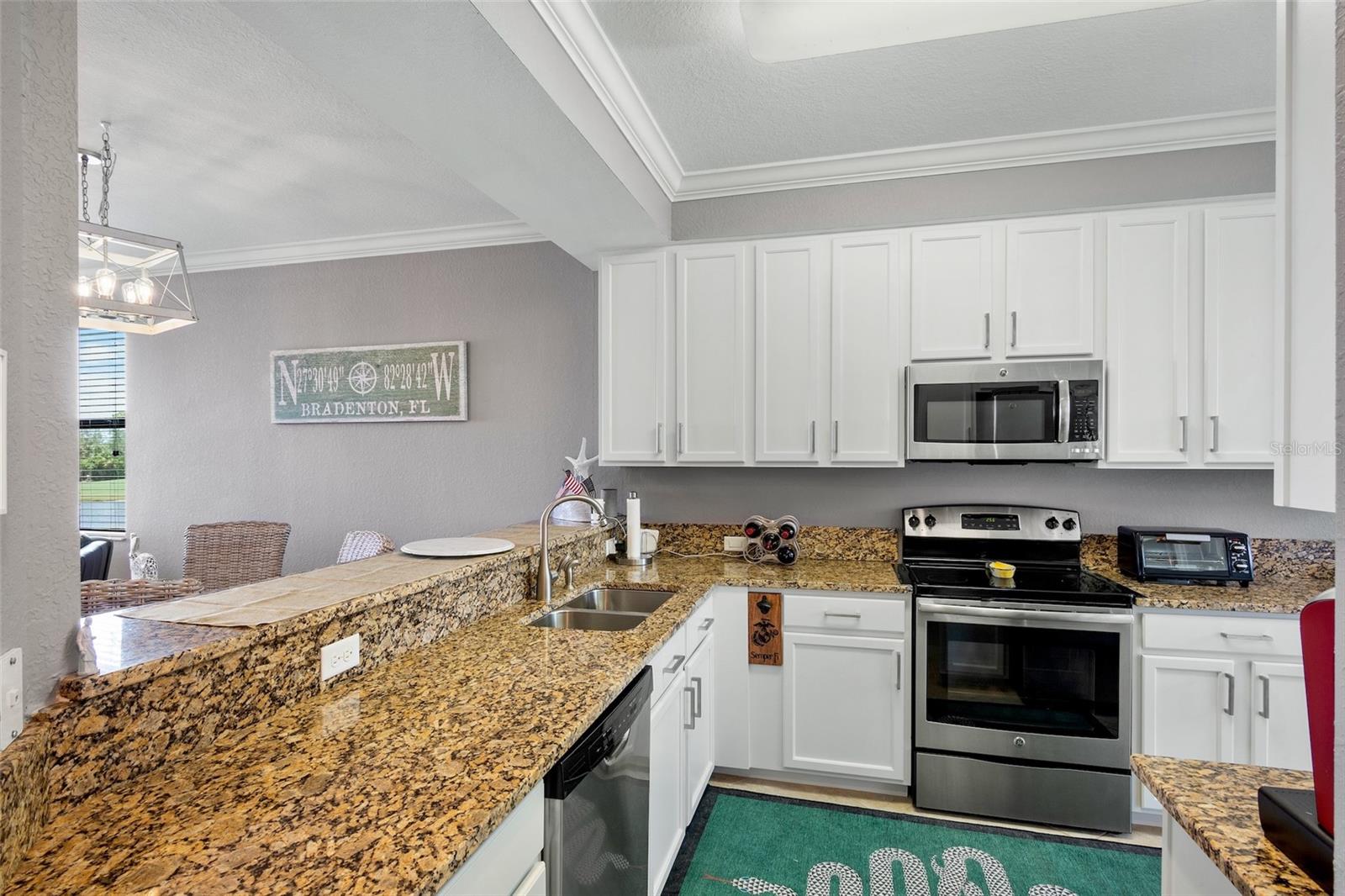 Oportunidade maravilhosa dentro dos portões de River Strand. Esta popular unidade final da Colonade de Golf oferece vistas excelentes de água e campos de golfe. Como a maior das plantas do terraço, possui 2 quartos, 2 banheiros e uma cova. Este condomínio é totalmente móvel como uma unidade de 3 quartos, completa com sofás de couro novos e camas extra confortáveis, utensílios de cozinha atualizados, roupas de cama, louça e muito mais. Está realmente pronto para se mudar-basta trazer sua mala e seguir direto para o campo de golfe! Para a paz de espírito, a propriedade apresenta janelas resistentes ao furacão e portas do pátio. Construção impressionantemente sólida e localização protegida. A espaçosa cozinha para comer serve como coração da casa, com bancadas em granito com uma barra de café da manhã, armários de madeira maciça, utensílios de aço inoxidável, uma despensa e uma lavanderia adjacente conveniente. A suíte do proprietário inclui um banho de banheiro privativo com armários duplos, e o versátil Den apresenta embolsar portas duplas para uso flexível. A propriedade inclui uma associação de golfe entregue ao curso de 27 buracos projetados por Arthur Hills e acesso ao impressionante Clubhouse de 39.000 pés quadrados de inspiração toscana, que atualmente está passando por reformas de design. As comodidades incluem um restaurante no local e uma sala de churrasqueira, dois centros de fitness de última geração com acesso 24 horas por dia, 7 dias por semana, um bar tiki, duas piscinas em estilo resort com banheira de hidromassagem e piscina de resistência, além de oito piscinas de satélite aquecidas, oito quadras de pickleball e um clube de tênis separado com oito tribunais iluminados por Har-Tru. Desfrute de um estilo de vida fácil de resort nesta comunidade ativa, com o benefício adicional de uma vida sem manutenção e sem manutenção, com fácil acesso a praias, restaurantes e compras.