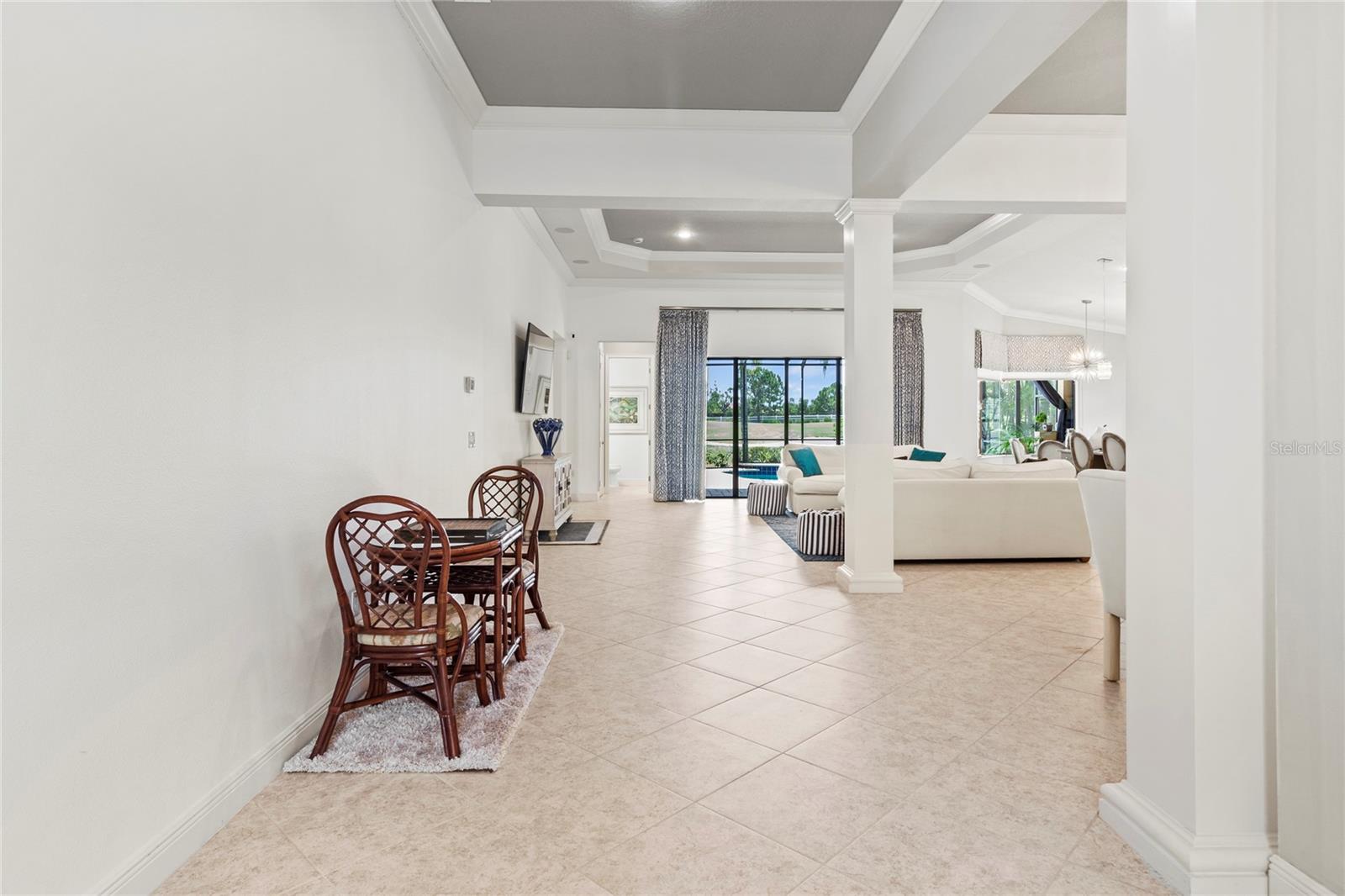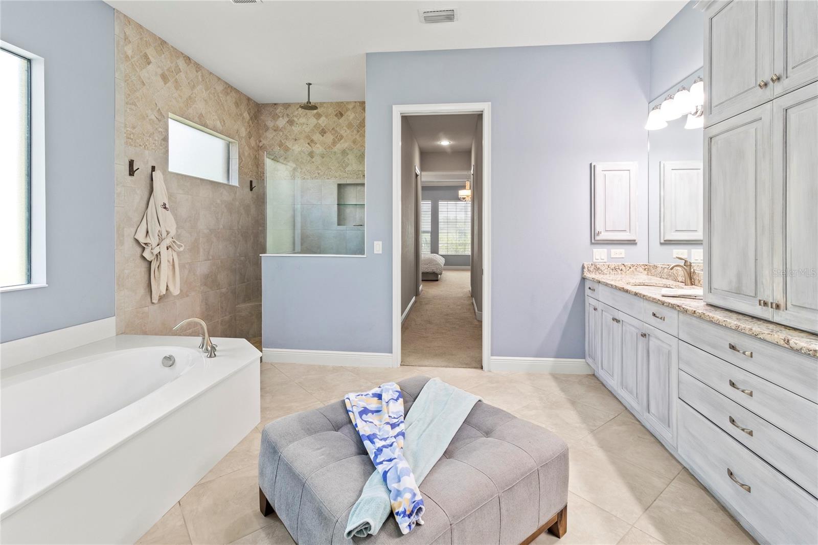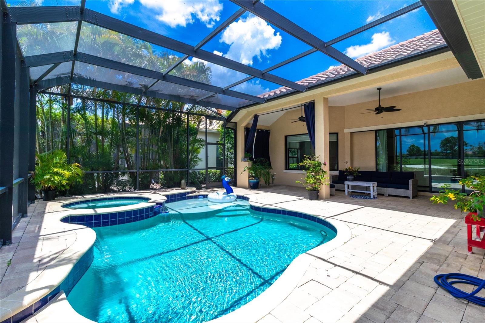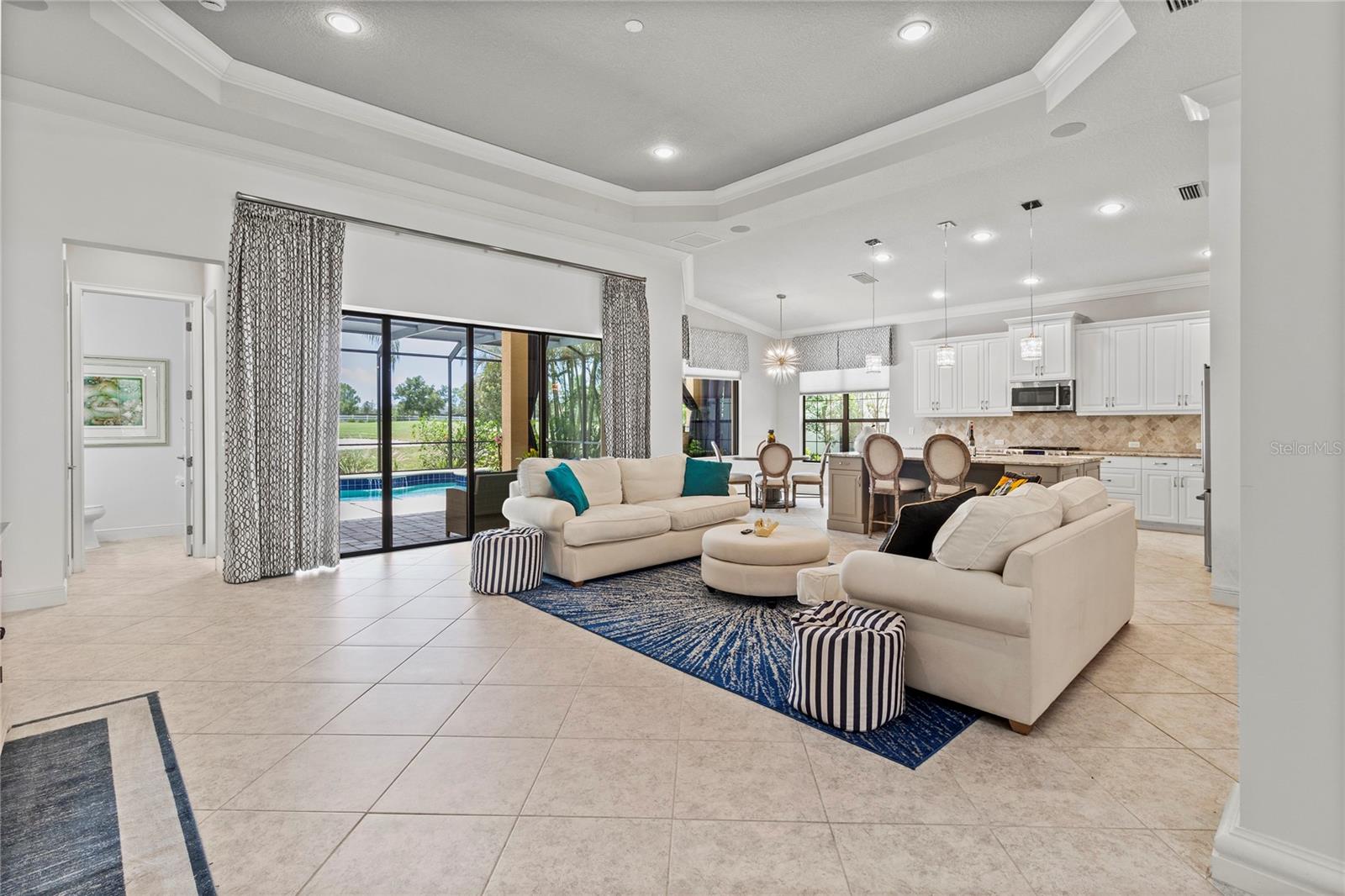 Melhor preço requintado de campo de golfe em Country Club East * A preço de US $ 50.000 abaixo do valor tributável! Esta espetacular residência personalizada e sem manutenção, o modelo "Chatsworth II", oferece quase 3.000 pés quadrados de luxuosos que vivem dentro da comunidade fechada e exclusiva do Country Club East. Idealmente posicionado em um lote premium de campo de golfe da exposição ao sul, com vista para o 10º fairway de Royal Lakes, esta casa possui três quartos e dois banheiros e meia, privacidade e vistas deslumbrantes. Os ricos detalhes arquitetônicos abundam, começando com a entrada espaçosa, com portas dianteiras de impacto duplo de vidro de mancha Therma Tru, um elegante incrustação de ladrilhos, o piso de ladrilhos de porcelana de designer colocado em uma diagonal e os tetos volumosos da bandeja com moldagem expansiva da coroa. A planta de piso imaculada e expansiva da grande sala foi projetada para entretenimento sem esforço, incluindo alto-falantes de som surround Klipsch embutidos. The generous kitchen is a chef's delight, appointed with towering 42" cabinetry (including roll-out shelves), exquisite Swarovski crystal lighting elements, warm granite countertops with a demi-bullnose edge, a marble stone backsplash, and GE Cafe Series stainless steel appliances, including a natural gas stove, oversized single stainless steel sink, and a butler's pantry with a wine refrigerator for the Constipação de vídeo. Chuveiro com chuva de chuva Moen, barra de correio, bancada de canto e nicho. e spa. Home, é equipado com aparelhos Frigidaire, uma bacia de lavagem e armários abundantes para armazenamento adicional. As associações estão disponíveis para aqueles que buscam um estilo de vida mais ativo.
