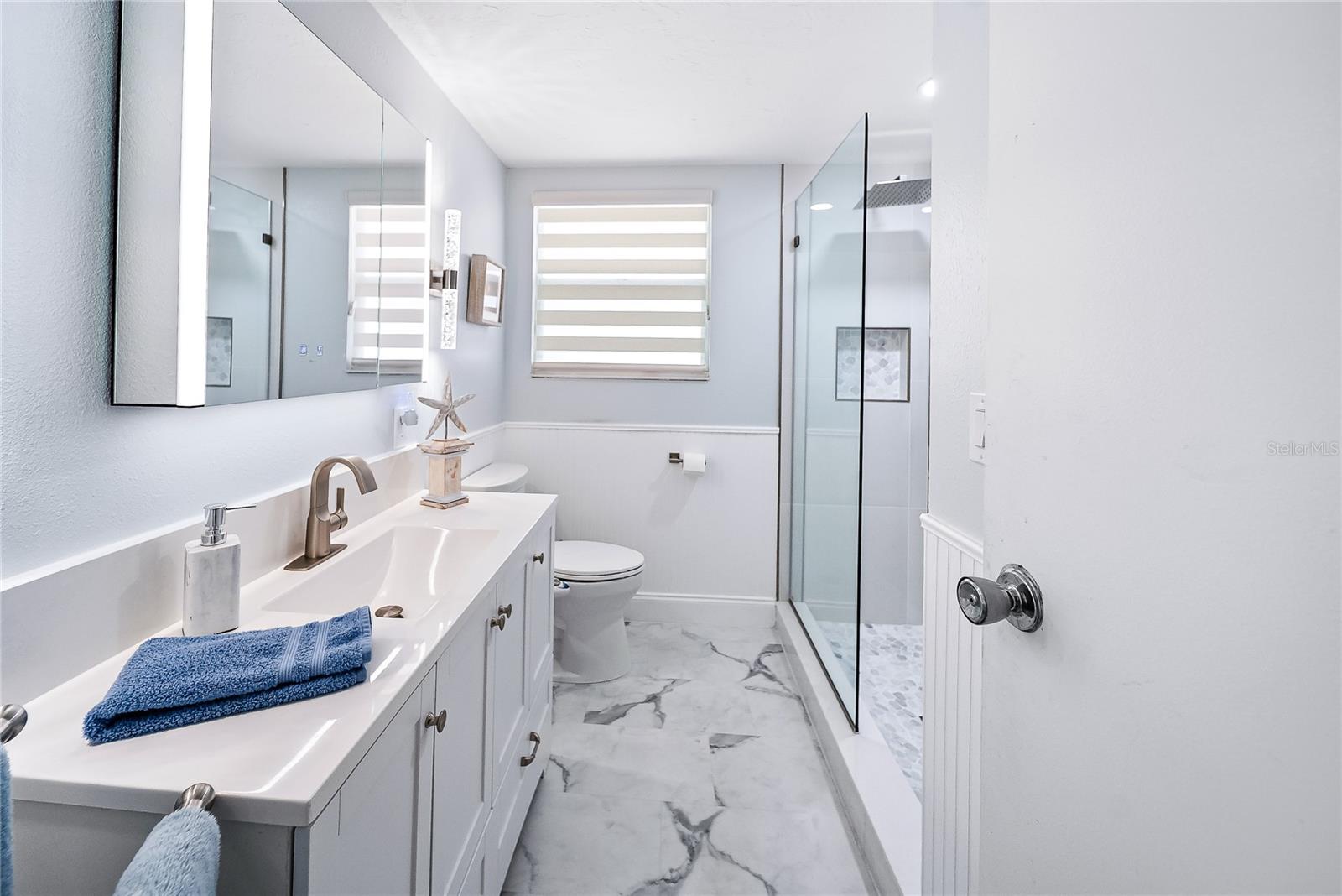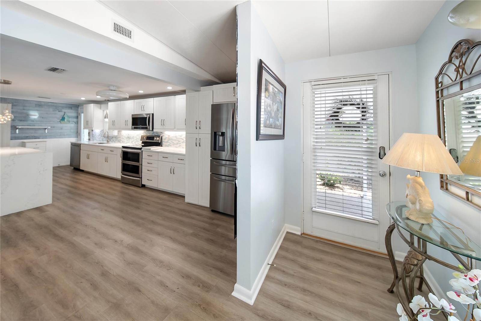 Bem-vindo à altamente procurada comunidade de mais de 55 anos de Palma Sola Shores-de propriedade, pitoresca e perfeitamente posicionada perto da água com apenas 101 casas. Esta casa é encantadora mostrando persianas de plantações azuis de Tommy Bahama que dobram facilmente para persianas quando necessário. O lote 7 é uma residência turnkey lindamente atualizada, com uma planta bem aberta que imediatamente o recebe com uma sensação de calma e retiro. Sem tetos de pipoca aqui! Lá dentro, você encontrará uma decoração neutra elegante e uma cozinha moderna e brilhante reformada em 2021, com uma ilha espaçosa e novos aparelhos. A casa oferece novos pisos por toda parte, uma linda caminhada no banheiro de hóspedes do chuveiro, um aquecedor de água mais recente (2019) e um sistema A/C bem conservado (2016). A suíte master inclui uma nova porta de vidro deslizante com painéis de tempestade, abrindo para uma acolhedora área de estar privada para aproveitar o café da manhã ou as bebidas da tarde. As atualizações adicionais incluem persianas elétricas na sala de estar (2023) e uma entrada de automóveis com revestimento poli (2022). Desfrute de várias áreas para relaxar ou jantar. Outra vantagem é que a área de lavanderia anexada possui uma pequena oficina e área de armazenamento. Os moradores aqui apreciam o clube, a piscina comunitária e a doca particular de pesca, todos a uma curta caminhada. Convenientemente localizado perto de fazer compras, jantar e a apenas alguns minutos de várias praias deslumbrantes. O melhor de tudo é que esta casa não teve furacões ou danos causados por inundações. O baixo HOA mensal de apenas US $ 275 inclui cabo, internet, esgoto, água e lixo - oferecendo verdadeira paz de espírito e valor excepcional.