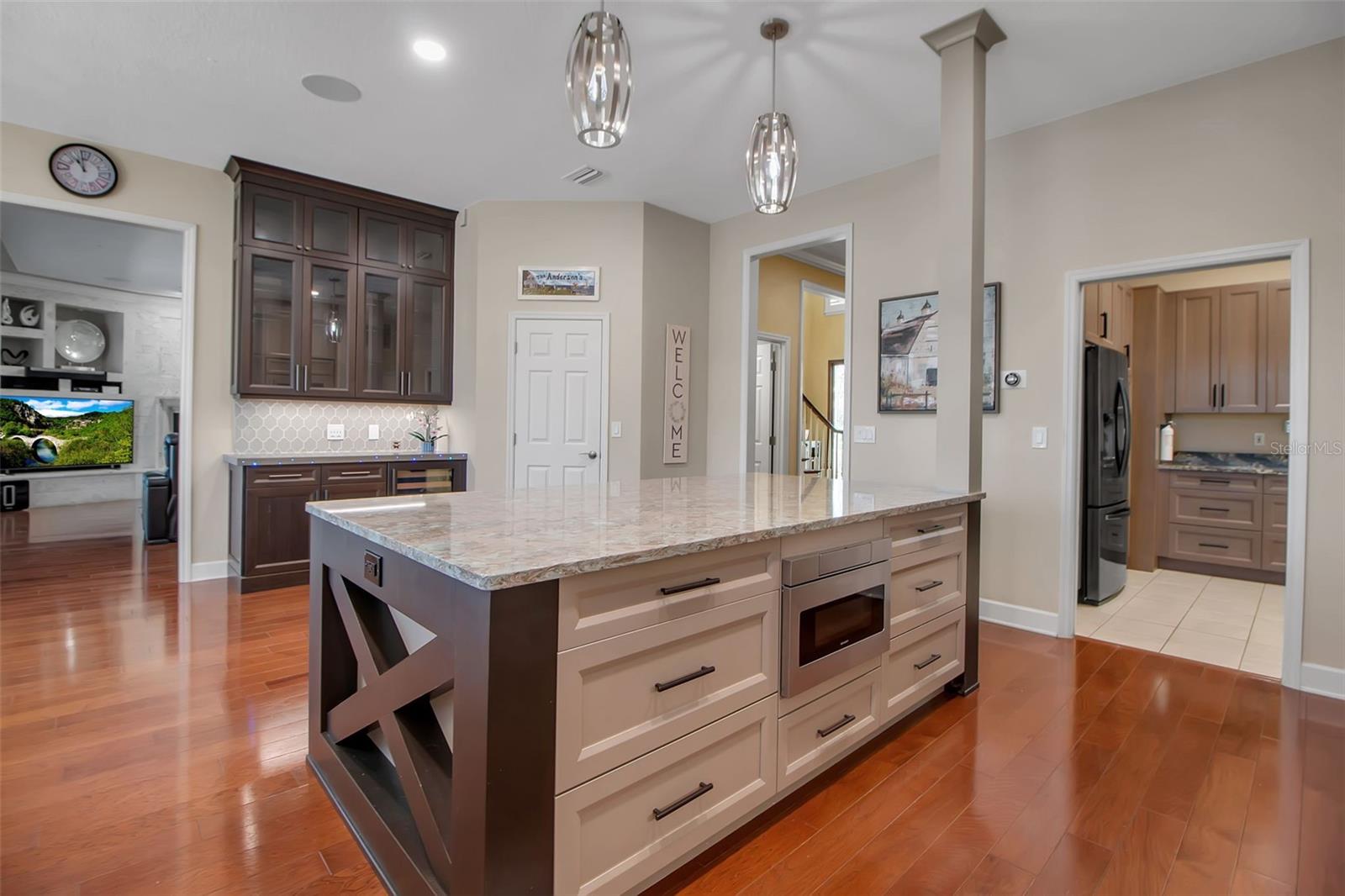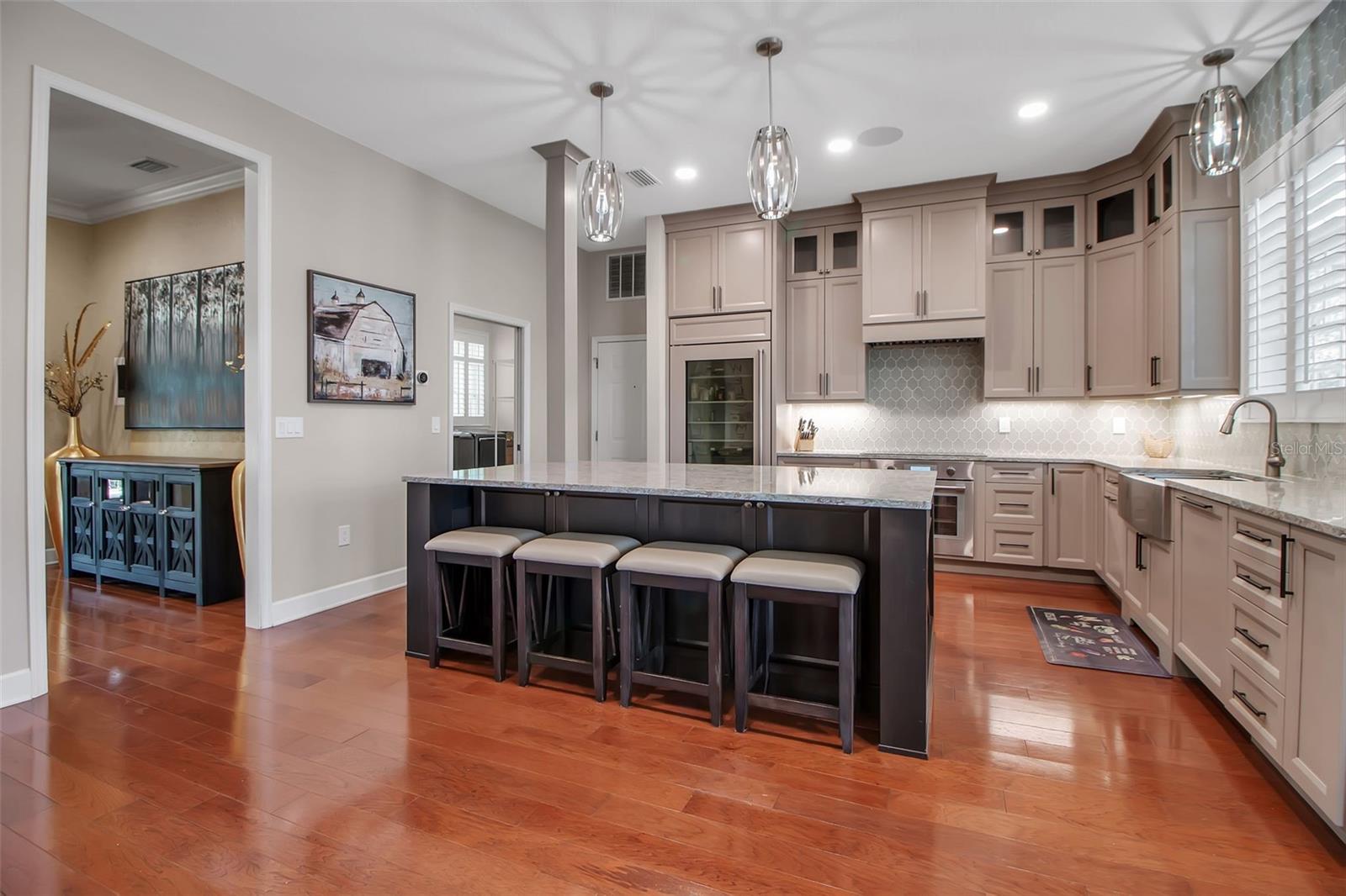 Estação excepcional à beira do lago no circuito do noroeste de Bradenton! Escondido no final de um beco sem saída silencioso no condomínio fechado exclusivo do loop, esta propriedade única de 5 quartos, 4 quartos, 4 e 2 meio banheiro fica em um hectare com o lago variável e preservar vistas. Mantido impecavelmente e atualizado cuidadosamente, esta casa combina design atemporal, acabamentos luxuosos e conveniências modernas para um estilo de vida verdadeiramente elevado. Entre através de portas francesas duplas imponentes em um grande hall de entrada de dois andares, mostrando pisos ricos em madeira de cerejeira, molduras de coroas elegantes, rodapés largos e cartuchos personalizados. A luz flui através de janelas de Pella e persianas de plantações por toda parte, dando a esta casa um ambiente caloroso e convidativo. No coração da casa, a cozinha do chef é funcional e bonita-com armários de madeira maciça, bancadas de quartzo, uma despensa, mesa de receita, torneiras sem toque, refrigerador de vinho e novos aparelhos de aço inoxidável. A grande área de comer tem vista para a piscina deslumbrante e o lago além-ideal para a vida familiar diária ou um entretenimento elegante. A espaçosa suíte primária é um retiro para si mesmo com uma lareira de dupla face aconchegante, uma banheira de imersão, chuveiro, armários abrangentes e uma varanda privada para vistas do pôr-do-sol e observação da vida selvagem. Esta casa foi projetada para diversão e relaxamento, oferecendo uma sala de mídia privada com som surround, cadeiras de teatro reclináveis e cortinas de Blackout de controle remoto, além de um grande escritório dedicado ideal para trabalhar em casa. Saia do seu novo gabinete de tela panorâmica de dois andares de US $ 130.000, enquadrando uma enorme piscina e spa de água salgada aquecida, perfeita para o prazer durante todo o ano. Imaculadamente paisagístico com palmeiras maduras, exuberante folhagem tropical e iluminação paisagística, o quintal parece um resort particular. A garagem de 3 carros de grandes dimensões (incluindo uma baía de 18 'de largura com uma porta de 9' de altura) acomoda facilmente um caminhão levantado e possui um banheiro privativo, armazenamento e até um carregador Tesla Fast. Localizado a 2 minutos da Robinson Reserve, o Palma Sola Botanical Park e a apenas 7 minutos até as lindas praias de areia branca da Ilha Anna Maria. Esta casa realmente oferece o melhor de luxo, localização e estilo de vida em um dos bairros mais procurados de Bradenton.