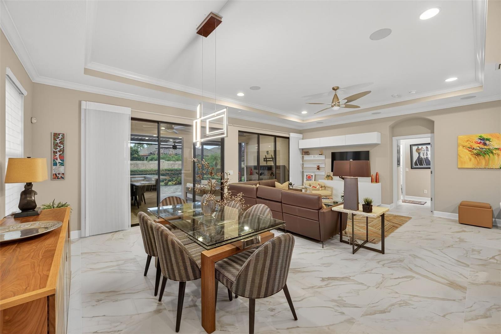 Modelo Piceno atualizado impecavelmente | 2br + den | Oásis ao ar livre e toques de designer! Bem-vindo a este modelo piceno de 2 quartos e 2 banheiros atualizado, com design atencioso, acabamentos sofisticados e vida excepcional em interior fora do interior. A cozinha gourmet é um verdadeiro showstopper, com uma ilha de quartzo de Cambria de grandes dimensões, oferecendo armazenamento extra, uma despensa personalizada, eletrodomésticos de aço inoxidável, mesa embutida, geladeira de vinho e iluminação subterrânea. Ideal para entretenimento ou vida cotidiana, ele se conecta perfeitamente à sala grande de conceito aberto com tetos de bandeja, som surround embutido (dentro de casa e ao ar livre) e tons motorizados de Hunter Douglas nos controles deslizantes. Saia para o seu Oasis Lanai estendido, com pavimentadoras mais recentes, tons de rolagem inteligentes de tempestades e uma cozinha externa totalmente equipada com bancadas em granito, churrasqueira embutida, queimador lateral, pia, geladeira e baú de gelo-perfeitos para hospedar convidados ou relaxar em paz. A espaçosa suíte primária possui armários duplos personalizados, vanidades duplas de quartzo de Cambria e um luxuoso chuveiro. Os ladrilhos de cerâmica fluem através das principais áreas de estar, enquanto os dois quartos apresentam persianas de tapete e plantação. O Den Private oferece portas francesas duplas, iluminação LED, embutidos personalizados e tons interiores-ideais para um espaço de hóspedes ou escritório em casa. A lavanderia é funcional e elegante, com armários embutidos e uma lavadora e secadora de carga frontal LG com pedestais. Os principais sistemas estão prontos com um novo aquecedor de A/C e de água (2023), gerador de toda a casa, campainha de anel, iluminação sensor de movimento e sistema completo de alarme. A garagem impressiona com piso epóxi, armários personalizados, bancada e armazenamento aéreo. Os ventiladores de teto completam as atualizações focadas no conforto. Esta é uma casa que não é de golfe. Esplanade oferece uma ampla variedade de comodidades e atividades, como um campo de golfe de 18 buracos, duas piscinas de resort, banheiras de hidromassagem, piscina de resistência, pickleball, tênis, bola de bocha, dois centros de ginástica, aulas de exercícios, dois parques de cães, fogueiras, spa/salão, um diretor de vital. O Centro Culinário de última geração oferece aos residentes várias opções de refeições, como o Barrel House, bem como serviços de catering, degustações de vinhos e eventos especiais. Os lustres da sala de jantar e da sala de jantar, as prateleiras brancas na sala da família não transmitem. Esta casa é a mistura perfeita de estilo, função e paz de espírito - escapou sua turnê privada hoje. Há câmera na porta da frente e no lanai.