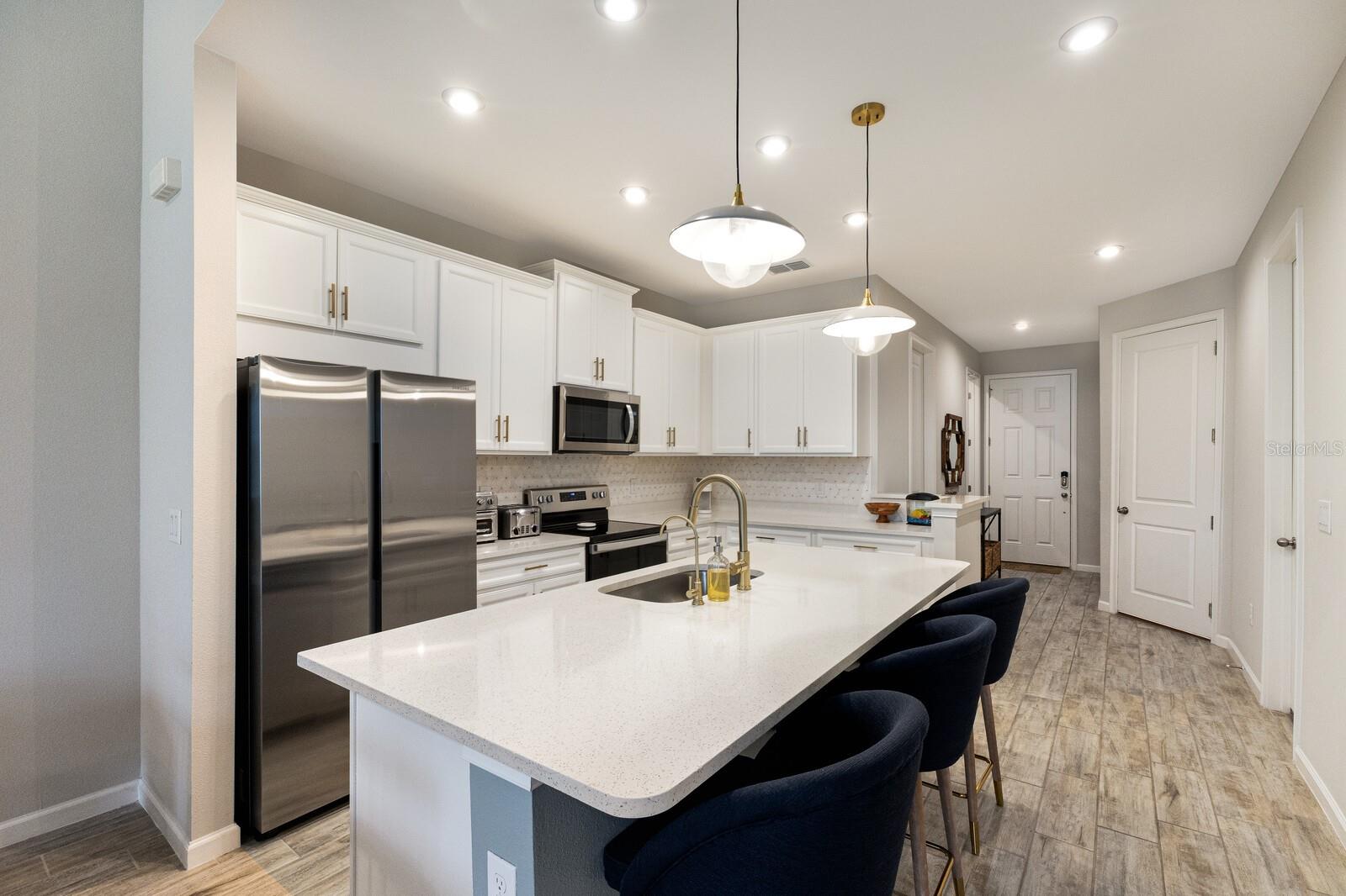 Aproveite um incentivo especial ao vendedor! Receba um crédito de US $ 5.000 no fechamento para ser usado para reduzir sua taxa de juros ou cobrir os custos de fechamento. Bem -vindo ao Sandbar II por Mattamy Homes, uma moderna moradia 2022 em harmonia no Lakewood Ranch que combina a vida fácil com os detalhes do designer. Os tetos abobadados de até 15 'definem o tom para o nível principal de conceito aberto, terminado com ladrilhos de madeira, portas internas de 8' e superfícies de quartzo nítidas. The kitchen pairs 42" cabinetry with gold hardware, a stylish tile backsplash, stainless steel appliances, and generous prep space—a chic hub for everyday meals or casual entertaining. A convenient half bath serves guests, while the first-floor primary suite offers restful privacy with an expansive walk-in closet and a polished ensuite featuring quartz dual vanities and a glass-enclosed tiled shower. Upstairs, two secondary Os quartos compartilham um banheiro completo e um loft versátil está pronto para um escritório em casa, um recanto de mídia aconchegante ou de mídia As comodidades em estilo resort incluem uma piscina aquecida com áreas de grelhar e jantar ao ar livre, um centro de fitness e um playground. Laboratório Marinha e Aquário, Lecom e praias de classe mundial em Siesta Key, Lido Key e Anna Maria Island.