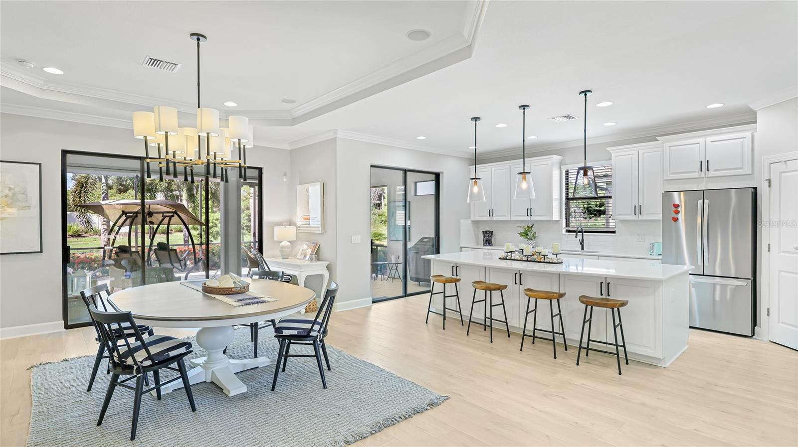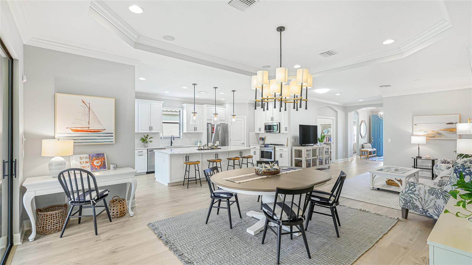 Bem -vindo ao 12712 Fontana Loop, um retiro verdadeiramente delicioso que parece uma casa modelo no Esplanade Golf and Country Club. Esta casa é perfeita para famílias e aposentados. Este encantador de três quartos, Den, de três banheiros, construído em 2014, oferece não apenas uma casa, mas um estilo de vida cheio de lazer e conforto. Entre para descobrir a grande sala iluminada por uma clarabóia tubular, trazendo luz natural que dança pelo espaço. O coração da casa, a cozinha, apresenta elegante backsplash de ladrilhos de metrô, bancadas de quartzo e piso de vinil de luxo (em toda a casa), todos complementados por um novíssimo pingente da Ilha Light Emerson e um impressionante lustre de jantar de 12 luzes. O banheiro principal foi projetado para acessibilidade, enquanto o Den oferece portas de bolso para um espaço flexível. E não se esqueça da garagem prolongada extra de um metro e meio. Perfeito para armazenamento extra, academia em casa ou um espaço de oficina. Lá fora, a casa foi repintada e aprimorada recentemente com um novo paisagismo. Desfrute da Lanai estendida com a tela de furacões Kevlar de controle remoto e um toldo extensível, tornando-o o local perfeito para relaxar após um jogo de tênis, pickleball ou golfe. Além disso, a renovação de Andersen Hurricane Windows acrescenta elegância e paz de espírito. Falando em paz de espírito, não há necessidade de se preocupar com o ar condicionado ou o aquecedor de água quente. Eles são novos! Nesta comunidade vibrante, você terá acesso a piscinas e uma riqueza de comodidades que fazem com que todos os dias pareçam férias. Na propriedade, você terá acesso a tênis, pickleball, natação de resistência, natação de lazer, aeróbica aquática, eventos e, claro .. golfe! Esteja você procurando desfrutar de um estilo de vida ativo ou apenas relaxar em uma casa lindamente atualizada, o 12712 Fontana Loop é um lugar onde você pode realmente se sentir em casa.