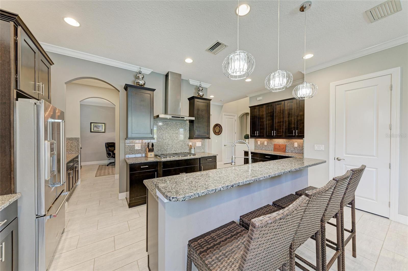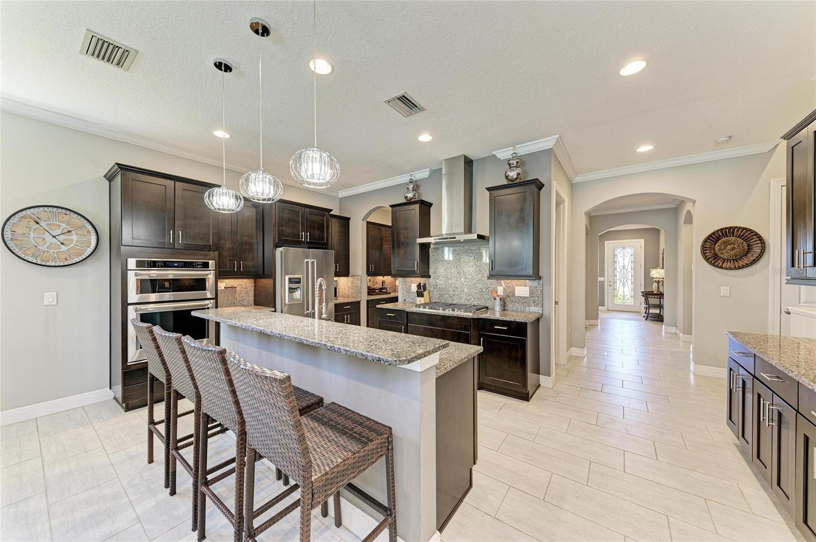 Descubra esta casa lindamente atualizada de 4 quartos e 4,5 banheiros com vistas tranquilas para o mar no fechado Rosedale Golf & Country Club, projetada para uma vida luxuosa e entretenimento sem esforço. Com piso de cerâmica, sancas, venezianas, cortinas personalizadas e luminárias de grife, cada detalhe foi cuidadosamente selecionado para criar um espaço sofisticado, acolhedor e pronto para morar. A cozinha do chef é uma peça de exibição, oferecendo balcões e backsplash de granito, armários personalizados, amplo espaço de preparação, eletrodomésticos KitchenAid de última geração, fogão a gás de 5 bocas, despensa e uma grande ilha com balcão para café da manhã e assentos para família e amigos. A despensa do mordomo conecta a cozinha à sala de jantar formal, facilitando o entretenimento. A cozinha abre-se para a grande sala, onde portas de correr conduzem à incrível área de estar exterior. O quintal é o sonho de qualquer artista. Organize reuniões ou relaxe ao ar livre com uma espaçosa área de entretenimento, piscina aquecida de água salgada e spa com solário, pavimentação de travertino e paisagismo exuberante e atualizado. A cozinha externa possui duas pequenas geladeiras para bebidas/vinho e uma grande ilha com assentos, criando o espaço perfeito para grelhar, jantar à beira da piscina ou desfrutar de momentos tranquilos enquanto aprecia a bela vista do mar. A suíte do proprietário é um retiro luxuoso, oferecendo vistas pitorescas do mar, um amplo closet, pias duplas com balcões de granito e um box amplo de vidro sem moldura. Dois quartos adicionais no primeiro nível com banheiro privativo oferecem privacidade e conforto. No andar de cima, uma generosa suíte loft com banheiro completo e closet é ideal para pernoites, estadias prolongadas ou um espaço versátil de mídia/jogos. Atualizações adicionais incluem janelas resistentes a impactos e portas de vidro deslizantes, aquecedor de água a gás sem tanque, calhas e toques de designer por toda parte, garantindo beleza e funcionalidade. Viver no Rosedale Golf & Country Club oferece um estilo de vida estilo resort. As baixas taxas de HOA cobrem toda a manutenção de paisagismo e irrigação, internet de fibra de alta velocidade e cabo, dois portões de guarda 24 horas por dia, 7 dias por semana, além de dois parques para cães para residentes. A associação social do clube oferece acesso ao tênis, um clube de 22.000 pés quadrados, academia, aulas de estúdio, restaurante de serviço completo, piscina aquecida Jr. olímpica e eventos sociais durante todo o ano. Para o golfista ávido, Rosedale oferece vários níveis de associação opcional de golfe. Idealmente localizada perto da I-75, Lakewood Ranch, UTC Mall, escolas de primeira linha, lojas, restaurantes, parques, instalações médicas e praias mundialmente famosas, esta casa combina perfeitamente luxo, conforto e o estilo de vida dos sonhos de um artista.