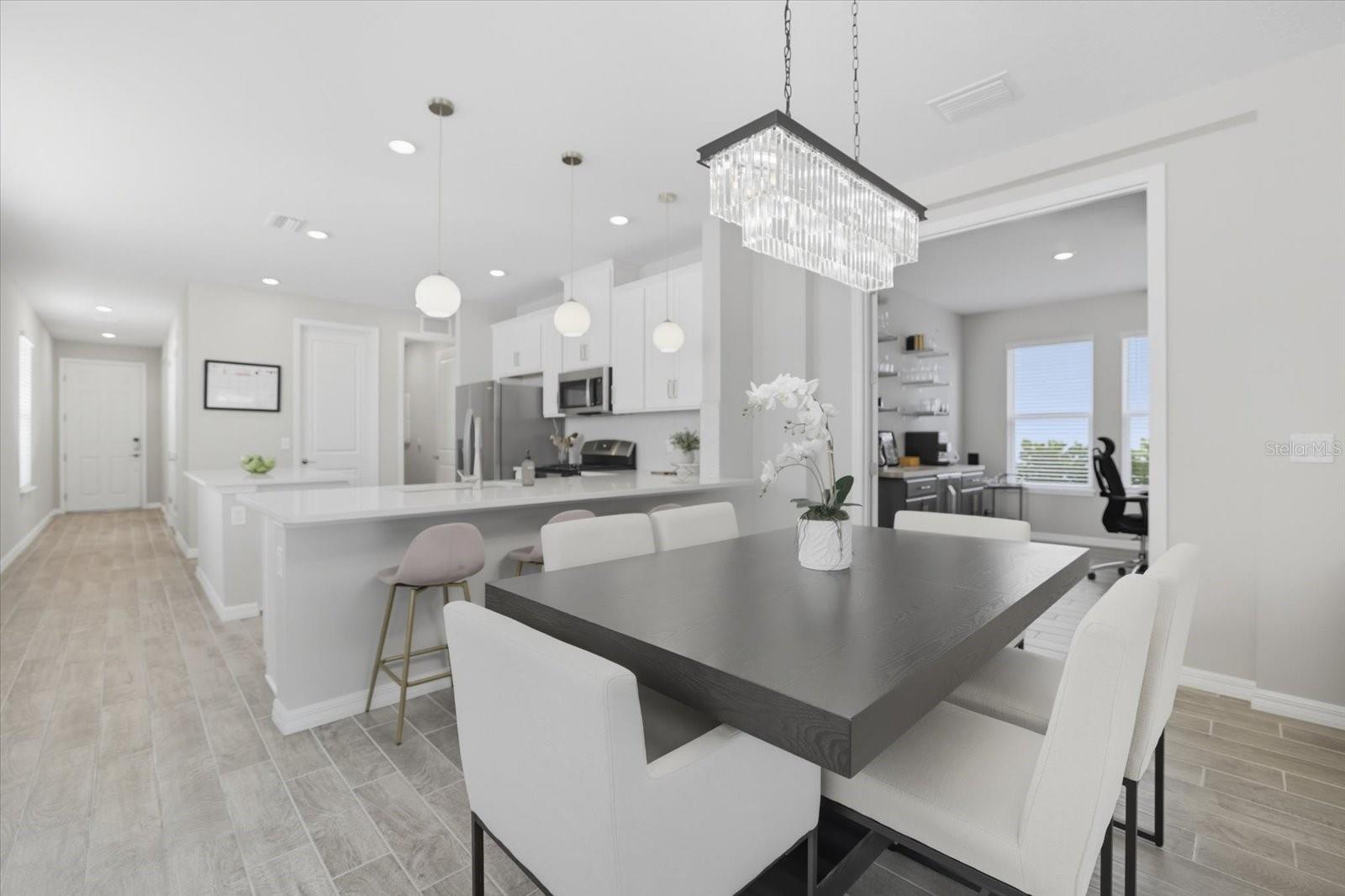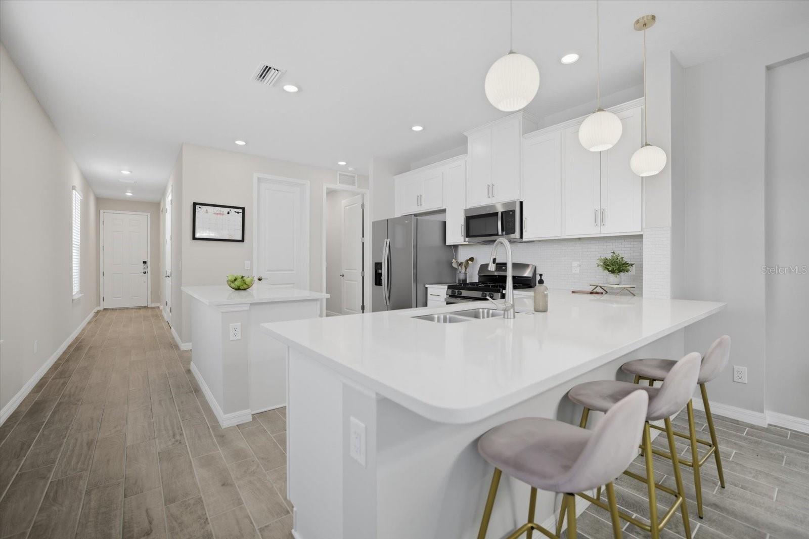 Localizada no cobiçado bairro de The Heights, esta residência de 1.790 pés quadrados combina artisticamente conforto com luxo, oferecendo três quartos espaçosos, uma sala versátil e 2,5 banheiros lindamente decorados. Ao entrar, você é recebido por um interior meticulosamente projetado que imediatamente faz você se sentir em casa. No coração desta residência encontra-se a cozinha deslumbrante, uma verdadeira delícia culinária. Possui elegantes bancadas de quartzo, backsplash atualizado e eletrodomésticos de aço inoxidável de última geração. O fogão a gás natural e os armários de design em madeira maciça aumentam sua funcionalidade e estilo, enquanto uma grande ilha central e uma península oferecem amplo espaço para criações culinárias e refeições casuais. Para todas as suas necessidades de arrumação, a cozinha inclui uma generosa despensa. O design de conceito aberto garante um fluxo contínuo da cozinha para as áreas de jantar e de estar, estendendo-se graciosamente até a varanda externa. A sala, completa com armários embutidos personalizados e uma conveniente geladeira para bebidas, oferece infinitas possibilidades como escritório em casa, estudo, sala de jogos ou retiro pessoal. A suíte principal é um santuário próprio, com grandes janelas que emolduram vistas pitorescas. Inclui um closet com prateleiras embutidas personalizadas e um banheiro privativo com box amplo, pias duplas e bancadas de quartzo. Viver em The Heights significa desfrutar de uma variedade de comodidades exclusivas. Os moradores têm acesso a uma piscina cintilante, área de cabana, churrasqueira, quadra de basquete e dois parques para animais de estimação, oferecendo infinitas oportunidades de recreação e relaxamento. Para os entusiastas de atividades ao ar livre, o Monte. Tumalo Trail Park fica nas proximidades, com trilhas para caminhada, áreas de estar serenas com vista para Ward Lake e estações de exercícios. As atividades aquáticas são muito fáceis com o Ward Lake e Jiggs Landing, de 255 acres, nas proximidades, proporcionando oportunidades para aventuras de barco e caiaque. The Heights está estrategicamente localizado em 200 acres de paisagem intocada, oferecendo vistas deslumbrantes de pântanos arborizados e vegetação exuberante. Sua posição privilegiada entre a State Road 70 e a University Parkway garante que os residentes tenham fácil acesso a comodidades essenciais. Nas proximidades, você encontrará lojas e restaurantes de classe mundial no UTC Mall, atrações culturais em Sarasota e a encantadora comunidade de Lakewood Ranch. As conveniências diárias estão a poucos minutos de distância, tornando esta casa a mistura perfeita de luxo e praticidade. Aproveite a oportunidade para fazer desta requintada moradia o seu lar, onde todos os dias parecem férias!