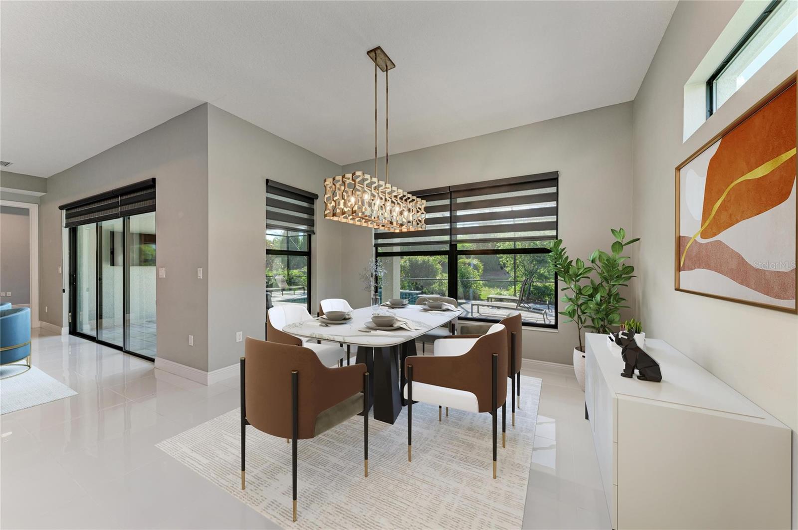Imagine acordar todas as manhãs com os sons suaves da natureza - café na mão, sentar-se sob a varanda coberta enquanto a luz do sol dança na cachoeira que cai em sua piscina privada. A única coisa mais serena que a vista é saber que tudo — do gramado à internet de alta velocidade — já está cuidado. Este é o estilo de vida tranquilo da Flórida esperando por você em Cresswind, a principal comunidade de resorts com mais de 55 anos de Lakewood Ranch. Passe pelas portas de entrada de vidro personalizadas e entre em uma casa repleta de luz que atinge o equilíbrio perfeito entre design elegante e conforto diário. A grande sala de conceito aberto recebe você com tetos altos, iluminação de designer e uma impressionante parede de entretenimento personalizada com uma lareira elétrica linear de 6 pés flanqueada por estantes duplas. Uma TV montada na parede (incluída) cria um espaço de reunião pronto para desfrutar que se conecta perfeitamente à cozinha inspirada no chef - completa com bancadas de quartzo, armários de grafite, refrigerador de bebidas, despensa atualizada e eletrodomésticos embutidos. A suíte principal oferece um retiro tranquilo com vista para a piscina, com banheira tipo spa com box amplo com banco, pia dupla elevada e um espaçoso armário personalizado. Dois quartos de hóspedes adicionais e um salão privativo oferecem flexibilidade para visitar a família, hobbies ou um escritório em casa (com TV na parede incluída). Cada centímetro desta casa é selecionado com detalhes cuidadosos - desde ventiladores de design e tratamentos de janela até saídas de piso com acabamento em latão e encanamentos atualizados. Lá fora, seu oásis pessoal o aguarda. Uma piscina iluminada de 12'x24 com cascata ancora a varanda expandida, onde telas motorizadas contra furacões oferecem proteção e privacidade instantâneas. A TV externa (incluída) e a área de estar sob o teto o tornam ideal para entretenimento durante todo o ano. Além da varanda, o exuberante paisagismo de 360° e a calçada de pavimentação dão o tom para um apelo atemporal do meio-fio - tudo mantido pelo HOA. Até a garagem impressiona com piso de epóxi, porta isolada, abridor de reserva, prateleiras e armários de aço - perfeitos para os itens essenciais do seu estilo de vida na Flórida. Como residente de Cresswind em Lakewood Ranch, você terá acesso a uma comunidade vibrante de adultos ativos projetada para conexão e bem-estar: piscinas de resistência e estilo resort, quadras de tênis e pickleball, academia de ginástica, trilhas para caminhada, estúdio de artes, parques para cães, noites de food truck e um diretor de estilo de vida em tempo integral. Tudo a poucos minutos das lojas, restaurantes e praias que fazem do Lakewood Ranch a comunidade multigeracional número 1 nos EUA. Por que esperar para começar a viver sua melhor vida na Flórida? Esta casa é a combinação perfeita de sofisticação, vida de baixa manutenção e comodidades de resort - pronta para você se mudar e começar a criar memórias hoje mesmo. A casa é virtualmente encenada.