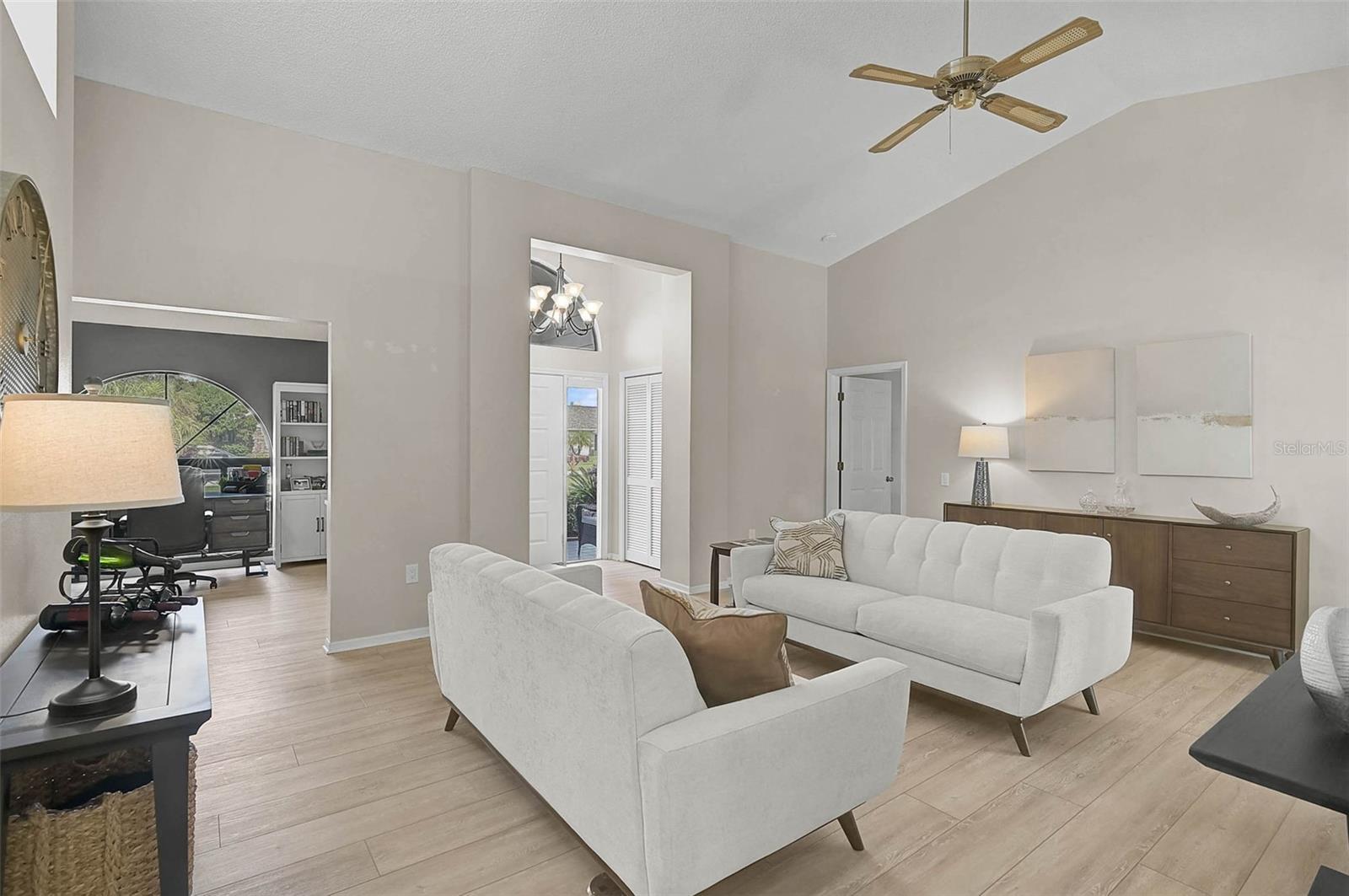 Linda e perfeita casa 3BR/2BA mais Den em um lote de esquina privado! Entre nesta casa deslumbrante que oferece 2.512 pés quadrados de espaço lindamente projetado. A entrada recebe você com um impressionante teto com vigas de madeira, adicionando calor e interesse arquitetônico, criando uma grande primeira impressão. Situado em um terreno de esquina tranquilo, o quintal privativo inclui pátio pavimentado, horta orgânica e muito espaço para piscina - ideal para entretenimento ou relaxamento com estilo. No interior, pisos de madeira projetados fluem por toda parte, criando calor e elegância. A suíte principal é um retiro sereno com closets duplos e um banheiro tipo spa com pias duplas, banheira de imersão e chuveiro separado. Os tetos altos melhoram a sensação de abertura e arejamento em toda a casa. A varanda fechada, acessada através de três conjuntos de portas francesas contra furacões, possui janelas protegidas contra furacões e uma nova unidade de ar condicionado split para conforto durante todo o ano. A cozinha é iluminada e convidativa com novas claraboias (2024), backsplash de azulejos, nova máquina de lavar louça e sistema de osmose reversa Culligan embaixo da pia. As atualizações recentes também incluem um novo telhado (2024), novo aquecedor de água quente, nova lavadora e secadora e novo triturador de lixo, tornando esta casa totalmente pronta para morar. Os recursos adicionais incluem irrigação Hydrawise com acesso Wi-Fi, amaciante de água e uma aconchegante lareira a lenha na área de estar. Peridia oferece um estilo de vida ativo com campo de golfe executivo de 18 buracos, tênis, pickleball, piscina aquecida, bar tiki, restaurante e bar e loja especializada. Idealmente localizada, esta casa fica perto de lojas, aeroportos, restaurantes e de algumas das melhores praias da Flórida, oferecendo conveniência e estilo de vida. Taxas adicionais: taxa trimestral de associação master de $ 938, mínimo anual de $ 450 para alimentos / bebidas, taxa única de inscrição de $ 100, reserva única de capital de $ 4.000.