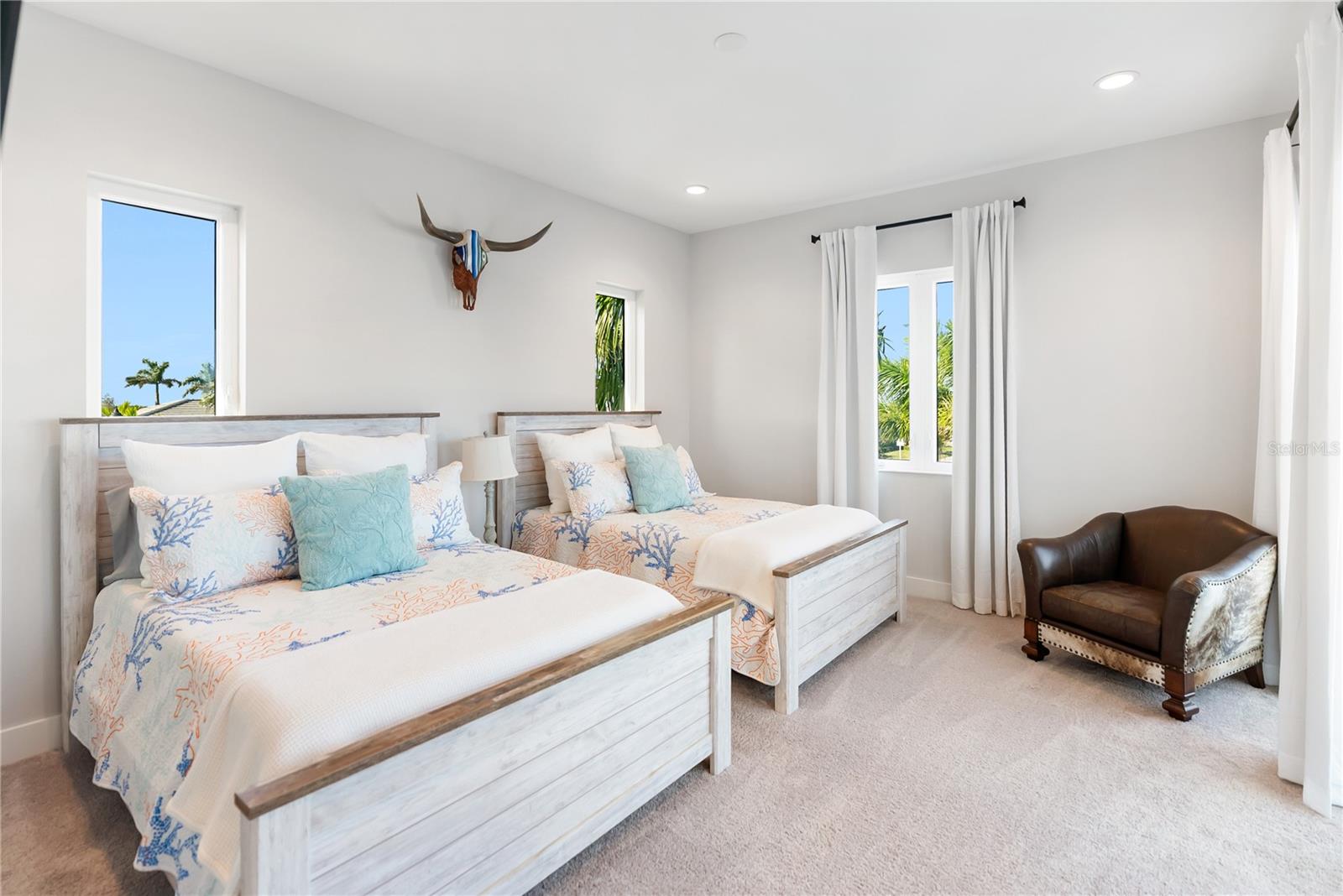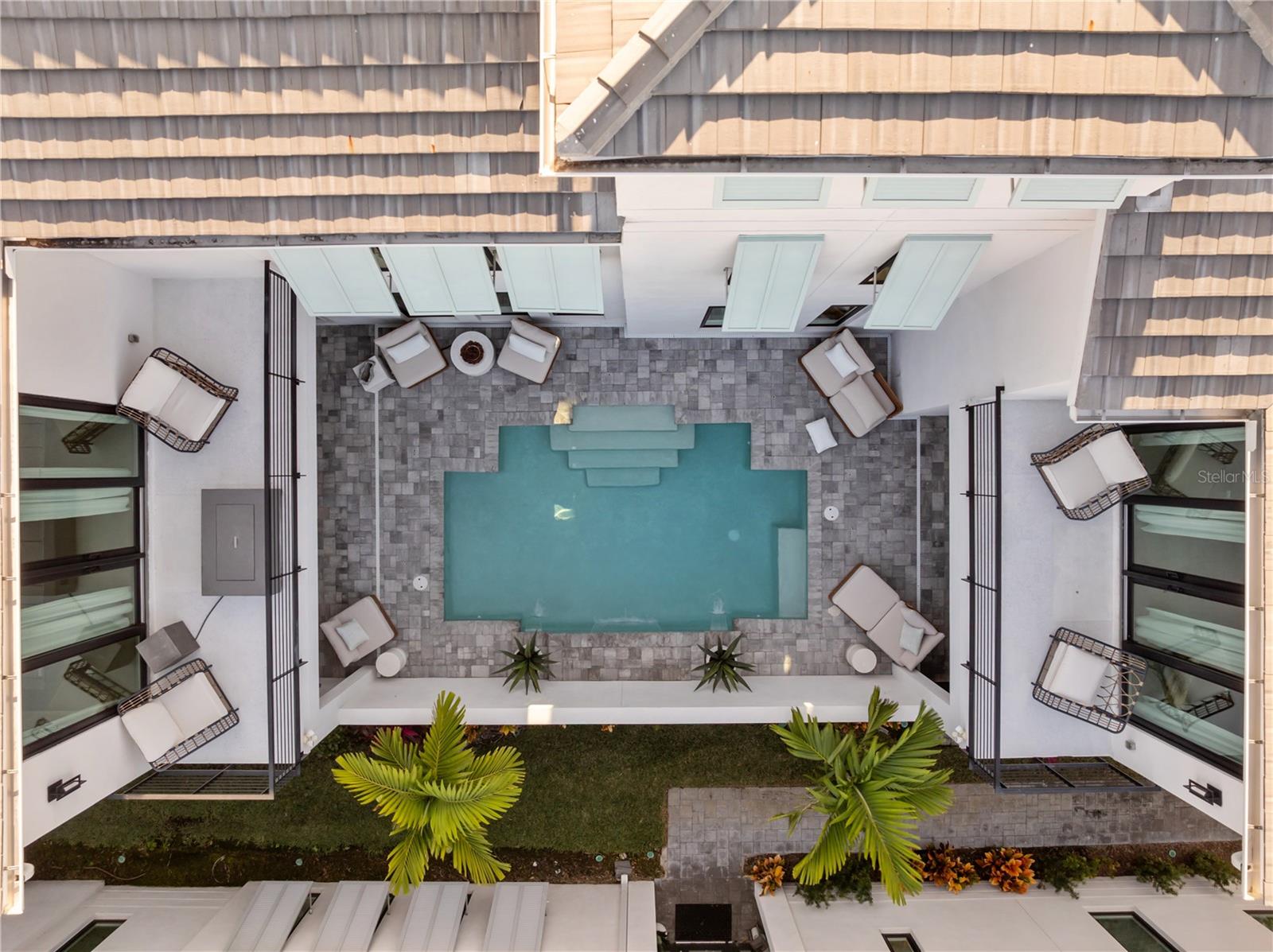 Experimente o luxo costeiro intencionalmente projetado nesta residência moderna de dois andares localizada no prestigiado condomínio Aqua Lagoon, um enclave fechado que oferece serviço de guarda 24 horas e acesso exclusivo a uma praia privativa de quatro acres em estilo resort e uma lagoa cristalina. Projetada para uma vida interna e externa sem esforço, esta casa cuidadosamente planejada oferece privacidade excepcional, sem casas vizinhas com vista para a piscina ou pátio. Abrangendo 3.916 pés quadrados, a residência possui quatro quartos, quatro banheiros completos, um loft e uma ampla sala de mídia bônus, com espaços flexíveis que permitem a conversão em até seis quartos para atender a uma variedade de estilos de vida. Um quarto altamente desejável no primeiro andar oferece acomodações ideais para hóspedes, residências multigeracionais ou um retiro privado perto de um banheiro completo. Na entrada, tetos altos e uma escada personalizada atualizada dão o tom, complementados por isolamento de espuma em spray e acabamentos contemporâneos de alta qualidade. A casa foi projetada estruturalmente para acomodar um futuro elevador, com o atual espaço do poço utilizado para armazenamento adicional. O coração da casa gira em torno de um pátio interno privativo com piscina de água salgada e cascata personalizada, projetado para conectar perfeitamente os espaços internos e externos. As portas duplas da cozinha e do espaço flexível ou de mídia no andar de baixo abrem diretamente para a piscina, melhorando o fluxo para a vida cotidiana e o entretenimento. A cozinha do chef é equipada com eletrodomésticos premium, bancada de quartzo, forno duplo inteligente, micro-ondas, armários de madeira maciça, despensa e uma grande ilha com fogão a gás natural com sistema de ventilação ascendente, todos com vista para a área de estar iluminada. Uma área de jantar formal captura a vista da piscina, e a ampla sala de mídia ou flexível oferece versatilidade adicional. O primeiro andar também inclui um banheiro completo com acesso direto à piscina e um recanto embaixo da escada. No andar de cima, vários quartos possuem varandas privadas com vista para o pátio e para a piscina. A suíte principal oferece sua própria varanda, closet amplo e banheiro inspirado em spa com pia dupla, banheira de imersão e chuveiro amplo com chuveiros duplos. Um quarto secundário inclui banheiro privativo, enquanto outro está localizado próximo a um banheiro completo adicional, além de uma lavanderia no segundo andar. Atualizações adicionais incluem iluminação UV em ambos os sistemas HVAC e um sistema de filtragem de água de nível hospitalar para toda a casa. A garagem para três carros com acabamento em epóxi inclui um raro terceiro compartimento flexível, ideal para um carrinho de golfe, armazenamento ou veículo extra, além de armazenamento suspenso. Idealmente posicionado perto da IMG Academy, IMG Golf and Country Club, Anna Maria Island, Cortez Village, Aeroporto Internacional Sarasota Bradenton e das praias de Longboat Key, o Aqua Lagoon também oferece acesso conveniente à UTC e St Armands Circle. Esta propriedade apresenta uma oportunidade excepcional como residência principal, retiro de luxo na Flórida ou investimento anual em aluguel. Evite a espera por novas construções e agende hoje mesmo sua exibição privada desta residência costeira totalmente mobiliada.