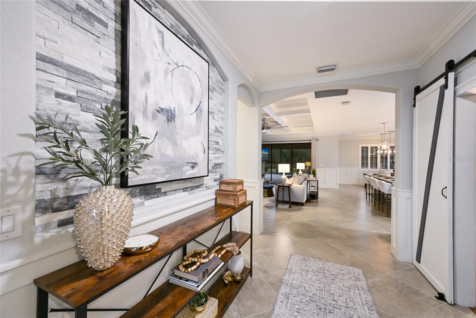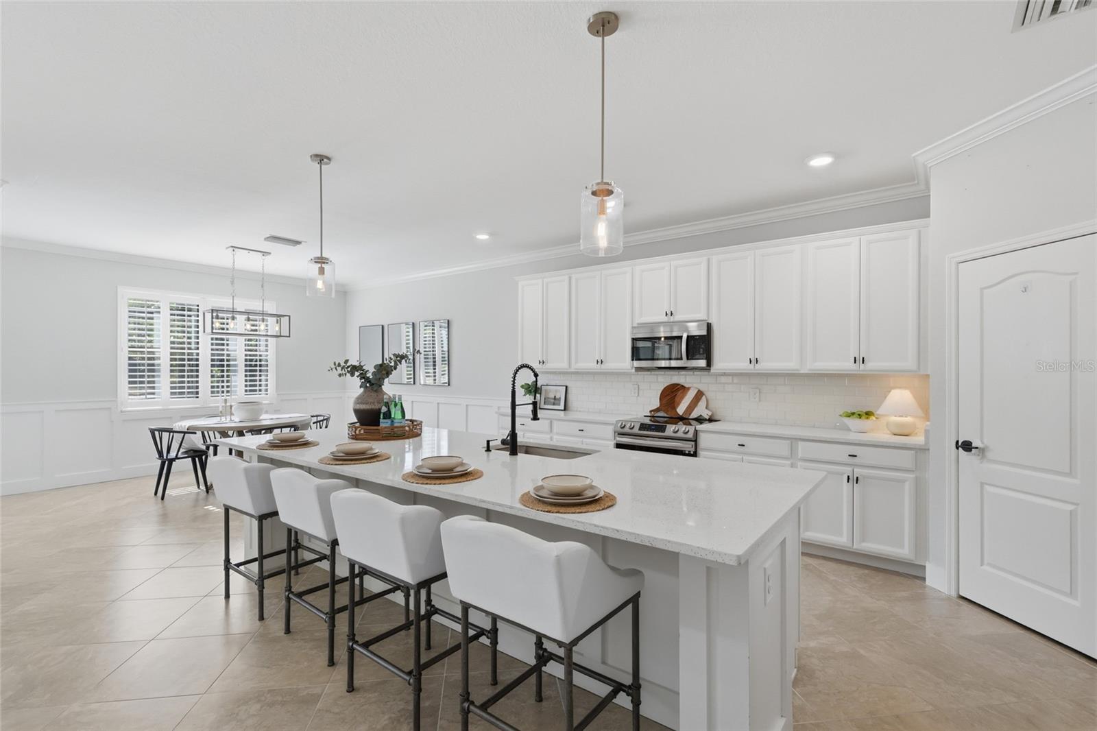 Prepare-se para ficar impressionado com esta IMPRESSIONANTE casa com piscina em um belo lago no muito procurado bairro fechado de Copperleaf, localizado bem na porta do Lakewood Ranch! Meticulosamente cuidada, esta popular planta tripla dividida em Summerville possui 3 quartos, uma sala flexível, 3 banheiros completos e uma garagem para 3 carros, bem como uma varanda incrível com piscina e spa com vista para um lago tranquilo e conservação para o máximo em privacidade. O apelo marcante desta casa irá cativá-lo com sua entrada pavimentada, paisagismo exuberante, elevação mediterrânea e telhado de telha moderno. Uma varanda frontal acolhedora leva você à entrada de porta dupla de 8 pés, e dentro você encontrará um hall de entrada espaçoso e amplo adornado com paredes de tábuas e sarrafos e um belo nicho arquitetônico acentuado por pedras empilhadas para exibir sua peça favorita. Um quarto espaçoso fica ao lado do hall de entrada, com banheiro completo localizado do lado de fora. Logo além do hall de entrada fica sua sala flexível com portas deslizantes personalizadas, tornando-a ideal para usar como escritório doméstico, escritório, academia doméstica ou até mesmo um quarto quarto. Um corredor além do hall de entrada leva você à sala de reuniões de conceito aberto, cozinha e sala de jantar com lustre moderno. Sua cozinha de design é PERFEITA para entretenimento e inclui armários de 42 "com sancas, balcões de quartzo, torneira suspensa de bobina atualizada, pia de tigela única, eletrodomésticos SS, incluindo o NOVO micro-ondas LG, backsplash de azulejos de metrô, despensa de canto grande e uma ENORME ilha estendida com detalhes de tábua e sarrafo. Sua espaçosa sala de reuniões apresenta um lindo teto em caixotões, paredes de tábua e sarrafo, e uma bela parede de lareira shiplap personalizada com manto. E espere até ver o quintal - amplo triplo controles deslizantes abertos para sua varanda LINDA, estendida e protegida com tela panorâmica e piscina de água salgada e spa com vista para um magnífico lago. Sua piscina aquecida e spa incluem uma NOVIDADE bomba Jandy e um novo aquecedor, e pavimentos logo além da gaiola da piscina criam o espaço perfeito para uma futura fogueira com vistas tranquilas da natureza e paisagismo tropical, incluindo palmeiras exuberantes cercam as laterais da varanda, tornando este seu verdadeiro oásis privado. Situado na parte de trás da casa, é o seu espaçoso Primário. Retiro, completo com teto em caixotões, parede dimensional com detalhes personalizados, ricos pisos de bambu e controles deslizantes que levam à varanda. O espaçoso banheiro principal da suíte inclui 2 pias e pias, torneiras atualizadas, chuveiro com box de vidro, banheira de jardim, 2 grandes closets, cada um com embutidos, e vaso sanitário logo após o hall de entrada, um corredor leva à lavanderia e à suíte de hóspedes privativa. pia e passagem conveniente para a garagem, enquanto a suíte de hóspedes oferece seu próprio banheiro privativo com box amplo, penteadeira com tampo de pedra com torneira moderna e prateleiras adicionais. Outras atualizações notáveis incluem NOVA pintura interna, sistema de segurança com sensores em todas as portas e janelas, persianas, piso de pranchas de vinil luxuoso na sala e nos quartos secundários, amaciante de água, pisos de epóxi e racks de armazenamento suspensos na garagem e muito mais. Situado no altamente desejado Copperleaf, aproveite a manutenção gratuita. Estilo de vida na Flórida sem taxas de CDD. Taxa HOA inclui acesso à piscina comunitária, Spectrum Internet, TV a cabo, corte e paisagismo Localização privilegiada com acesso rápido e fácil a 64, LWR Blvd, I-75 e à rampa para barcos Ft.
