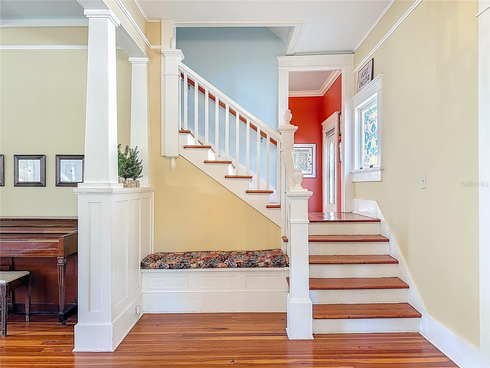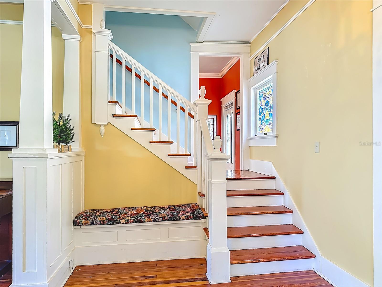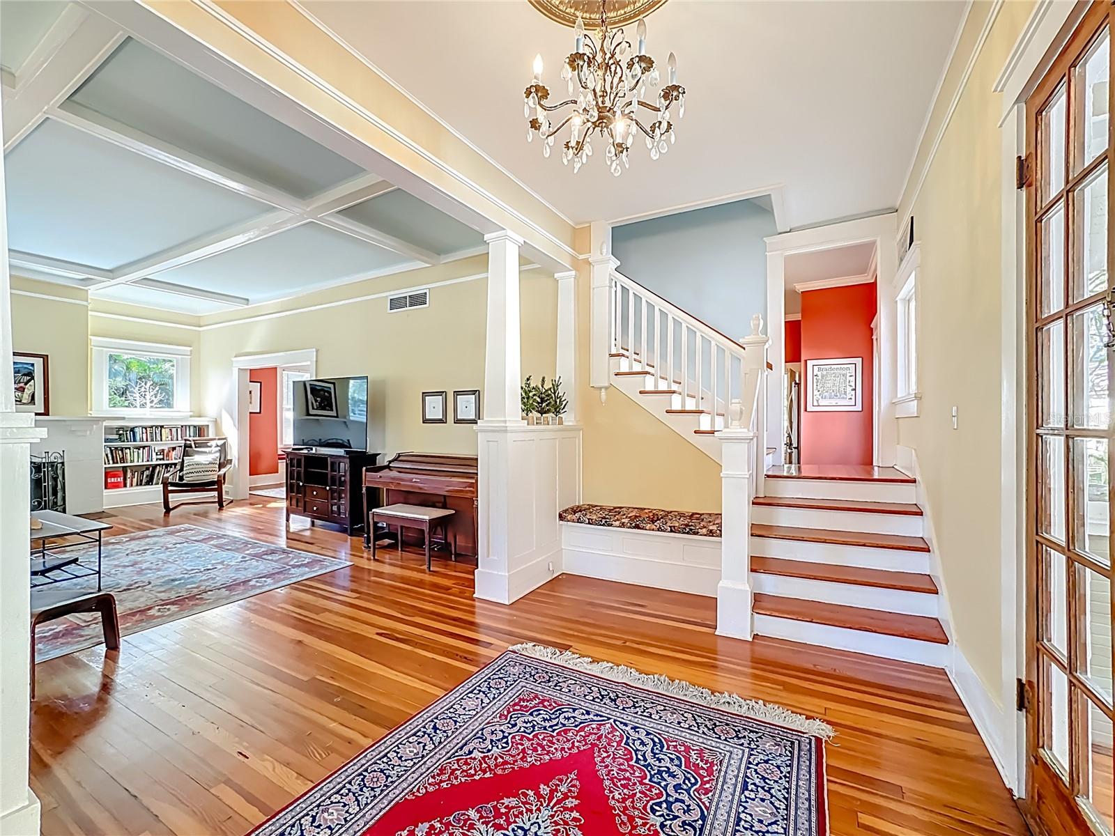 Onde a história vive lindamente - um clássico do centro de Bradenton de 1914! Esta casa histórica mostra o artesanato atemporal e o caráter arquitetônico das primeiras residências da Flórida. Projetada para o clima subtropical, a casa possui tetos altos, janelas generosas e uma acolhedora varanda frontal que expande o espaço de estar e reflete a elegância descontraída de uma época passada. Um teto de caixotões de madeira acrescenta profundidade arquitetônica, enquanto pisos de madeira, portas internas sólidas e detalhes de acabamento clássicos aumentam o apelo histórico. A casa principal possui 3 quartos e 2,5 banheiros. Lareiras a lenha estão presentes na sala de estar, na sala de jantar e no quarto principal. A suíte principal inclui uma sala bônus adjacente ideal para um berçário, escritório ou espaço de fitness, um closet e um banheiro privativo reformado com pia dupla, box amplo e vaso sanitário privativo. A cozinha atualizada combina o charme clássico com a funcionalidade moderna e inclui eletrodomésticos de aço inoxidável, fogão a gás com forno duplo e cinco bocas, lava-louças e refrigerador de vinho embutido. A espaçosa sala de jantar acomoda confortavelmente reuniões de família e amigos, criando um ambiente acolhedor para refeições memoráveis. As melhorias recentes incluem novo telhado e calhas (2025), pintura externa, substituição do deck de madeira, escadas e patamar para o apartamento garagem e nova cerca traseira (todas 2024). Atualizações adicionais incluem sistemas de ar condicionado substituídos em 2019 e 2023 e isolamento de espuma em spray adicionado ao sótão para melhorar a eficiência energética. Um apartamento com garagem separada oferece flexibilidade com um quarto, banheiro completo, sala de estar e cozinha compacta - ideal para hóspedes, familiares ou renda potencial. Localizado a uma curta caminhada da Old Main Street e do centro de Bradenton, desfrute de fácil acesso ao Mercado Público de Bradenton, restaurantes, boutiques, biblioteca e museus. Uma rara oportunidade de possuir uma casa histórica com habitabilidade moderna no coração da cidade.