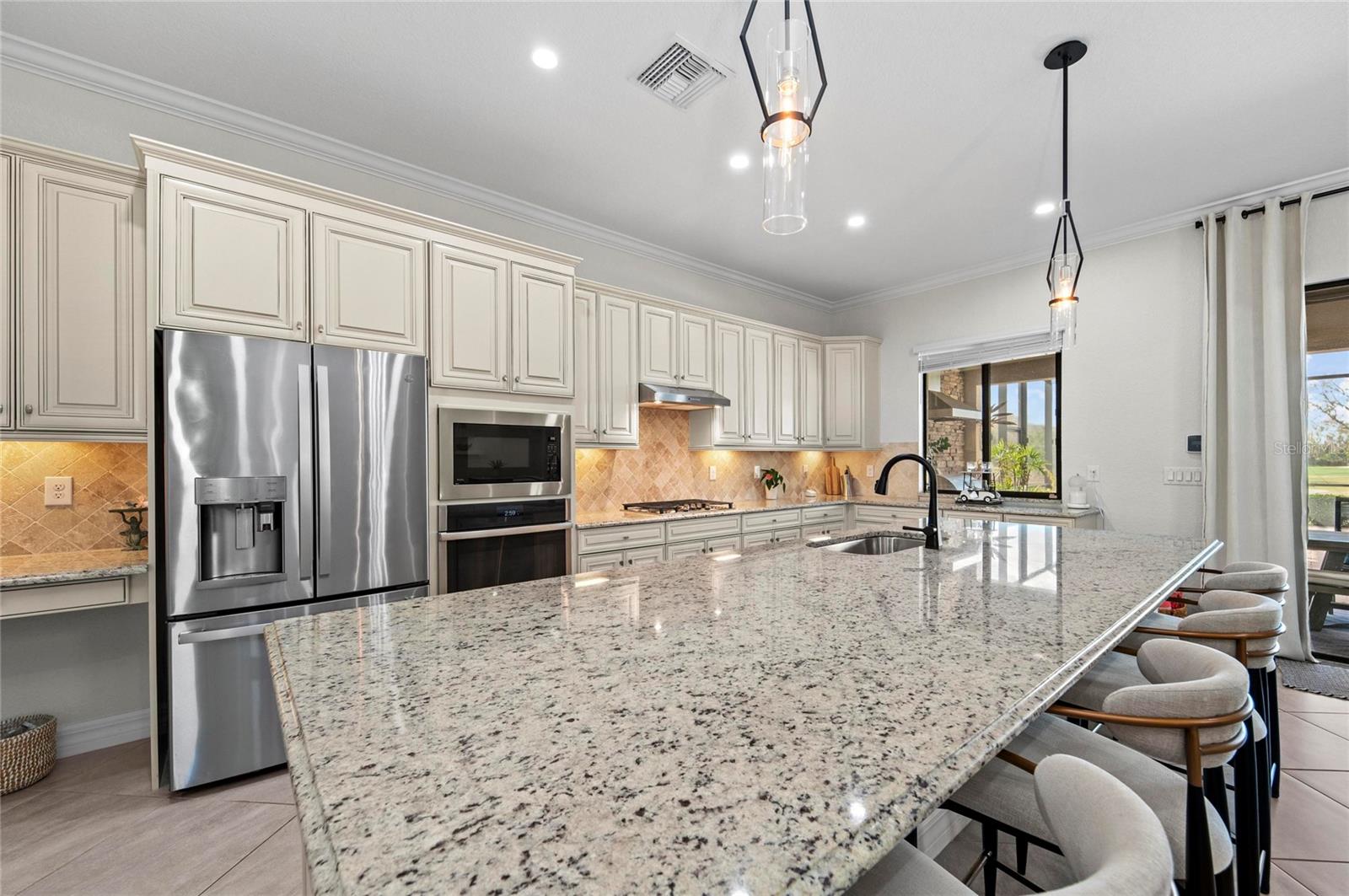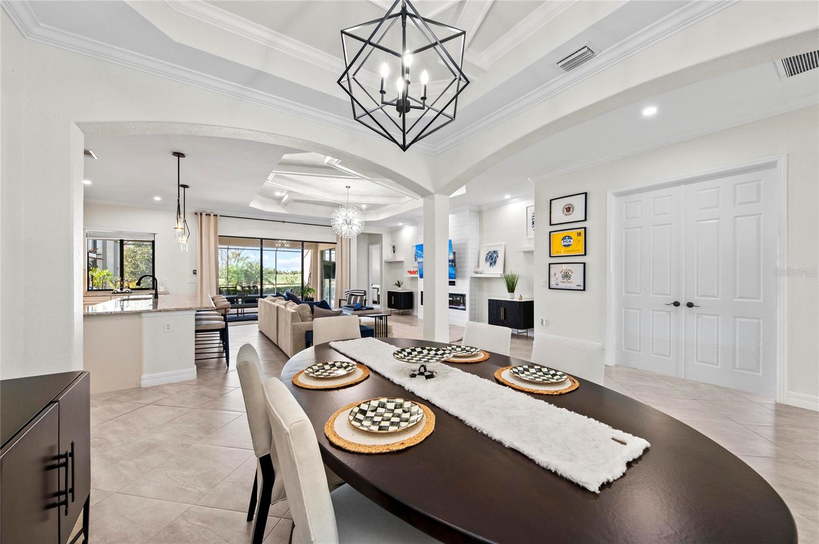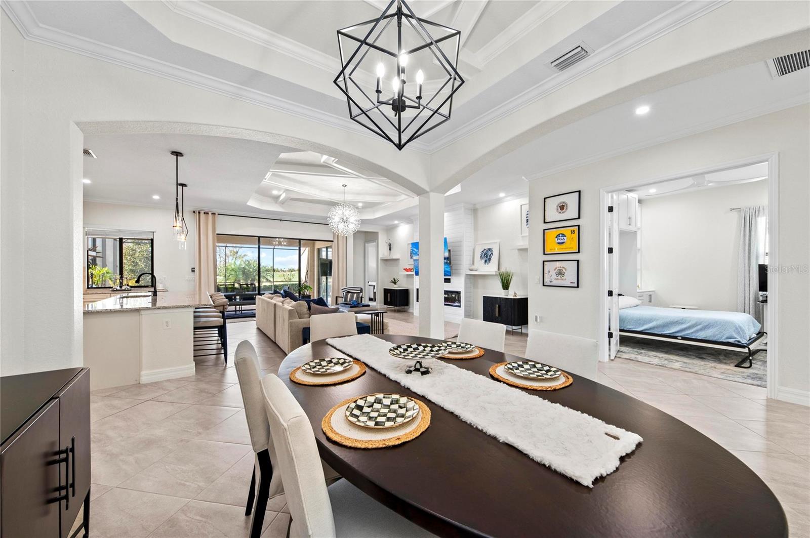 Bem-vindo à vida em estilo resort no Lakewood National Golf Club, um condomínio fechado 24 horas em Lakewood Ranch com 36 buracos de golfe profissional projetado por Arnold Palmer e sede do Korn Ferry Tour anual. Esta é uma comunidade totalmente escriturada de golfe que oferece comodidades de primeira linha e um estilo de vida incomparável. Perfeitamente posicionado no 9º tee do Piper Course, este modelo Lennar Angelina lindamente conservado oferece 3 quartos, 2 banheiros, garagem para 2 carros e mais de 2.000 pés quadrados de área útil cuidadosamente projetada. Projetado como uma verdadeira casa para sempre, oferece mais de US$ 200.000 em atualizações de alta qualidade. O layout de conceito aberto é ideal para entretenimento, com destaque para a cozinha de um chef com armários de madeira de avelã, bancadas de quartzo, eletrodomésticos de aço inoxidável GE Profile com cozinha a gás natural e acabamentos de luxo por toda parte. Os detalhes arquitetônicos incluem tetos de bandeja, uma impressionante porta frontal de vidro, portas internas de madeira maciça e extensas sancas com iluminação aprimorada em toda a casa. Os interruptores Smart Leviton fornecem controle de aplicativo, acesso remoto liga/desliga e programações de iluminação personalizáveis para maior comodidade. A sala de estar apresenta teto personalizado, lareira com parede shiplap, embutidos e fiação de TV montada. A suíte principal oferece teto falso, banheira e chuveiro atualizados e armários personalizados. Um quarto de hóspedes possui uma cama embutida embutida e a garagem tem piso de epóxi durável. Saia para o seu retiro privado no campo de golfe com uma piscina de água salgada aquecida expandida e spa com acabamento PebbleTec e aquecedor a gás natural, deck de pavimentação, teto va com painéis de madeira, cozinha de verão externa totalmente equipada, robô de piscina remoto programável, bomba de piscina mais recente e iluminação externa adicional na gaiola da piscina, nas palmeiras e na frente da casa, criando um ambiente noturno deslumbrante. Os residentes desfrutam de dois campos de campeonato (Commander & Piper), uma piscina estilo lagoa com tiki bar, tênis, pickleball, bocha, academia, spa de serviço completo e um grande clube com refeições requintadas e casuais - tudo incluído no HOA. Conveniente para I-75, Sarasota, Tampa, lojas, restaurantes e praias do Golfo, esta casa oferece a combinação perfeita de luxo, estilo de vida e localização. Agende sua exibição privada hoje mesmo!!