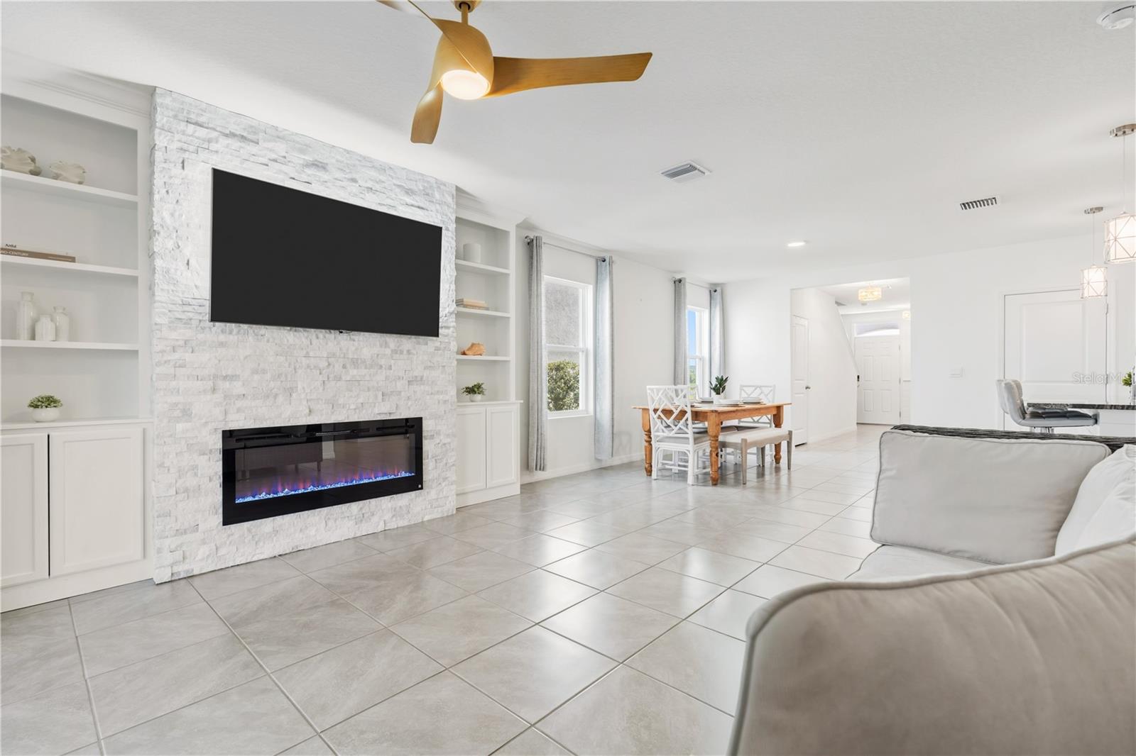 Luxo sem espera - Volte para casa e desfrute do cobiçado estilo de vida Star Farms nesta residência excepcional e pronta para morar. Pule o cronograma de construção e entre em uma casa lindamente atualizada, apresentando acabamentos meticulosamente atualizados, muito além das ofertas padrão do construtor. Construída com blocos de concreto duráveis, esta espaçosa casa de cinco quartos e três banheiros possui uma varanda enorme com uma rara linha de telhado estendida - o cenário perfeito para o café da manhã, noites tranquilas ou vistas deslumbrantes do pôr do sol. Idealmente posicionada em uma área residencial premium, sem vizinhos traseiros e com um quintal cercado, a propriedade oferece privacidade e tranquilidade - ou um curto passeio de bicicleta ou carrinho de golfe - até a nova escola Lake Manatee K-8. O primeiro andar de conceito aberto combina conforto e estilo, apresentando um quarto de hóspedes ou escritório flexível com banheiro completo, uma cozinha de design e uma área de estar acolhedora destacada por uma parede de entretenimento de pedra personalizada. Atualizações cuidadosas continuam por toda parte, incluindo um exaustor de aço inoxidável, encanamentos e banheiros aprimorados, portas de box de vidro, ventiladores de teto em todos os quartos, luxuoso piso de pranchas de vinil em todo o segundo nível e sistemas de armários personalizados em todos os quartos. Um sistema de filtragem de água doméstico adiciona outra camada de luxo diário. A garagem anexa para dois carros é igualmente impressionante, completa com portas de garagem isoladas, piso de epóxi e seu próprio sistema mini-split - ideal para armazenamento, hobbies ou espaço de trabalho climatizado. A vida aqui parece um resort de férias o ano todo, com acesso a algumas das comodidades mais procuradas do Lakewood Ranch: restaurante e bar, cafeteria, centro de fitness e performance, parque para animais de estimação, quadra de basquete, campo de beisebol, quadras quadrangulares, playground, piscina e spa estilo resort, trilhas naturais pitorescas e muito mais no caminho. Além disso, você está a apenas uma curta distância de carro das praias de classe mundial do Golfo, como Siesta Key. Sua oportunidade de morar em uma das comunidades mais desejáveis do Lakewood Ranch o aguarda!!
