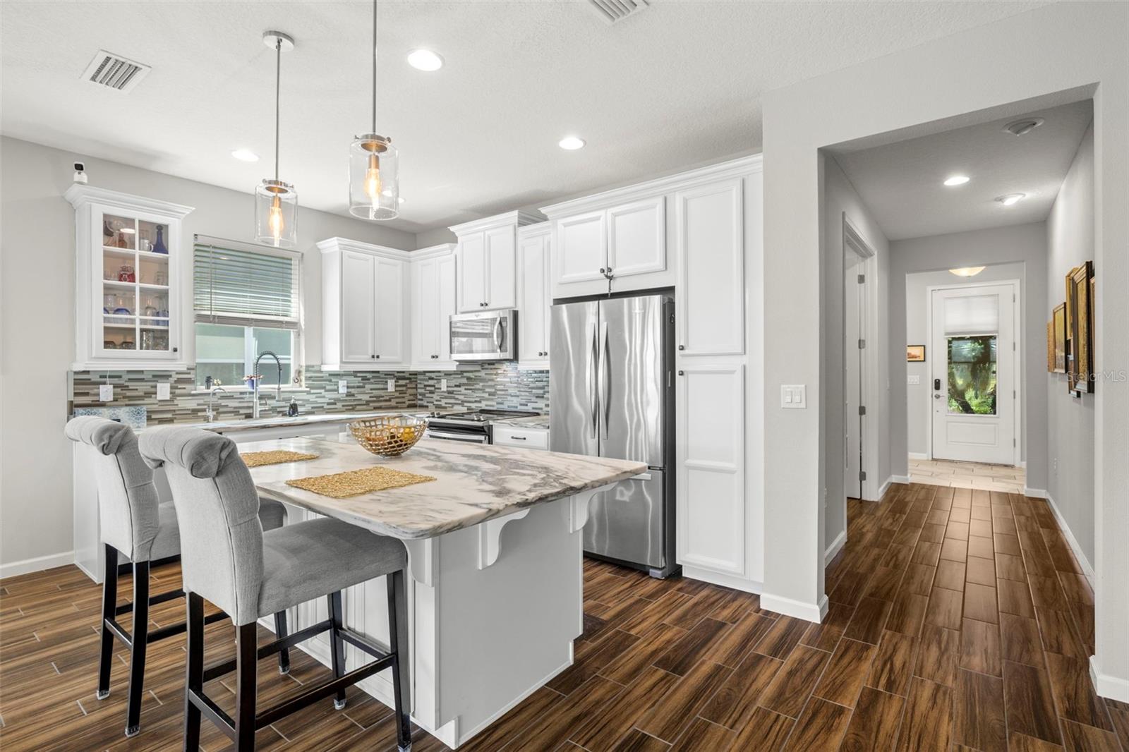 Bem-vindo ao lar! Lindo 2 quartos, 2 banheiros, garagem para 2 carros, além de arrumos. A cozinha é deslumbrante com uma ilha grande, balcões de granito, backsplash de azulejos, eletrodomésticos de aço inoxidável, sistema de água por osmose reversa e aberta para as áreas de jantar e de estar. O piso de cerâmica facilita o cuidado. Planta de quarto dividido com possível 3º quarto atualmente utilizado como home office. Lanai exibido tem vista para a água e quintal cercado para privacidade. A garagem possui sistema de armazenamento para manter tudo fora do chão, sistema de filtragem de água em toda a casa e possui ar condicionado mini-split. Pintura interior fresca e nova iluminação e ventiladores de teto. Sem zona de inundação e sem evacuação para maior tranquilidade. As comodidades da comunidade incluem manutenção do gramado, trilha para caminhada pelas áreas úmidas e de matagal da Flórida, piscina estilo resort com entrada na praia e pistas de corrida, Clubhouse com academia e playground. Escolas A+; Gullett Elementary, Lakewood Ranch High School e Mona Jain Middle School, LECOM e Manatee Tech East Campus. Localizado perto de Restaurantes, Shopping, Campos de Golfe, Marinas, Praias, e muito mais. Este é o paraíso!
