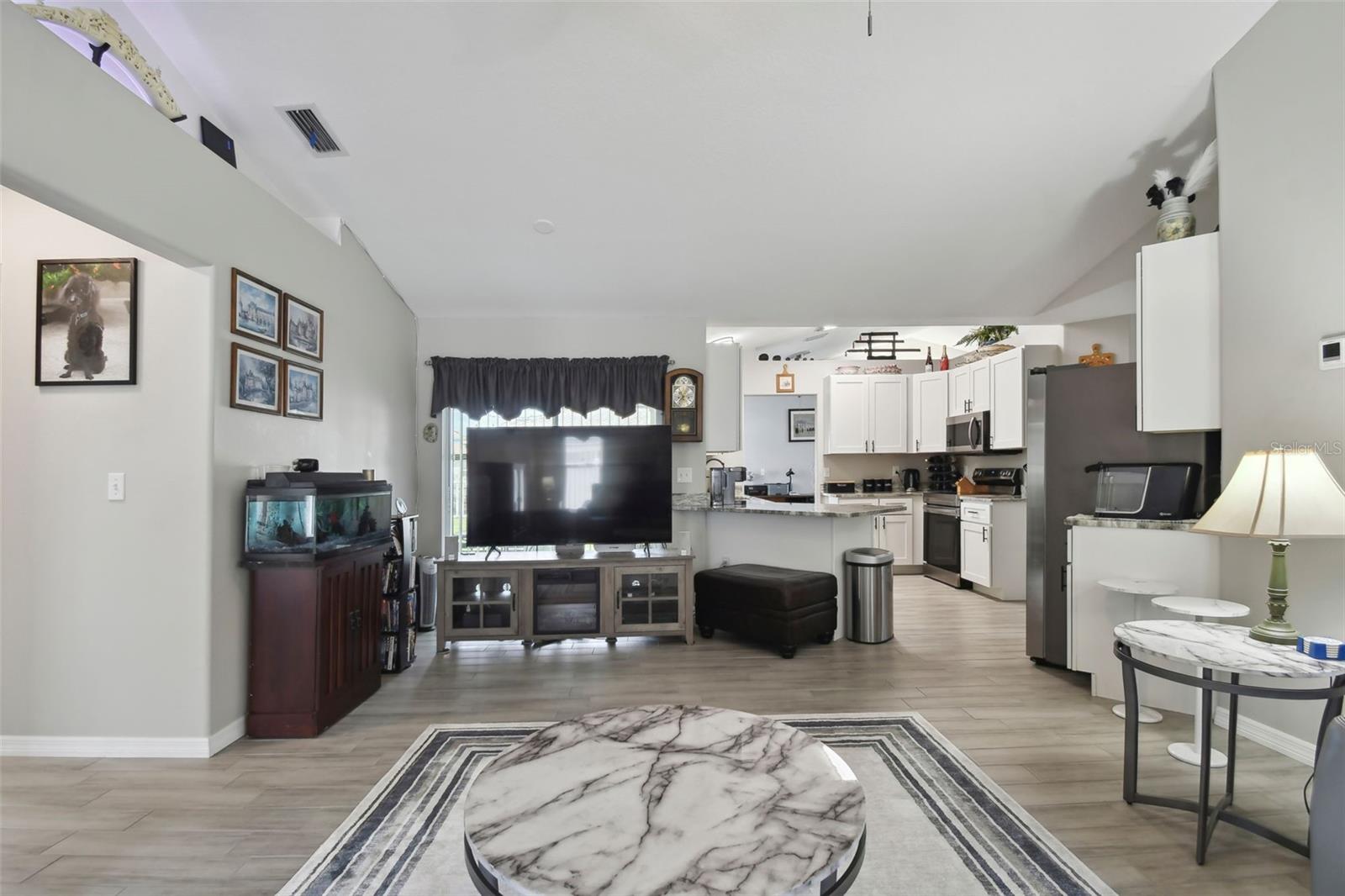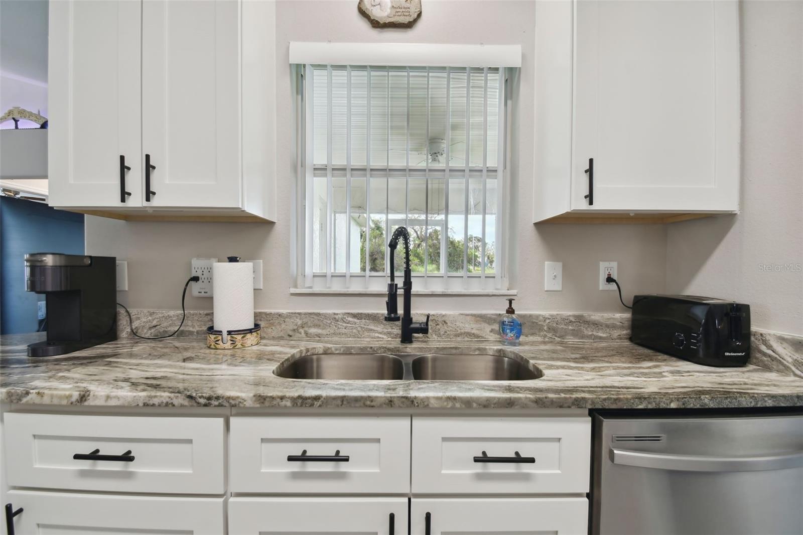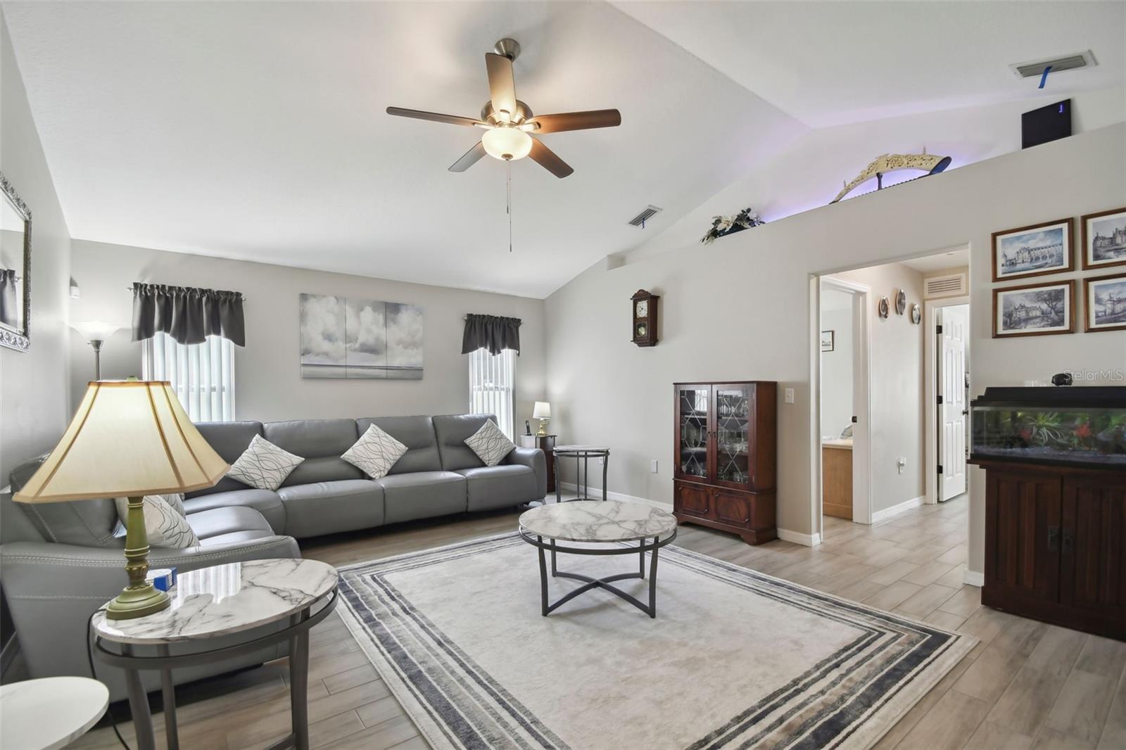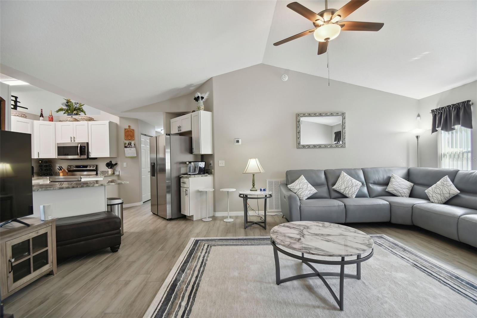 Novo preço !! Esta encantadora, renovada, 1.697 pés quadrados, 3 quartos em casa de 2 banheiros com vista para o lago fica perto do final de um beco sem saída em uma pequena e tranquila comunidade perto de grandes supermercados, bancos e restaurantes. A casa permite que você crie seu próprio layout exclusivo com uma planta aberta, qualidade e ladrilho cinza e tetos abobadados nos dois espaços de estar. Uma das áreas de estar tem portas deslizantes de vidro que levam a um lanai selecionado. A cozinha possui armários de agitadores brancos, bancadas de mármore, descarte e utensílios de aço inoxidável Samsung. A suíte master, de um lado da casa, tem um banheiro privativo com banheira de jardim, vaidade, armário de linho, chuveiro de canto grande e closet. O quarto dois tem um grande closet e fica sentado em um pequeno corredor do banheiro de hóspedes. O quarto três tem vista para o lago e um grande closet. O banheiro de hóspedes possui combinação de banheira/chuveiro, WC, vaidade, armário de linho e porta da piscina, levando ao lanai exibido. A garagem de 2 carros possui conexão de arruela/secadora, pia de utilidade, grande unidade de armazenamento aéreo e uma porta que leva ao quintal lateral. Novo AC instalado em abril de 2024