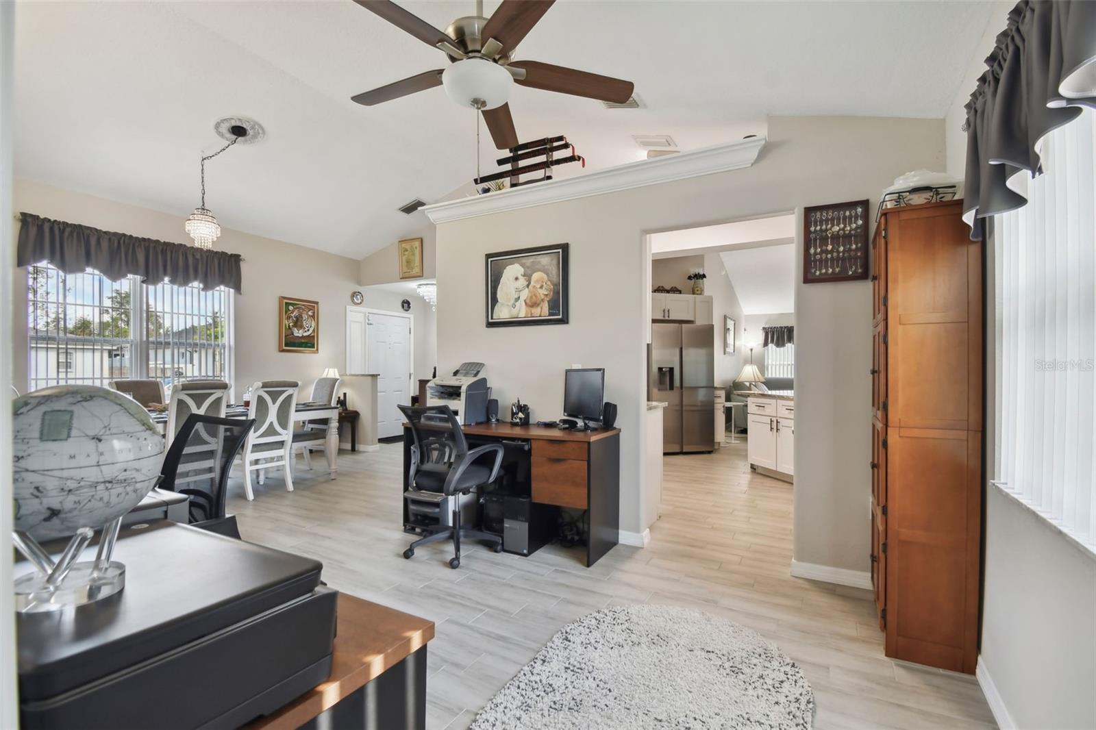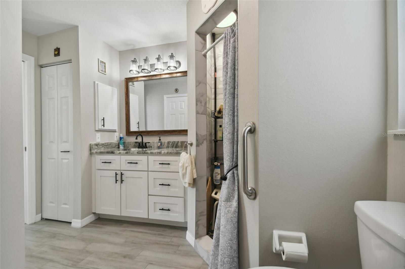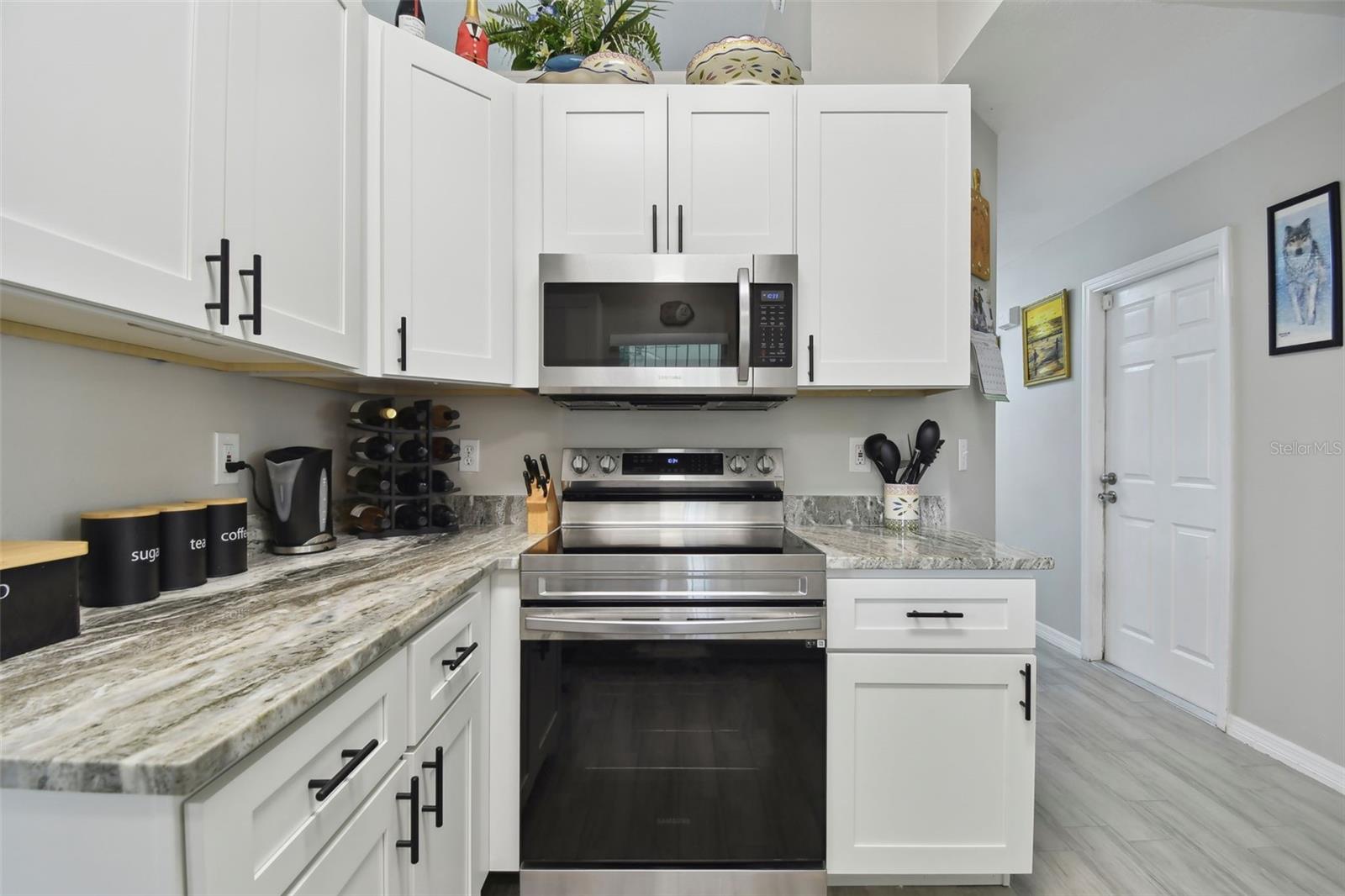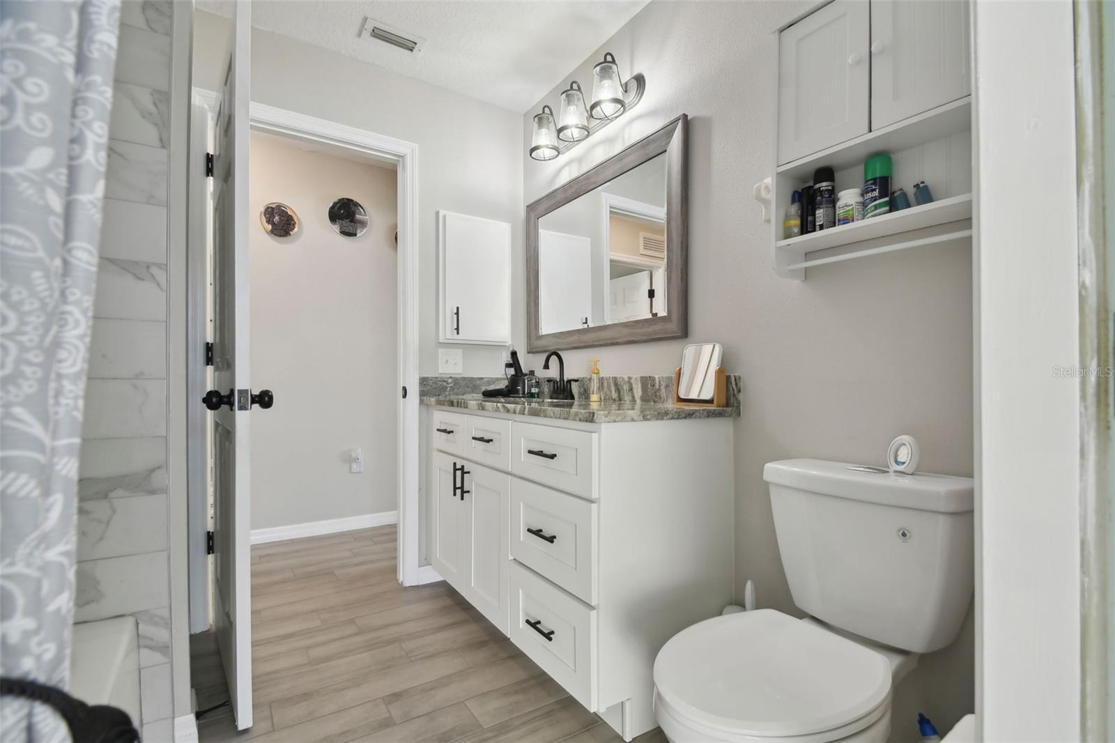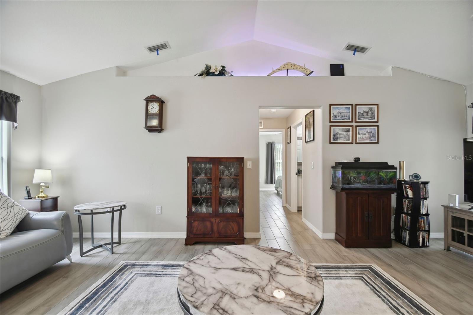 Novo preço !! Esta encantadora, renovada, 1.697 pés quadrados, 3 quartos em casa de 2 banheiros com vista para o lago fica perto do final de um beco sem saída em uma pequena e tranquila comunidade perto de grandes supermercados, bancos e restaurantes. A casa permite que você crie seu próprio layout exclusivo com uma planta aberta, qualidade e ladrilho cinza e tetos abobadados nos dois espaços de estar. Uma das áreas de estar tem portas deslizantes de vidro que levam a um lanai selecionado. A cozinha possui armários de agitadores brancos, bancadas de mármore, descarte e utensílios de aço inoxidável Samsung. A suíte master, de um lado da casa, tem um banheiro privativo com banheira de jardim, vaidade, armário de linho, chuveiro de canto grande e closet. O quarto dois tem um grande closet e fica sentado em um pequeno corredor do banheiro de hóspedes. O quarto três tem vista para o lago e um grande closet. O banheiro de hóspedes possui combinação de banheira/chuveiro, WC, vaidade, armário de linho e porta da piscina, levando ao lanai exibido. A garagem de 2 carros possui conexão de arruela/secadora, pia de utilidade, grande unidade de armazenamento aéreo e uma porta que leva ao quintal lateral. Novo AC instalado em abril de 2024