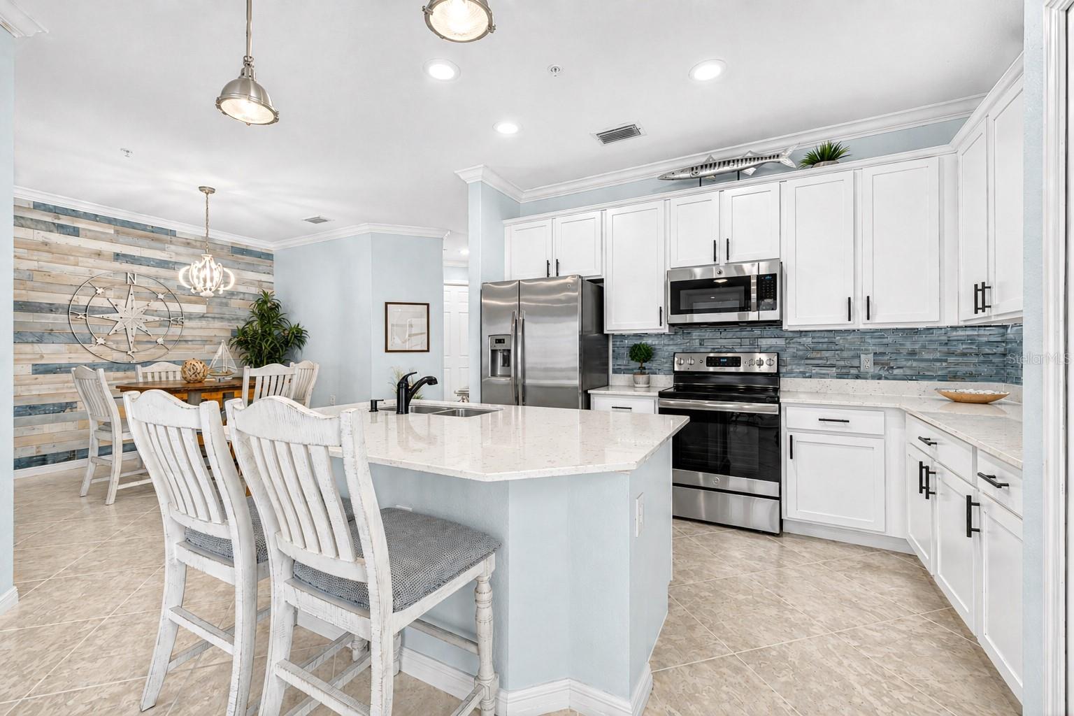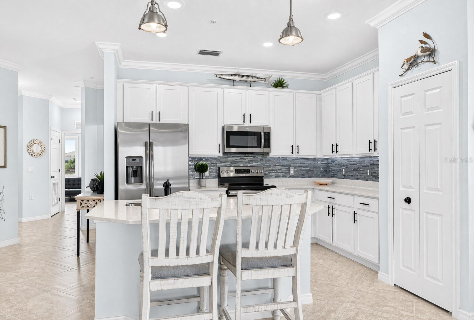 Acorde com vistas panorâmicas deslumbrantes do Rio Manatee a partir desta unidade raramente disponível no último andar, voltada para o oeste, no exclusivo condomínio fechado de Tidewater Preserve. Esta residência no último andar tem a muito procurada planta Carolina com elevador privativo no prédio. Oferece três quartos, dois banheiros e um design de conceito aberto que permite vistas deslumbrantes do mar da maior parte da unidade. Sem vizinhos acima, tetos altos e muita luz natural, esta unidade oferece a rara sensação de espaço e serenidade que define o que há de melhor na Flórida. À medida que o sol se põe, a residência se transforma: o horizonte cintilante do centro de Bradenton brilha no horizonte, os golfinhos deslizam pela água abaixo, os velejadores navegam ao longo do rio e há vistas de primeira fila dos fogos de artifício do 4 de julho sobre o rio todos os anos. Amplas portas de vidro deslizantes abrem para uma varanda com tela – equipada com telas anti-visualização e uma persiana retrátil – oferecendo um espaço externo privativo para saborear o pôr do sol vibrante. No interior, atualizações cuidadosas refletem uma estética costeira refinada: nova iluminação, hardware atualizado, ventiladores de teto atualizados, uma impressionante parede com detalhes em madeira costeira e uma paleta de cores suave e coesa por toda parte. O carpete neutro e macio ancora os quartos primário e secundário, enquanto o terceiro quarto apresenta piso de pranchas de madeira vinílica durável. A cozinha possui armários shaker com bancadas de quartzo, eletrodomésticos de aço inoxidável e um elegante backsplash de vidro. Os recursos de casa inteligente incluem um sistema de fechadura de porta integrado, campainha e termostato inteligente. O quarto principal tem vistas impressionantes para o Rio Manatee, bem como dois armários e um banheiro principal de tamanho generoso. As janelas com classificação contra furacões fornecem proteção contra tempestades e eficiência energética, enquanto a manutenção bianual de HVAC desde 2020 garante que a casa seja meticulosamente mantida. Os residentes podem desfrutar das comodidades de nível de resort do Tidewater Preserve: uma marina privada com acesso direto ao rio Manatee e ao Golfo através de um elevador de barco coberto, dois clubes, três piscinas, duas academias de ginástica, churrasqueiras ao ar livre, um playground, um parque dedicado para cães, quadras de tênis, lançamento de caiaque/canoa/SUP com armazenamento, uma trilha natural panorâmica à beira-rio e um diretor de estilo de vida no local. Uma vida livre de manutenção é realmente fácil aqui, com taxas HOA cobrindo cuidados com o gramado, paisagismo, água, esgoto, lixo, seguro contra inundações, internet e um pacote de cabos expandido. Esta unidade vem com uma vaga de estacionamento coberta designada do lado de fora do edifício. Este local é difícil de superar e você também pode entrar no carro e ir para algumas das praias mais bem avaliadas do país. Venha ver esta bela unidade hoje com algumas vistas raramente vistas para o Rio Manatee.