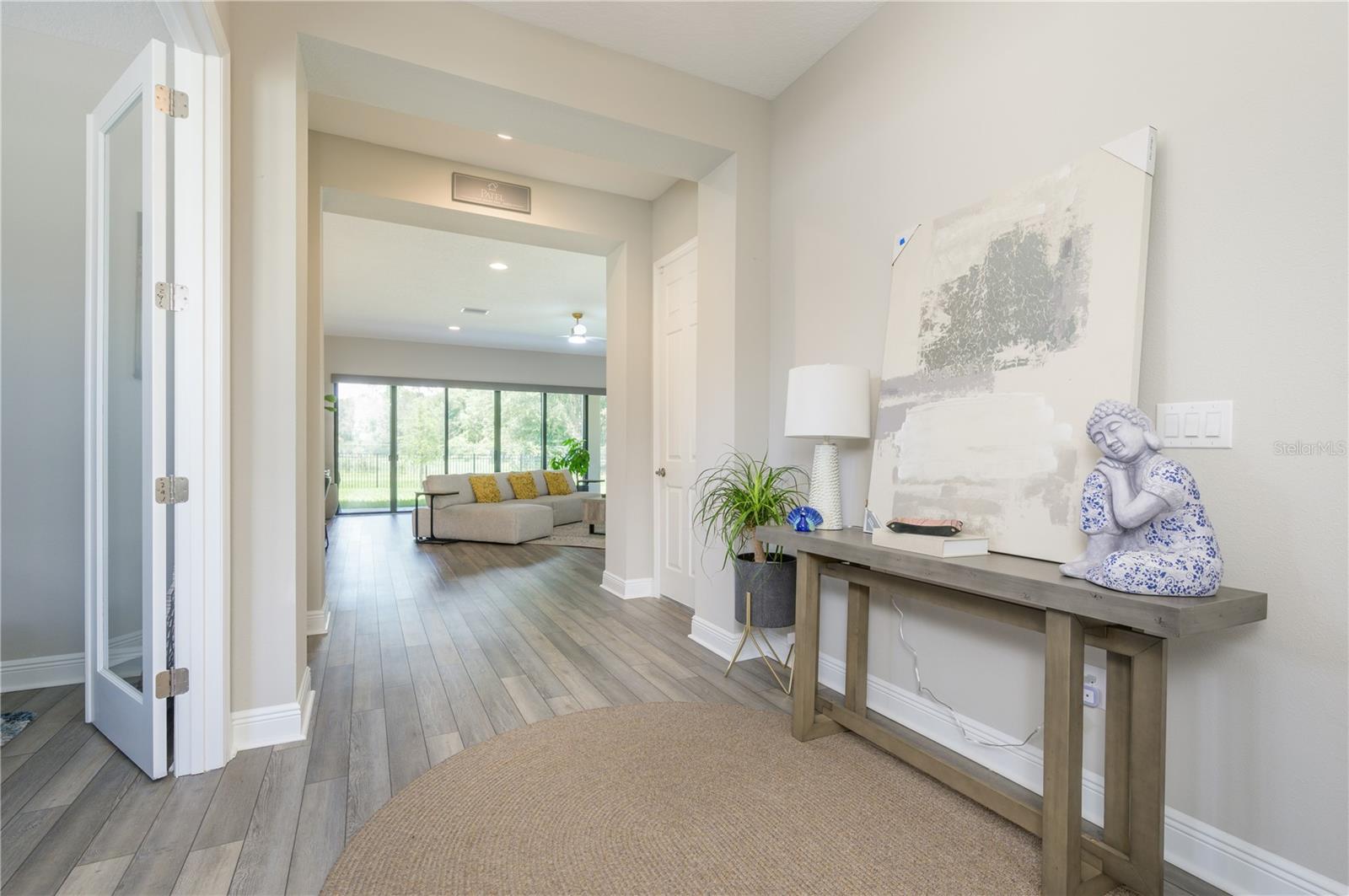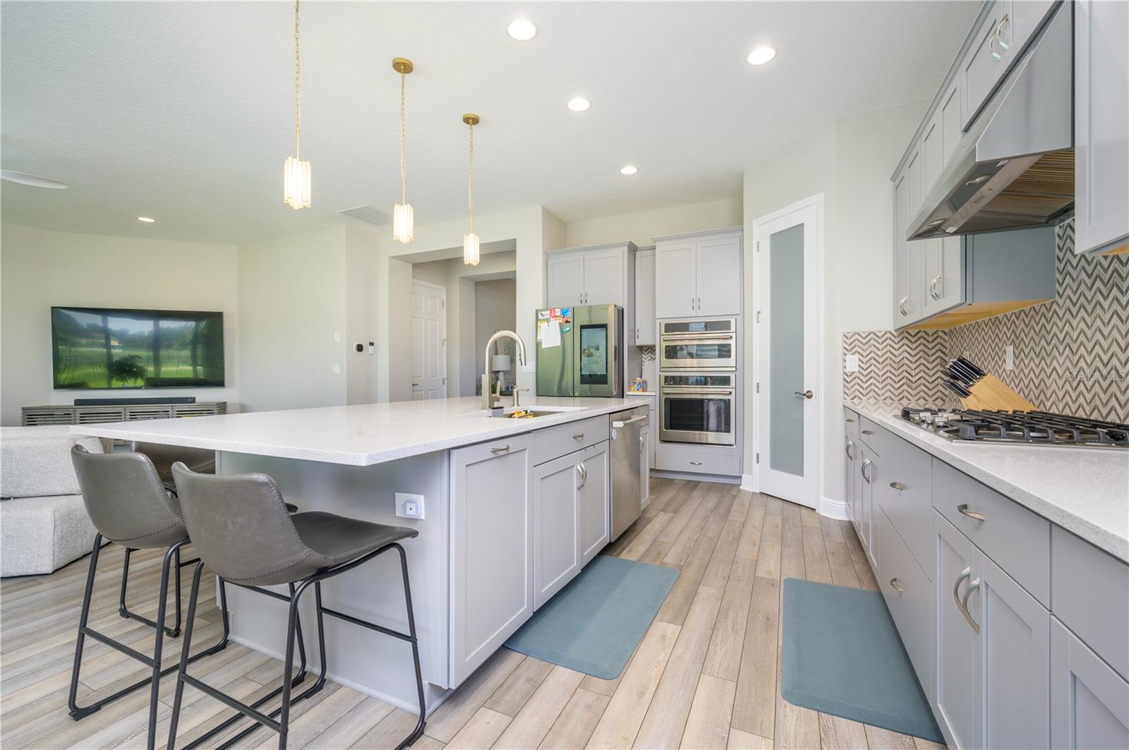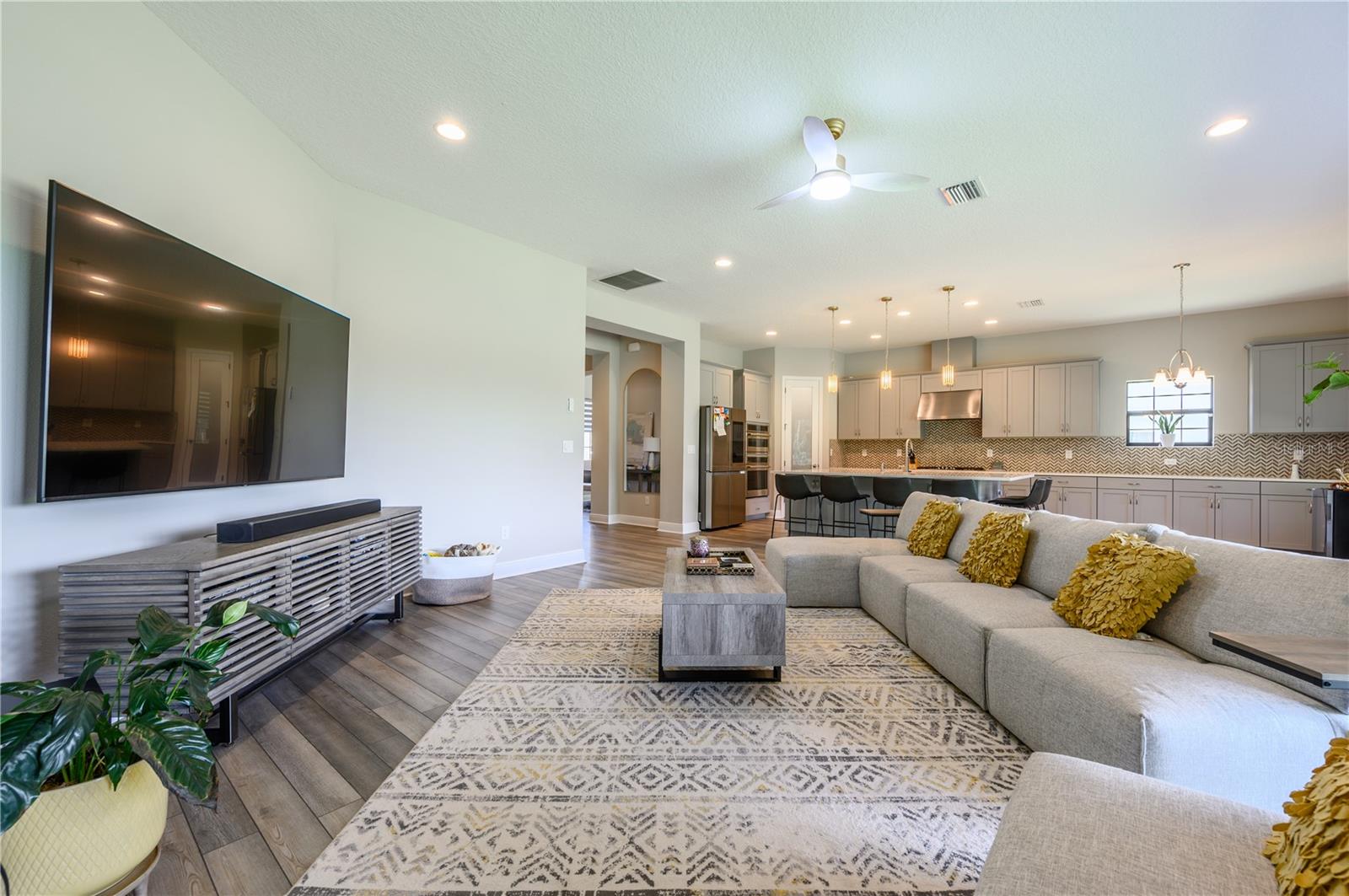 Localizada nos bairros mais desejáveis de Brandon, esta casa WestBay construída em 2022 oferece quase 3.546 pés quadrados de espaço "como novo" com 5 quartos e 4 banheiros. Além disso, há um portão privado incluído na cerca do quintal que leva ao caminho surreal e tranquilo nos fundos até o maior rio de Tampa, o Rio Alafia. Uma varanda coberta recebe você na porta da frente desta casa projetada com bom gosto. À entrada no primeiro andar existe um arrumos à esquerda e um hall de entrada que dá acesso a um piso aberto com sala e cozinha. A sala pode ser convertida ou usada como home office, sala de jogos, sala de jantar ou espaço para exercícios. O hall de entrada leva a uma garagem conectada para 3 carros. Há uma cozinha espaçosa com despensa personalizada, com bancada de quartzo, eletrodomésticos GE Cafe Profile em aço inoxidável, bastante espaço nos armários e uma grande ilha central estendida. A cozinha se conecta perfeitamente à área de jantar, permitindo fácil entretenimento e socialização. Adjacente à área de jantar encontra-se uma ampla sala de estar com portas de correr de 18" que dá acesso ao pátio/varanda coberto com muita luz natural, o que torna o primeiro andar o local perfeito para relaxar e passar momentos com a família, amigos e convidados. Uma banheira/chuveiro completo está convenientemente localizado no primeiro andar para acomodar as principais áreas de estar, bem como um grande quarto de hóspedes. Ao subir a escada para o segundo andar, você percebe o amplo espaço aberto e luminoso do loft. A suíte master fica no segundo andar com um generoso banheiro master com pia para ele e para ela, chuveiro separado, banheira grande e closet com armário feito sob medida. Do outro lado existe uma lavandaria com bastante espaço nos armários e lavatório e ainda 1 quarto com casa de banho separada. Existem outros dois quartos com banheiros Jack & Jill. Todos os quartos, exceto banheiros, sala e hall de entrada, são interruptores inteligentes (compatíveis com Google ou Alexa). O Lanai tem uma conexão de cozinha externa Aproveite a vida suburbana não muito longe do centro de Tampa (20 minutos), bem como do aeroporto TPA (20 minutos). Muitos destinos populares de restaurantes e entretenimento cercam você nesta casa impecavelmente mantida e com localização incrível.