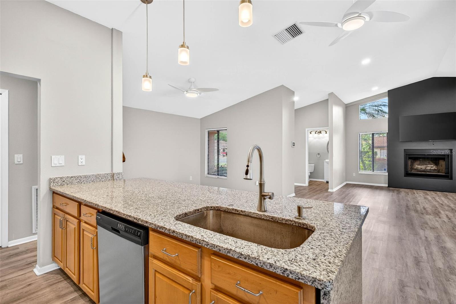 Sob ofertas de backup que aceitam contrato. Uma ou mais fotos foram virtualmente encenadas. Entre em uma vila que instantaneamente se sente em casa. Escondida dentro do condomínio fechado de La Viva, esta residência lindamente mantida oferece 1.927 pés quadrados de área iluminada, com 2 quartos, 2,5 banheiros, planta dividida e piscina privativa aquecida. A partir do momento em que você entra, você é recebido por um layout aberto, luz natural abundante e elegante piso de mármore por toda parte. A sala familiar é elegante e convidativa, centrada em torno de uma lareira modernizada que cria o espaço perfeito para relaxar ou se divertir. O layout oferece flexibilidade para jantares formais e casuais, dentro ou fora de casa. A cozinha remodelada foi cuidadosamente projetada com armários de 42 polegadas, bancadas de granito, eletrodomésticos de aço inoxidável, balcão para café da manhã e uma porta deslizante que leva diretamente para a varanda coberta - já preparada para uma cozinha externa, tornando-a ideal para ambientes internos e externos. A suíte principal serve como um retiro privativo, completa com pátio próprio, vestiário, closet personalizado, banheiro privativo com box amplo e acesso direto à piscina. Um segundo quarto com banheiro privativo oferece conforto e privacidade aos hóspedes, com closet, banheira de imersão, chuveiro separado e acesso conveniente à piscina. Aproveite sua própria piscina privativa aquecida, perfeita para tardes relaxantes ou entretenimento durante todo o ano, no verdadeiro estilo da Flórida. Atualizações adicionais incluem pintura interna e externa renovada, acabamentos de lareira modernizados, lavabo atualizado, janelas e portas de correr com redução de ruído e sistema de amaciante de água. Localizada nas proximidades de restaurantes, lojas e principais rotas de transporte, incluindo a Lee Roy Selmon Expressway e a I-75, esta casa oferece o equilíbrio perfeito entre privacidade, conforto e conveniência. Uma rara oportunidade de desfrutar de uma vila de baixa manutenção com piscina privativa em um condomínio fechado desejável.