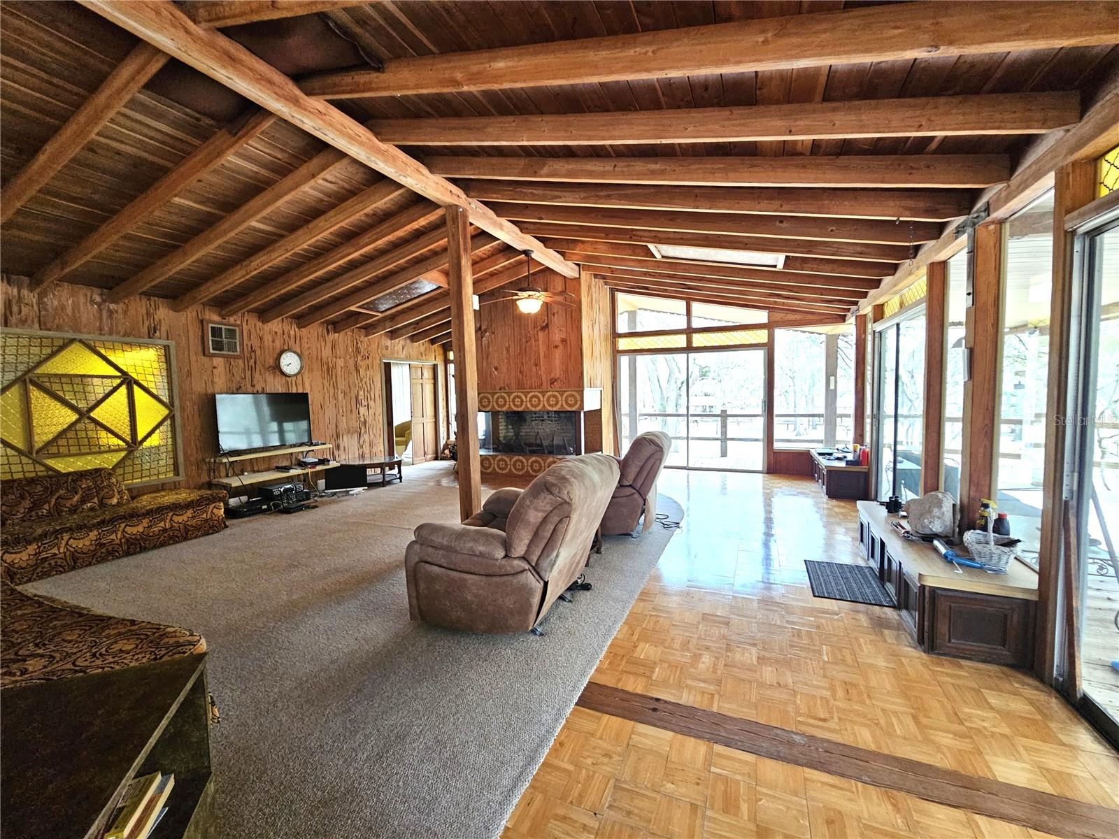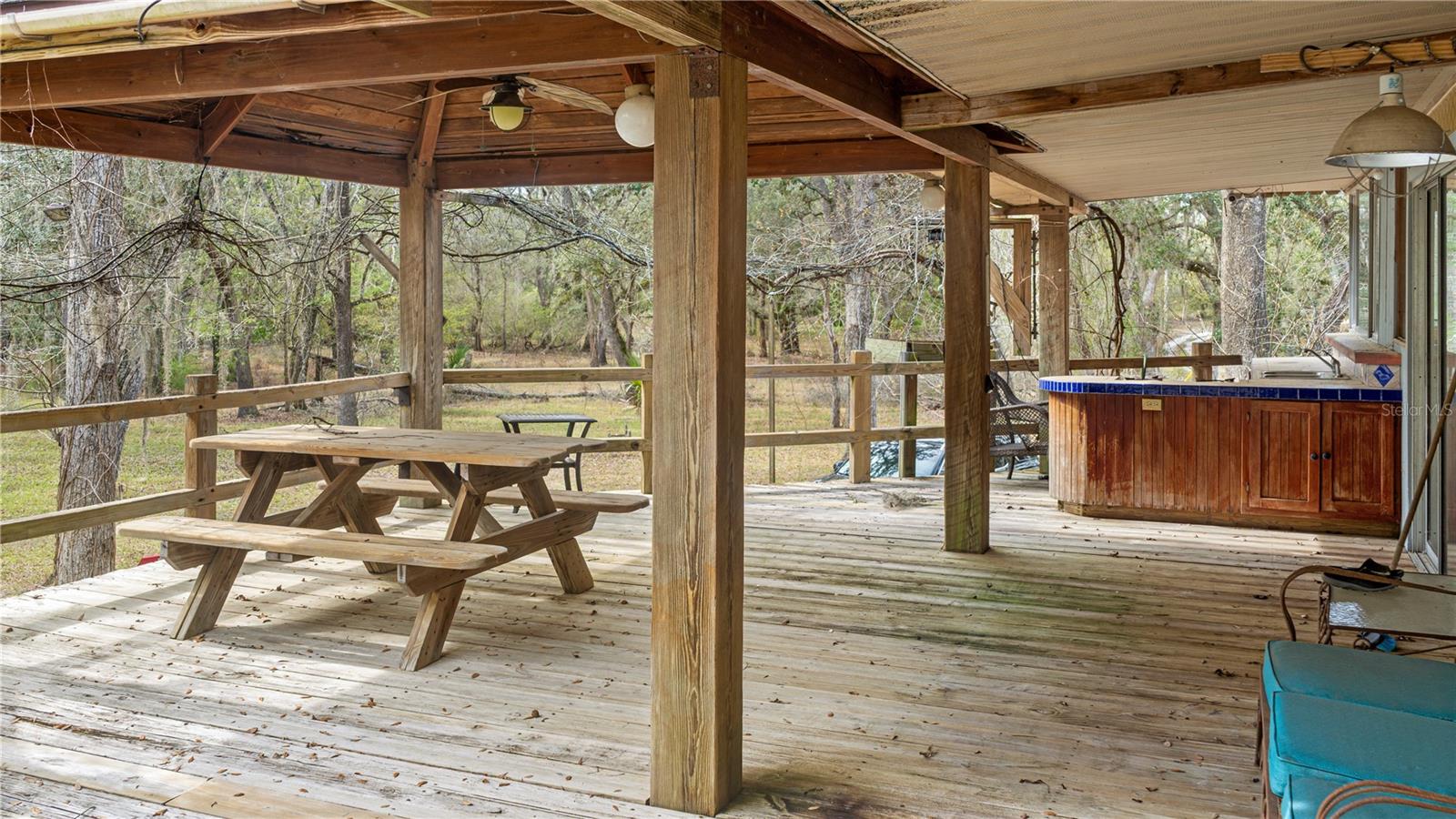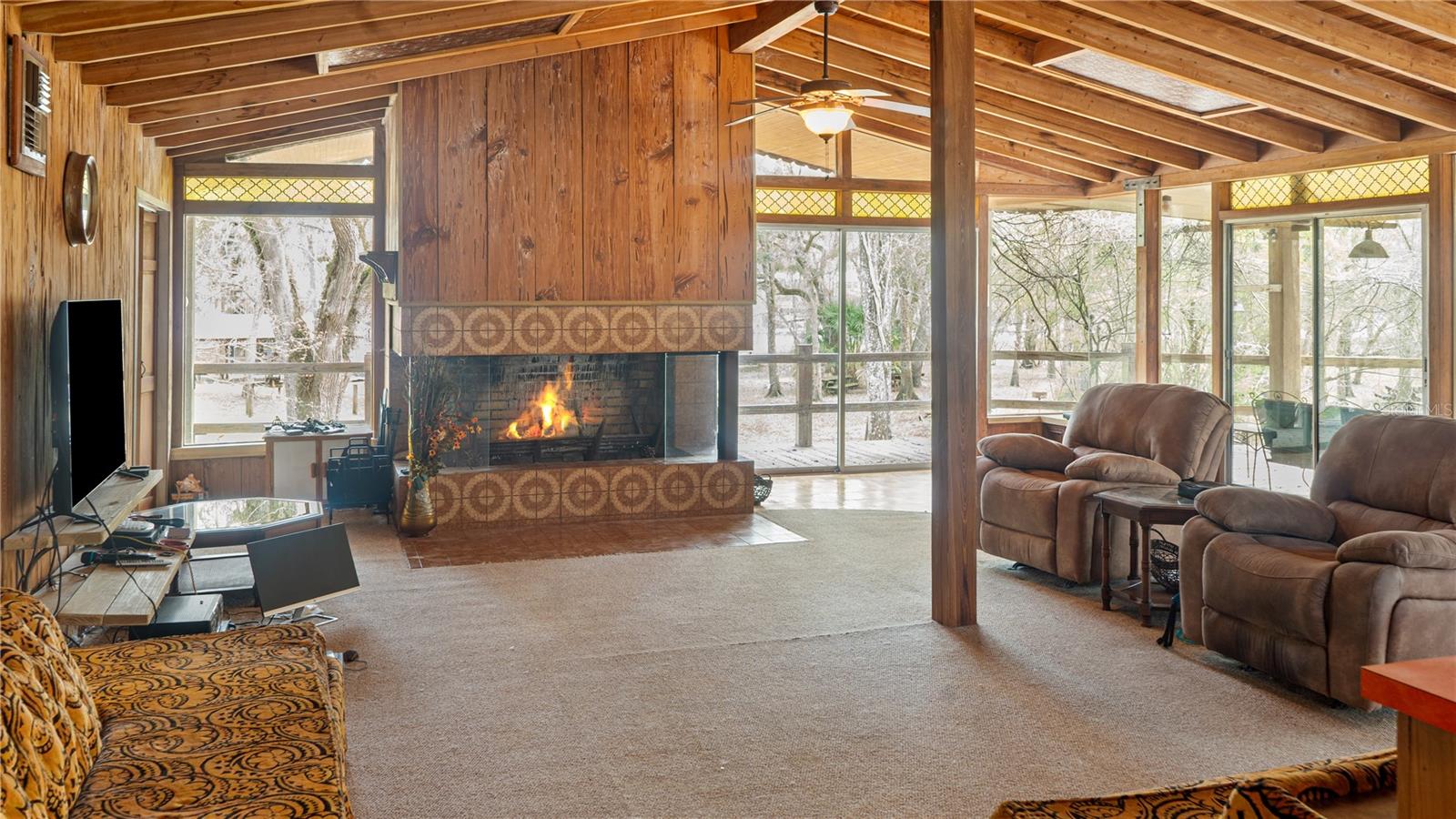 Uma oportunidade extraordinária de possuir quase 800 metros de frente imaculada do Rio Suwannee em aproximadamente 36,9 acres no norte da Flórida. Esta notável propriedade à beira-rio oferece aproximadamente 2.017 pés de fachada ao longo de um dos trechos mais bonitos e intocados do rio Suwannee, completo com uma praia de areia natural e vistas deslumbrantes da paisagem circundante. Situada bem acima do rio, a propriedade dispõe de uma casa elevada em estilo lodge de 2.444 pés quadrados, com 3 quartos e 4 banheiros, projetada para capturar a beleza de seu ambiente natural. A residência apresenta altos tetos abobadados de madeira, amplas janelas emoldurando vistas panorâmicas do rio e uma dramática lareira de pedra que serve como peça central da área de estar principal. Inspirada em elementos de design moderno de meados do século e materiais naturais, a casa combina perfeitamente com a paisagem e oferece um ambiente tranquilo, semelhante a uma casa na árvore, com vista para o rio. Uma espaçosa varanda envolvente oferece o lugar perfeito para relaxar e apreciar a paisagem tranquila. A propriedade também inclui um arrendamento soberano de terras submersas do Departamento de Proteção Ambiental da Flórida, cobrindo aproximadamente 22.609 pés quadrados do rio Suwannee designado para uma área comercial de natação, historicamente usada para recreação fluvial associada à propriedade. Estruturas e melhorias adicionais permanecem em toda a propriedade, incluindo pavilhões, áreas de reunião e espaços recreativos. Anteriormente, essas áreas apoiavam reuniões e eventos ao ar livre, preservando o caráter natural do terreno. Os serviços públicos incluem serviço elétrico, água de poço, sistemas sépticos, encanamento subterrâneo em todas as partes da propriedade e disponibilidade de internet de fibra óptica. A paisagem oferece uma bela mistura de árvores maduras, espaços abertos e vistas panorâmicas do rio com sol e sombra em toda a propriedade. Localizada no coração da famosa região de nascente da Flórida, a propriedade fica perto de Ginnie Springs, Gilchrist Blue Springs, Poe Springs e Rock Bluff Springs. As conveniências diárias, incluindo mercearias, consultórios médicos, restaurantes e bancos, ficam a aproximadamente dez minutos de distância, enquanto Gainesville e Lake City ficam a cerca de quarenta e cinco minutos. Esta propriedade única à beira-rio oferece privacidade excepcional, beleza natural e uma rara oportunidade de possuir um trecho significativo da fachada do Rio Suwannee.