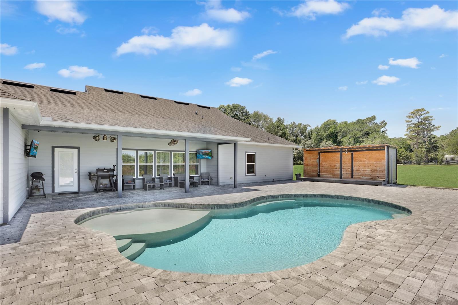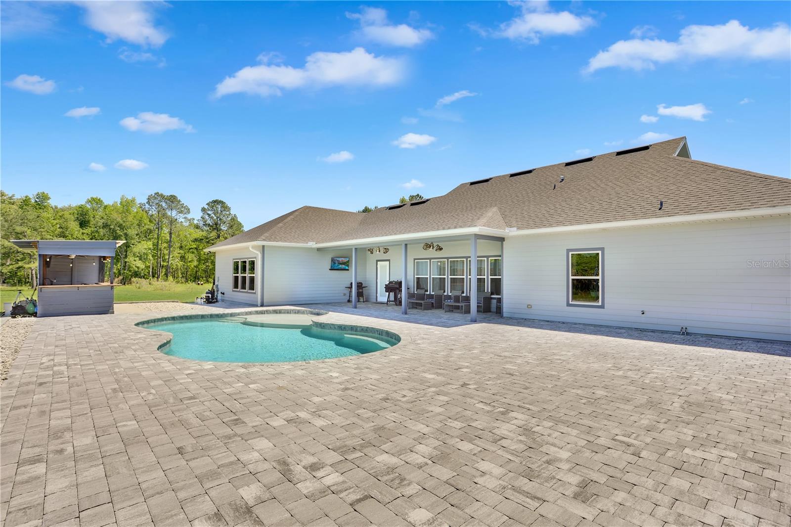 Fuja para o seu próprio santuário privado com esta magnífica propriedade de 5 quartos e 3 banheiros que se estende por 7,71 acres de paisagem deslumbrante em Lacrosse, FL! Ao passar pela majestosa entrada adornada com videiras, pereiras e caquis japoneses, prepare-se para se encantar pela beleza do ambiente. Construída sob medida em 2020, esta casa é uma prova de uma vida luxuosa com cada detalhe cuidadosamente considerado e cada atualização cuidadosamente implementada. A cozinha é uma delícia para o chef, com eletrodomésticos em inox, forno duplo, bancada em granito, uma ampla ilha e uma despensa de que são feitos sonhos. A sala exala calor e elegância, bela lareira de tijolos, adornada com tetos de bandeja e inundada de luz natural que entra pelas abundantes janelas. Retire-se para a suíte master, onde os tetos em bandeja adicionam um ar de sofisticação e um espaçoso closet oferece amplo armazenamento. O banheiro principal é um oásis semelhante a um spa, com um amplo box amplo e pias para ele e ela. O armazenamento nunca será um problema com vários armários de linho cuidadosamente colocados em toda a casa. O entretenimento é fácil com muitas comodidades, incluindo uma piscina de água salgada totalmente nova, uma ampla varanda coberta perfeita para relaxar e grelhar ao ar livre, um bar coberto ao ar livre para preparar coquetéis, um banheiro e uma área coberta ideal para hospedar entretenimento ao vivo. Para os entusiastas, realize seus sonhos com um celeiro de 24 x 60 postes, oferecendo amplo espaço para todos os seus brinquedos e hobbies. Os terrenos meticulosamente ajardinados, completos com sistema de irrigação, garantem que a beleza desta propriedade seja mantida com facilidade. Zoneado para Ag. Sem HOA ou restrições de escritura. Convenientemente localizada a poucos minutos de Alachua, Gainesville e High Springs, e a 30 minutos do Santa Fe College, do University of Florida College, do Shands Hospital e do HCA North Florida Hospital, esta propriedade oferece tranquilidade e acessibilidade. Não perca a oportunidade de personalizar esta extraordinária propriedade – agende hoje mesmo a sua visita privada!