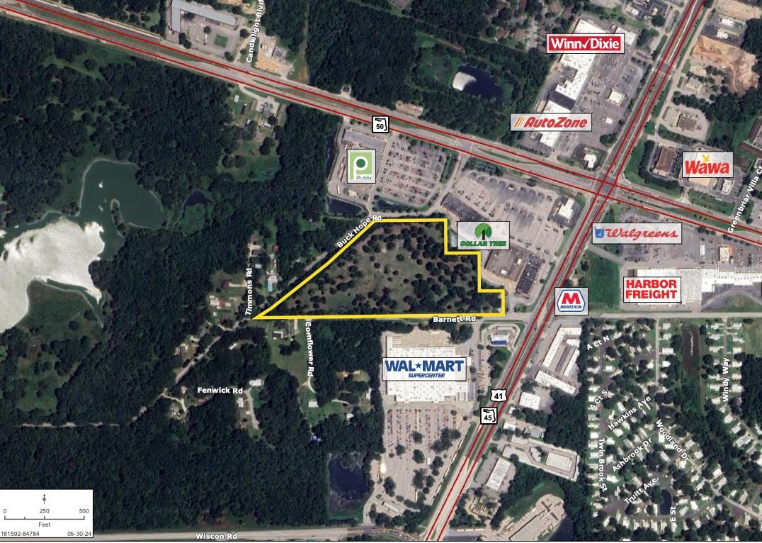 13,5 acres de terreno comercial vago localizado diretamente na Barnett Road e Buck Hope Road, muito próximo da US Highway 41 em Brooksville, FL. De acordo com a cidade de Brooksville, ± 13 acres da propriedade estão zoneados como PDP-C (usos comerciais da rodovia C-2). A quantidade máxima de espaço comercial é 396.396 pés quadrados. O outro 1/2 acre está na zona C-2. Os usos permitidos sob C-2 incluem, mas não estão limitados a, negócios em geral, paisagismo/creche, varejo/centro comercial, reparo e vendas de veículos, cervejaria, restaurantes, escritório de empreiteiros, bar/lounge, centros de diagnóstico, serviços de apoio familiar, profissionais de saúde, hospital/centro médico, centro de reabilitação, serviços profissionais, funerária, armazenamento, armazenamento aberto, pátios de armazenamento e hotéis/motéis.
