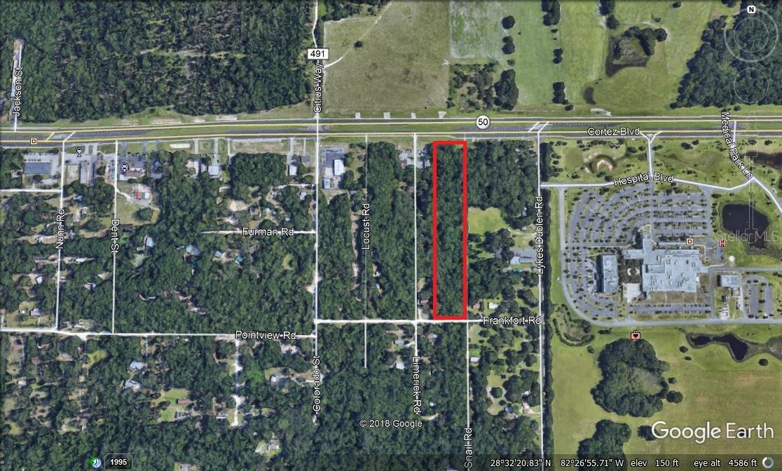 Potencial comercial, 5,40 acres MOL, Zoneamento R1A de frente para Cortez Blvd (Rodovia 50) localizado a uma quadra do Hospital Brooksville. A propriedade consiste em três (3): Chave #00997899 2,7 Acres MOL; Chave #00998004 2,3 acres MOL; e Chave # 997906 0,46 Acres MOL transforma a propriedade em um excelente bloco de terreno. Frente do imóvel seria privilegiada para rezoneamento para Comercial. A propriedade se estende da Cortez Blvd. para os fundos das casas na Frank Fort Road.