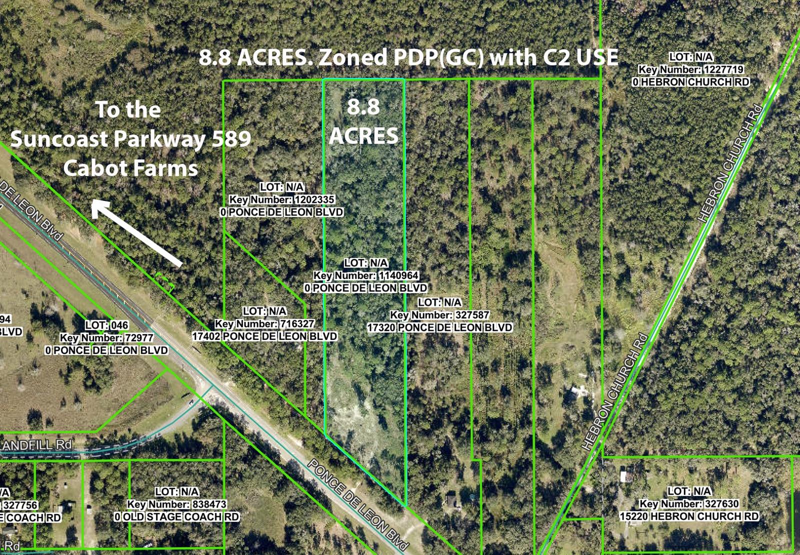 Terreno Comercial!! PDP ZONADO DE 8,8 ACRES (GC) com USO C2!! Localizado diretamente em Ponce de Leon (US 98), a leste de 589 (Suncoast Parkway) e Cabot Farms!! ÓTIMO ZONEAMENTO!!! ÁREA DE CRESCIMENTO!!