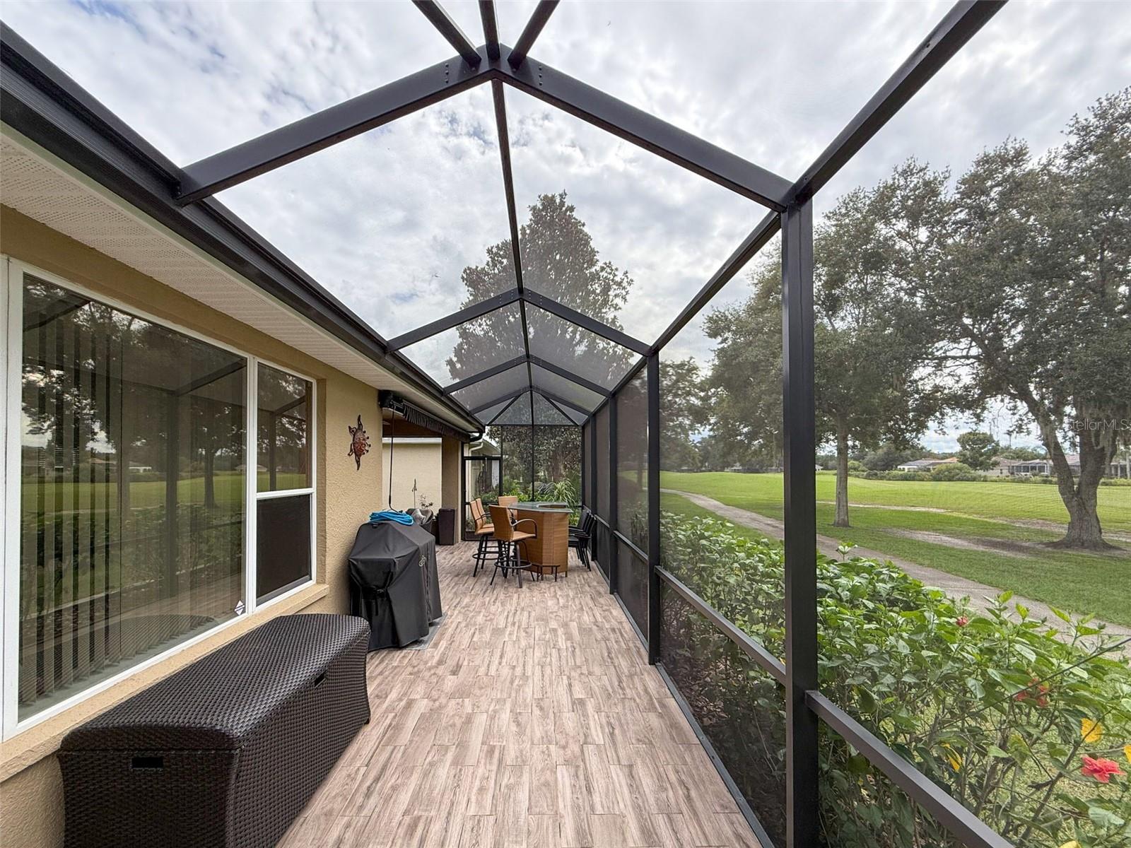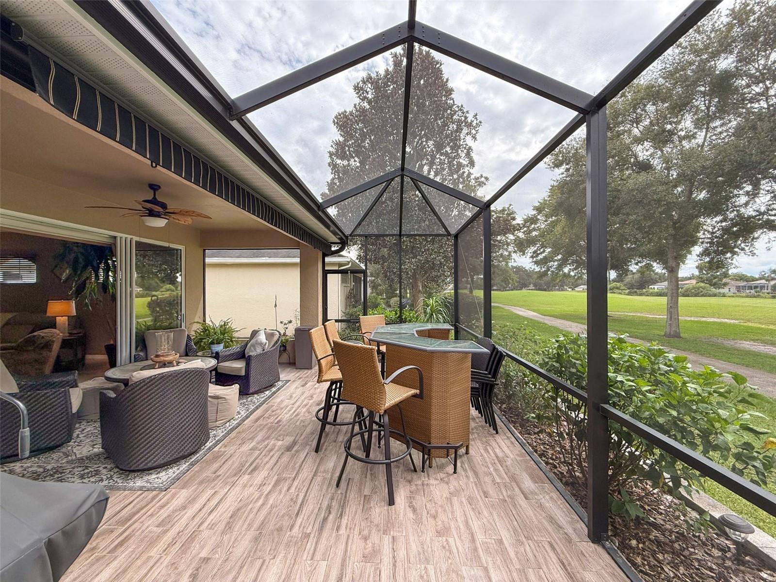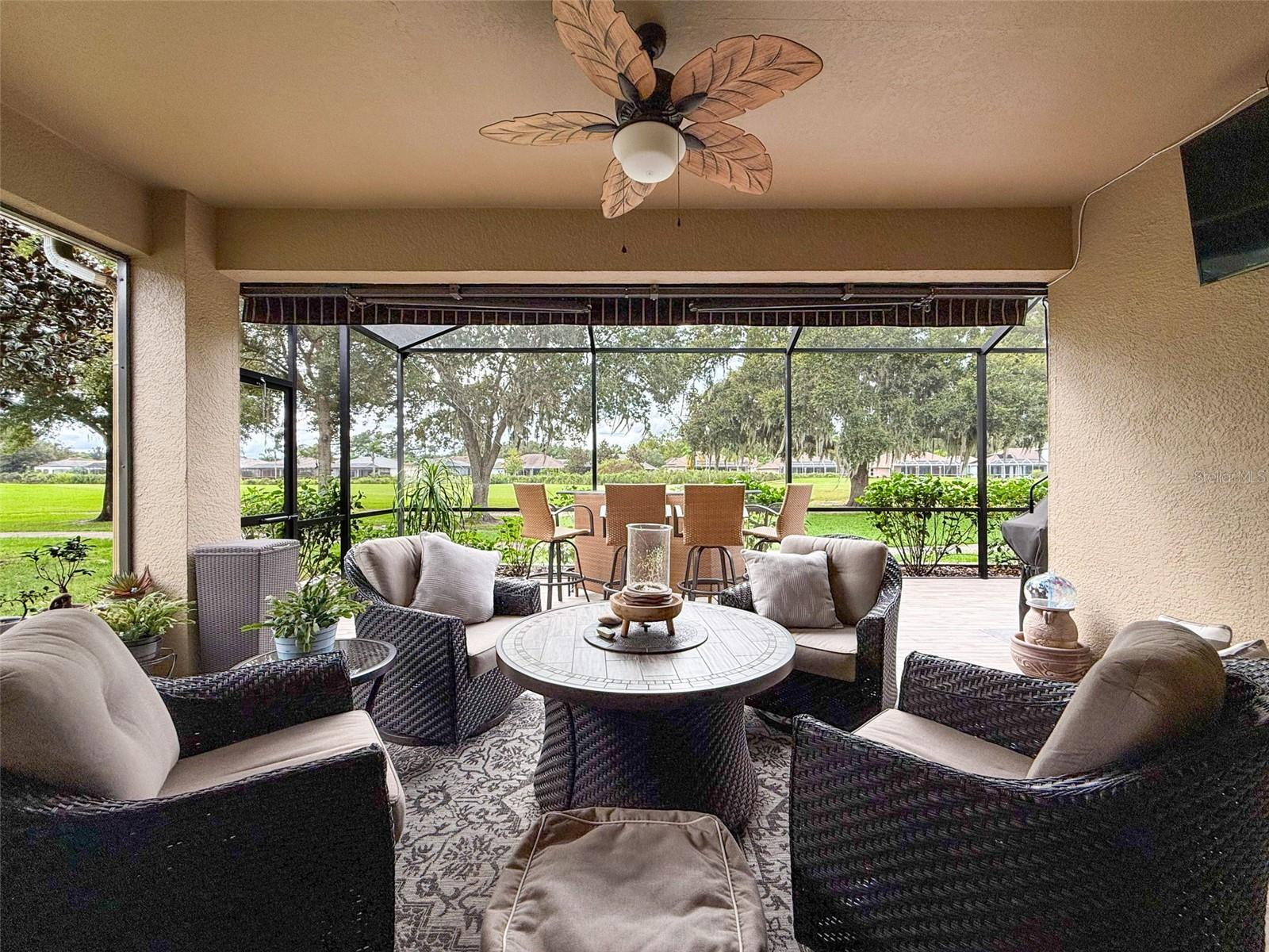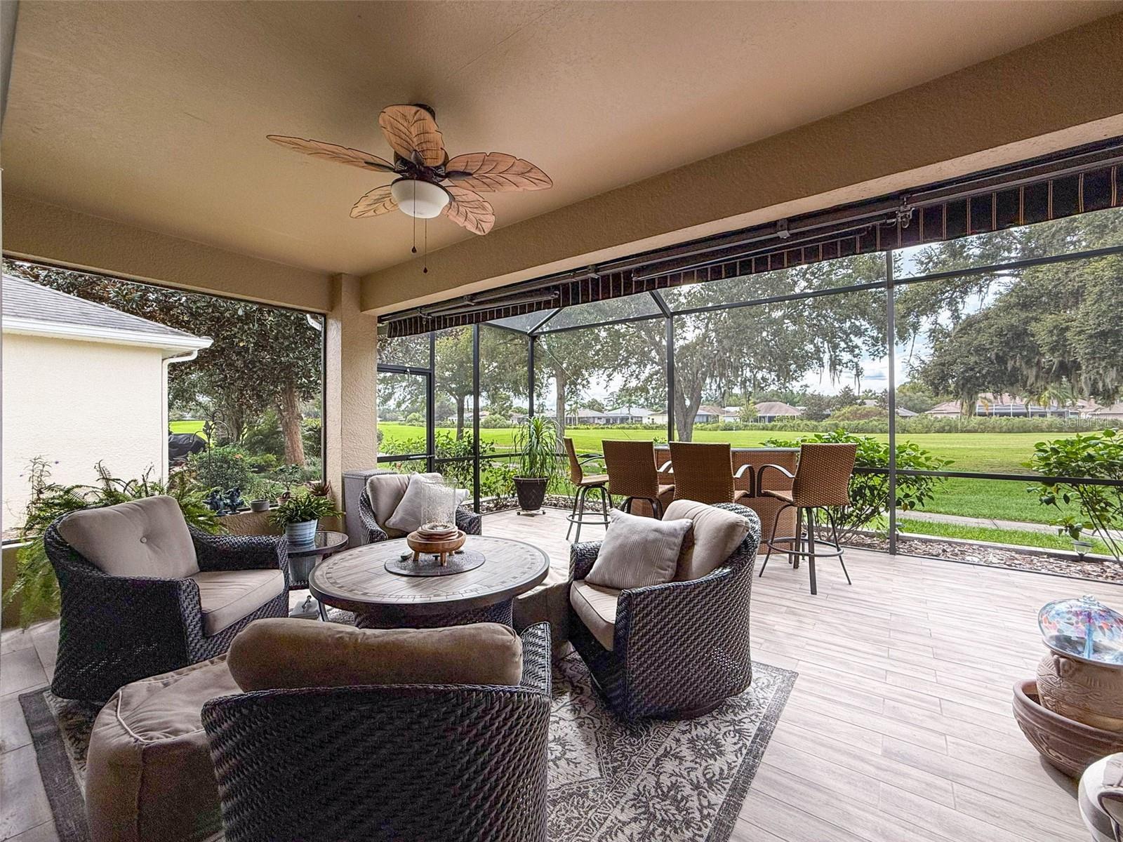 Bem-vindo à villa dos seus sonhos! Esta deslumbrante casa de 3 quartos e 2 banheiros apresenta uma planta aberta convidativa que combina perfeitamente a vida moderna com conforto. A espaçosa sala de estar, perfeita para relaxamento e entretenimento, transita perfeitamente para uma área de jantar e uma cozinha bem equipada. A cozinha possui eletrodomésticos contemporâneos, armários amplos e um balcão para café da manhã que convida a refeições casuais. A suíte master é um retiro sereno, com banheiro privativo com pias duplas, banheira de imersão e chuveiro separado. Dois quartos adicionais oferecem muito espaço para a família, convidados ou um escritório doméstico, todos servidos por um elegante banheiro de hóspedes. O destaque desta villa é, sem dúvida, o deck traseiro ampliado e protegido, que oferece vistas deslumbrantes sobre o campo de golfe. Com um toldo retrátil, você pode ajustar facilmente seu espaço ao ar livre para sol ou sombra, tornando-o ideal para refeições ao ar livre ou café da manhã. O deck é perfeito para receber reuniões ou simplesmente desfrutar do ambiente tranquilo. Situada num bairro tranquilo, esta villa faz parte de uma comunidade ativa que oferece uma variedade de comodidades. Os residentes podem desfrutar de acesso a um clube acolhedor, onde podem socializar com os vizinhos ou participar em eventos comunitários. Eventos de música ao vivo nas noites de sexta-feira criam uma atmosfera vibrante, garantindo que sempre haja algo acontecendo por perto. Se você procura uma mistura harmoniosa de luxo, conveniência e um estilo de vida envolvente, esta propriedade é imperdível. Agende hoje mesmo sua visita e imagine sua nova vida nesta casa excepcional!