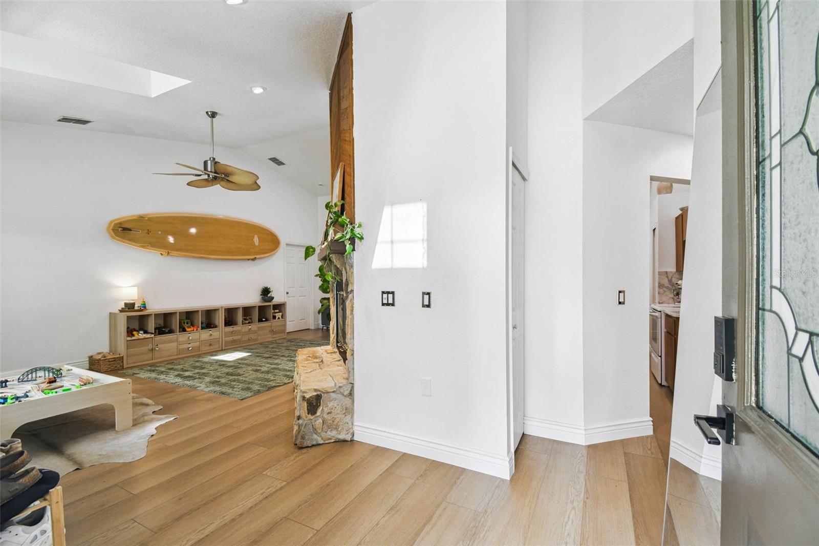 Bem-vindo a este retiro de um andar lindamente atualizado, situado em pouco mais de 2 acres de terreno privado e tranquilo. Cuidadosamente projetada com uma planta dividida, esta residência oferece 3 quartos, 2 banheiros, garagem para 2 carros e uma combinação perfeita de conforto, charme e atualizações modernas. Entre em um layout aberto e cheio de luz, aprimorado pelo novíssimo piso de pranchas de vinil de luxo Churchill Oak Deluxe Performance. A convidativa sala grande apresenta tetos abobadados e uma impressionante lareira de pedra personalizada a lenha, criando um ponto focal aconchegante quando você entra. A cozinha atualizada é um verdadeiro destaque, apresentando bancadas de dolomita totalmente novas, acessórios modernos e excelente luz natural. A espaçosa área de alimentação oferece muito espaço para a família e amigos se reunirem e desfrutarem de refeições juntos. A generosa suíte principal oferece um retiro tranquilo com dois closets e portas francesas que levam diretamente à varanda. Os quartos adicionais e banheiro estão perfeitamente posicionados no lado oposto da casa, oferecendo conforto e privacidade para familiares ou convidados. Uma espaçosa sala de família na ala direita da casa é uma sala de cinema, sala de jogos ou uma segunda área de estar relaxante ideal. Saia para o seu oásis privado. A varanda protegida tem vista para uma linda piscina de água salgada com uma cachoeira tranquila, criando o cenário perfeito para a vida ao ar livre. Perto dali, um gazebo personalizado completo com ventilador de teto, pia, lareira de pedra e forno de pizza oferece um espaço incrível para entretenimento o ano todo. O quintal também possui uma área dedicada para fogueira e um belo lago. O proprietário melhorou cuidadosamente o terreno, removendo vários pinheiros grandes, abrindo a área cultivada e criando um caminho sereno para caminhada ao redor do lago. Um charmoso galinheiro fica dentro da área cercada. Os amantes da natureza apreciarão a abundância de árvores frutíferas, incluindo laranjeiras, limoeiros, macieiras e limoeiros maduros, bem como bananeiras, sabugueiros, goiabeiras, cerejeiras, amoreiras e figueiras recém-plantadas. As plantações adicionais incluem ervas, babosa, chaya, katuk e bucha. Recursos práticos são abundantes, incluindo uma garagem para dois carros, uma garagem adicional para dois carros e uma conveniente entrada de automóveis em semicírculo para fácil acesso. A casa está equipada com painéis solares totalmente pagos (5 kW, montados no solo) que retroalimentam a rede, proporcionando eficiência energética excepcional e custos de serviços públicos significativamente reduzidos. Uma tomada de 50 A também está instalada para conexão de gerador, perfeita para sua tranquilidade. As atualizações recentes incluem: Nova pintura externa (2024), Novo aquecedor de água de 50 galões (2024), Telhado de metal e ventilador de sótão movido a energia solar (2017), Argônio de painel duplo, janelas cheias de espuma (aprox. 2018) Campo de fossa séptica substituído (aprox. 2018) Substituição do inversor solar (2023), inspeção de 4 pontos aprovada em 2024, Novo piso de vinil de luxo de luxo (2025) Novas bancadas de dolomita (2025) Esta propriedade excepcional oferece espaço, privacidade, conveniência moderna e um estilo de vida que faz você se sentir em casa desde o momento de sua chegada. Casas como esta em área cultivada, atualizadas e realmente prontas para morar são raras. Não perca a oportunidade de torná-lo seu.