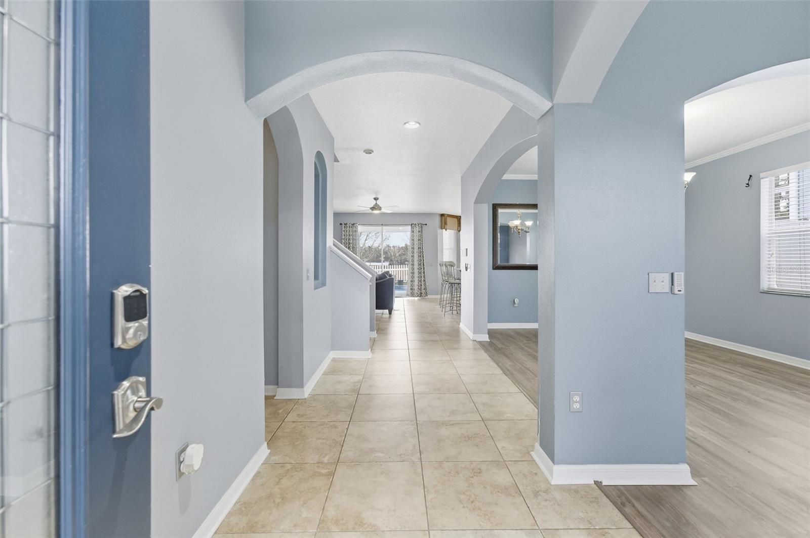Bem-vindo a esta espaçosa residência de 2.354 pés quadrados escondida em uma rua sem saída tranquila em um condomínio altamente desejável. A suíte principal está convenientemente localizada no térreo, oferecendo privacidade e conforto, além de um lavabo adicional perfeito para os hóspedes. No andar de cima, você encontrará três quartos de áreas generosas, um banheiro completo compartilhado e uma área comum versátil ideal para sala de jogos, home office ou lounge. Desfrute de manhãs relaxantes na varanda coberta da frente e relaxe no quintal privativo com piscina - perfeita para se refrescar nos dias quentes. Localizado do outro lado da rua do centro de comodidades comunitárias, você terá fácil acesso a uma grande piscina em estilo resort, academia de ginástica recém-projetada, quadra de basquete e playground. Idealmente situada perto de lojas, restaurantes e acesso rápido à Suncoast Parkway, esta casa oferece a combinação perfeita de espaço, conveniência e estilo de vida.