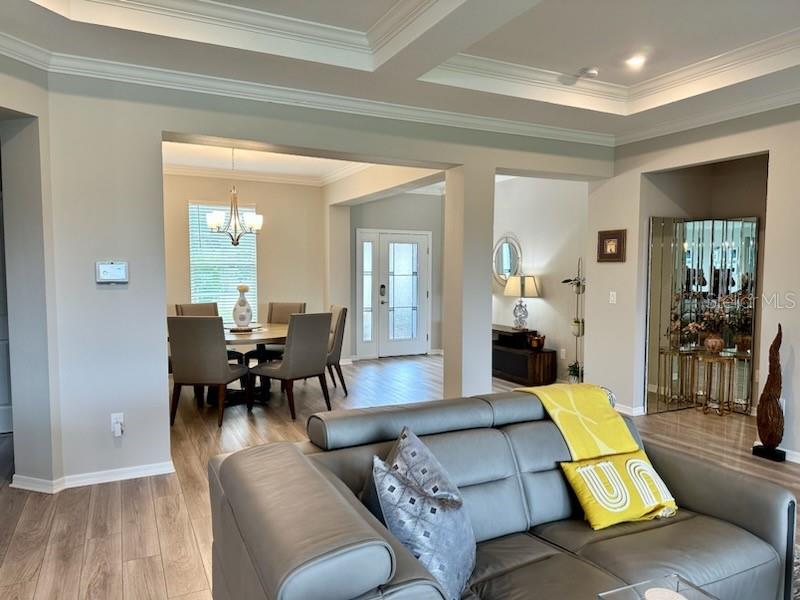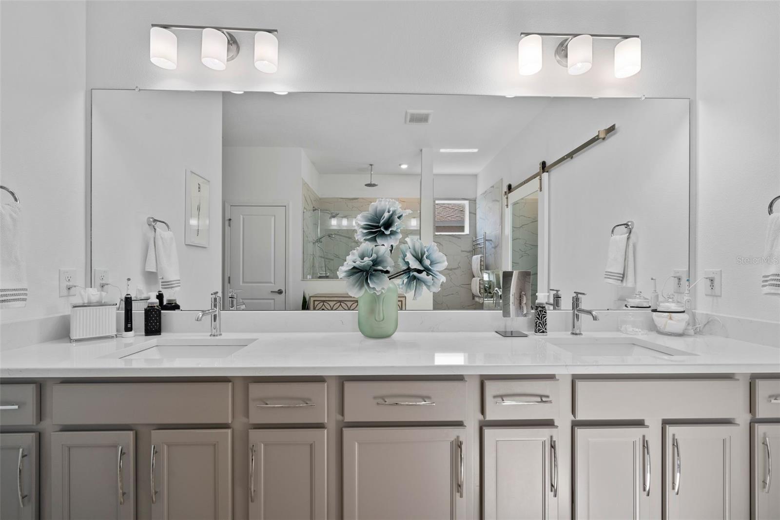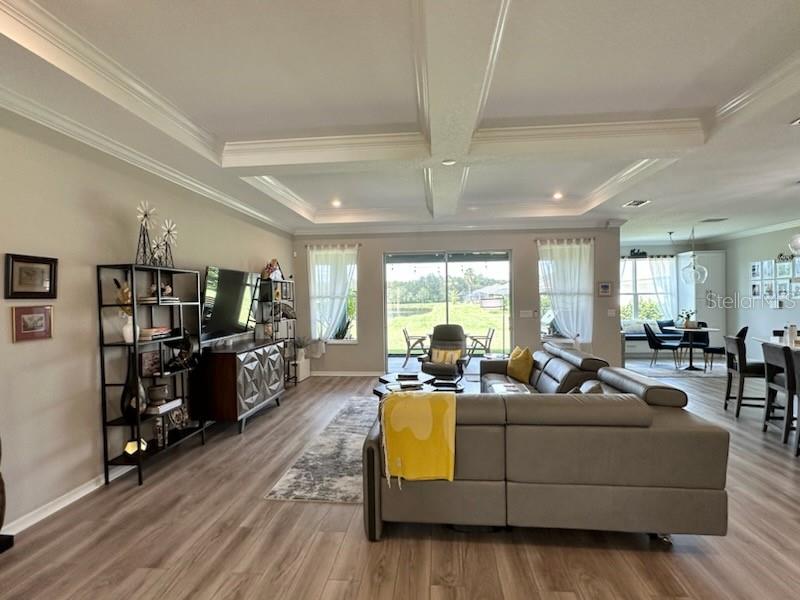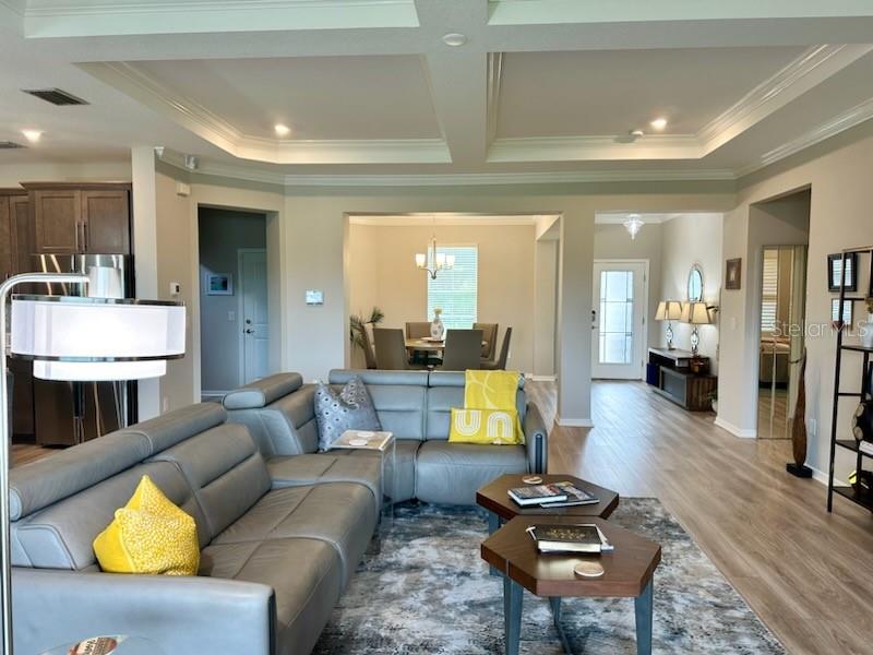 MELHORIA DE PREÇO! Esta elegante casa contemporânea está pronta para morar e localizada na comunidade com mais de 55 anos de Cascades of Southern Hills. A casa foi meticulosamente mantida e oferece 2.342 pés quadrados de área útil, 3 quartos (o 3º quarto tem armário/closet anexo), 2 banheiros completos, ½ banheiro e garagem para 3 carros. Foi construído em 2022 e é um modelo Seabrook da Inland Homes com planta de conceito aberto. Ao entrar na casa, você será recebido por um amplo hall de entrada que se abre para uma linda sala de estar com uma vista deslumbrante para a lagoa. A casa também inclui sala de jantar, cozinha e copa. A moderna cozinha de estilo europeu possui uma ilha grande e curva que oferece muito espaço no balcão e assentos, bancadas de quartzo, fogão de indução GE Café atualizado, forno de parede combinado Advantium / convecção embutido GE Café, despensa walk-in e backsplash de quartzo. Outras atualizações personalizadas incluem armários de fechamento suave de 96 ”de altura com gavetas e um assento na janela com gavetas de armazenamento na copa. Há armários na lavanderia para armazenamento extra, luxuosos pisos de pranchas de vinil em toda a casa, persianas, tetos com sancas no quarto principal e na sala de estar, fiação para som surround na sala de estar, chuveiro com efeito de chuva separado e uma porta de celeiro espelhada instalada no closet do banheiro principal. A varanda possui pavimentação de porcelana, circuito dedicado de 220V 40amps para futura conexão ao spa, 2 telas motorizadas totalmente retráteis para permitir uma abertura completa de 35 pés para um espaço externo expandido na varanda que oferece privacidade ou simplesmente desfrutar da vista tranquila da lagoa de o quintal. A garagem tem pavimento em epóxi e existe elevador para a arrecadação do sótão. Esta propriedade está convenientemente localizada perto de lojas, restaurantes, hospitais, parques e entretenimento. Não perca a oportunidade nesta linda casa.