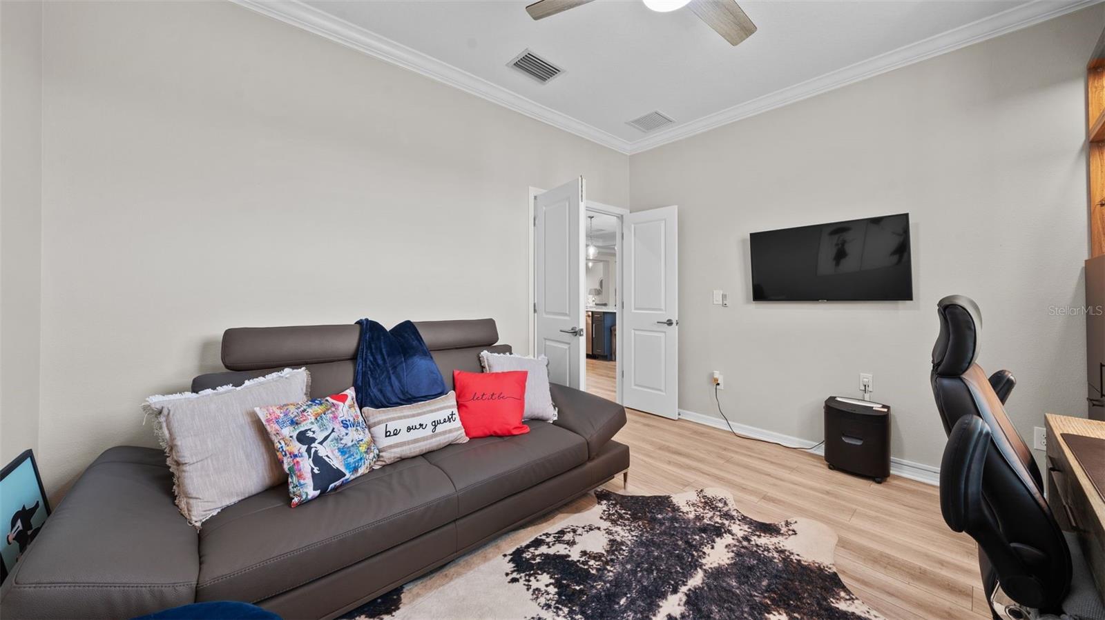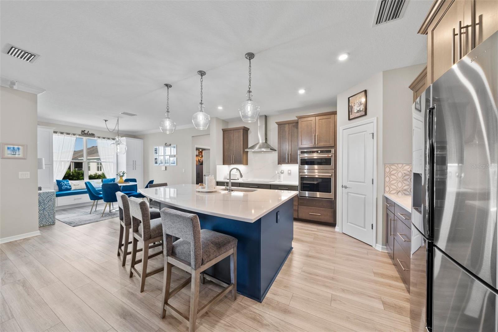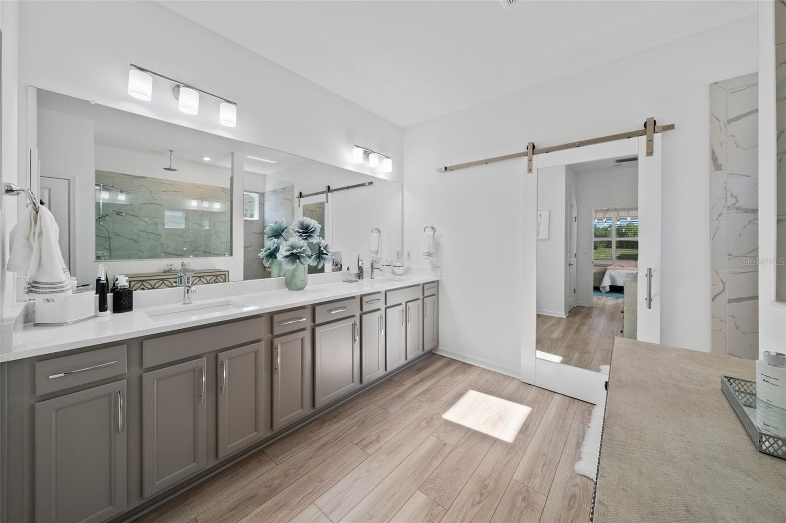 MELHORIA DE PREÇO! Esta elegante casa contemporânea está pronta para morar e localizada na comunidade com mais de 55 anos de Cascades of Southern Hills. A casa foi meticulosamente mantida e oferece 2.342 pés quadrados de área útil, 3 quartos (o 3º quarto tem armário/closet anexo), 2 banheiros completos, ½ banheiro e garagem para 3 carros. Foi construído em 2022 e é um modelo Seabrook da Inland Homes com planta de conceito aberto. Ao entrar na casa, você será recebido por um amplo hall de entrada que se abre para uma linda sala de estar com uma vista deslumbrante para a lagoa. A casa também inclui sala de jantar, cozinha e copa. A moderna cozinha de estilo europeu possui uma ilha grande e curva que oferece muito espaço no balcão e assentos, bancadas de quartzo, fogão de indução GE Café atualizado, forno de parede combinado Advantium / convecção embutido GE Café, despensa walk-in e backsplash de quartzo. Outras atualizações personalizadas incluem armários de fechamento suave de 96 ”de altura com gavetas e um assento na janela com gavetas de armazenamento na copa. Há armários na lavanderia para armazenamento extra, luxuosos pisos de pranchas de vinil em toda a casa, persianas, tetos com sancas no quarto principal e na sala de estar, fiação para som surround na sala de estar, chuveiro com efeito de chuva separado e uma porta de celeiro espelhada instalada no closet do banheiro principal. A varanda possui pavimentação de porcelana, circuito dedicado de 220V 40amps para futura conexão ao spa, 2 telas motorizadas totalmente retráteis para permitir uma abertura completa de 35 pés para um espaço externo expandido na varanda que oferece privacidade ou simplesmente desfrutar da vista tranquila da lagoa de o quintal. A garagem tem pavimento em epóxi e existe elevador para a arrecadação do sótão. Esta propriedade está convenientemente localizada perto de lojas, restaurantes, hospitais, parques e entretenimento. Não perca a oportunidade nesta linda casa.