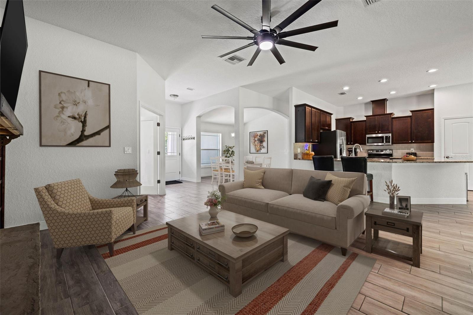 Bem-vindo à casa dos seus sonhos em estilo artesão, situada em 10 acres de terra em Brooksville! Esta construção meticulosamente elaborada de 2022 oferece uma mistura harmoniosa de comodidades modernas e charme clássico. Com 3 quartos com Espaço Extra Flex/Escritório, 2 banheiros e garagem para 2 carros com entrada lateral privativa, esta casa foi projetada para conforto de longo prazo e um estilo de vida descontraído. Ao entrar, você é recebido por uma convidativa planta baixa aberta que conecta perfeitamente as áreas de estar, jantar e cozinha. A cozinha aberta da península é uma delícia para o chef, completa com elegantes bancadas de granito, amplo armário extra-alto e uma aconchegante copa que traz luz natural para sua xícara de café matinal. A planta dos quartos divididos garante privacidade, com a grande suíte principal localizada de um lado da casa e dois quartos de hóspedes com banheiro completo do outro. O banheiro principal possui pias duplas, uma luxuosa banheira de imersão, um box amplo separado e closets espaçosos, oferecendo um oásis privativo para relaxamento. No exterior, uma garagem separada com 2 portas proporciona armazenamento adicional e espaço de trabalho para os seus hobbies ou projetos. Ao chegar, o portão elétrico controlado remotamente leva a uma entrada pavimentada extra longa garantindo segurança e privacidade no final do beco sem saída. Delicie-se com a vida ao ar livre da Flórida na varanda dos fundos, onde um spa com jacuzzi o aguarda após um longo dia. Desfrute da tranquilidade da paisagem envolvente nesta comunidade tranquila, onde a natureza se encontra com o luxo moderno. Com apenas dois anos de existência em um condomínio mais novo, todos com lotes grandes e semelhantes, esta casa é um achado raro, oferecendo a combinação perfeita de espaço aberto, belas opções de design e funcionalidade. Não perca a chance de tornar esta joia de Brooksville sua. Painéis de madeira facilmente removidos para uma aparência mais simples - Agende uma exibição privada hoje mesmo!