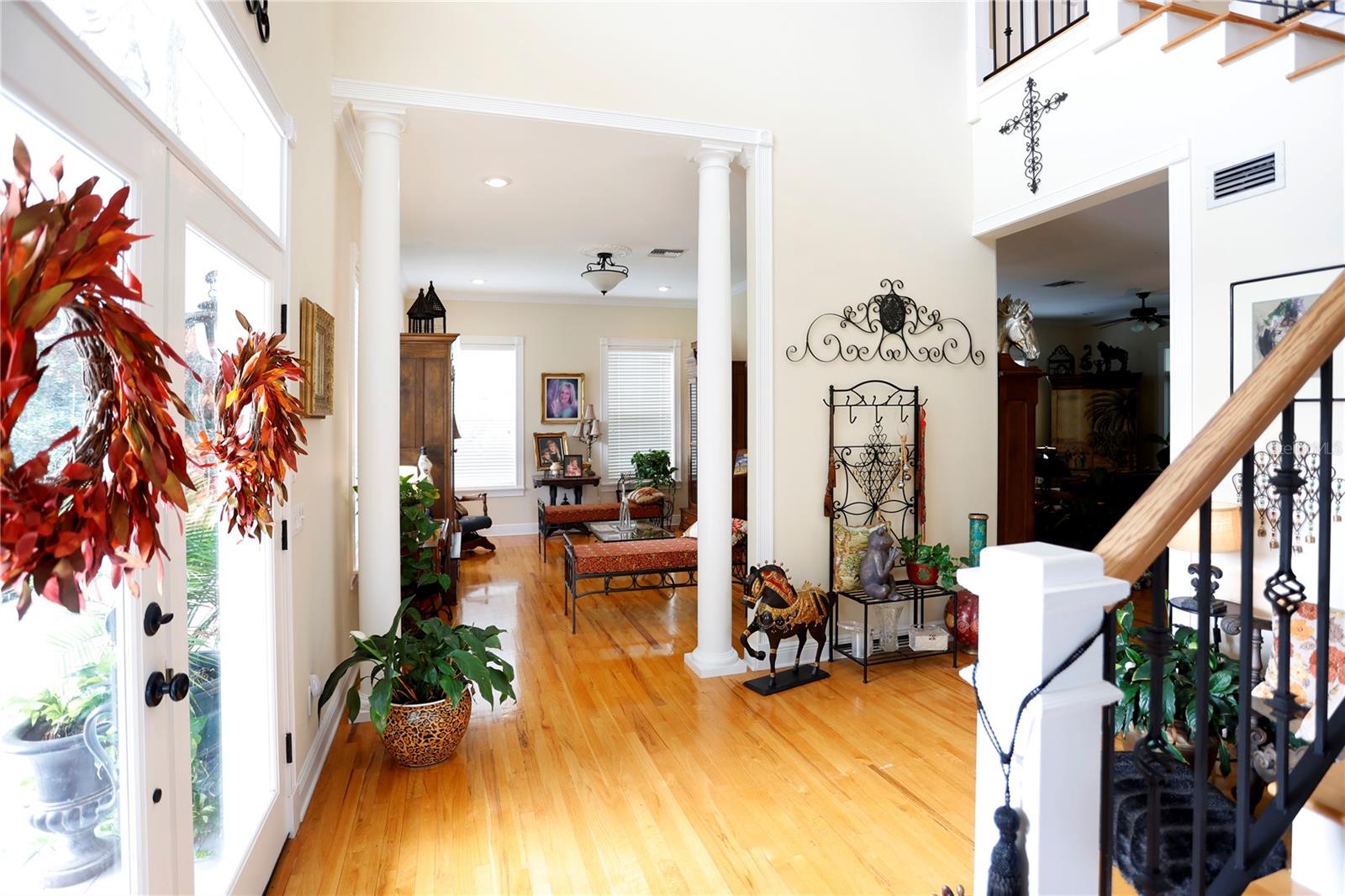 Estado equestre muito particular e muito bonito. 3/3 casa personalizada com um celeiro de 1.296 cavalos situado em 30,6 acres com vistas para a colina. A casa tem muitas janelas para trazer a luz natural e apreciar as vistas. Pisos de madeira de carvalho vermelho pelas principais áreas de estar. A cozinha tem uma linha de gás personalizada e uma grande ilha e bar de café da manhã. A planta tradicional tem um ótimo fluxo. Enormes varandas dianteiras e traseiras. O celeiro de cavalos e a área de animais são cercados da casa. O celeiro tem três barracas, além da sala de aderência e a capacidade de adicionar mais duas barracas sob o teto, se desejar, esse espaço está sendo usado para armazenamento. Cercada e cercada e caneta redonda que permanece com a propriedade. Os 30,6 acres já estão divididos em três parcelas de 10,2 acres para que você tenha a opção de mais dois casas ou pode vendê -las. O gerador doméstico inteiro é com fio e o Spectrum Internet está disponível. A localização é muito conveniente a apenas 45 minutos de Tampa e cerca de 45 minutos para Ocala e o World Equestrian Center.