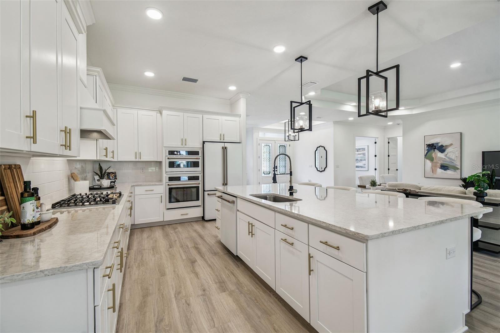 Sob ofertas de backup que aceitam contrato. Casa dos Sonhos ~ Preço dos Sonhos!!!! Esta deslumbrante casa de luxo da Vitale Homes está pronta para morar e disponível para fechamento rápido. O modelo Sawgrass oferece design inteligente, acabamentos elegantes e a atenção aos detalhes que você procura. A impressionante entrada de porta dupla dá as boas-vindas a um hall de entrada com teto escalonado e um amplo escritório com portas francesas e teto próprio. A partir daqui, as áreas abertas de estar, jantar e cozinha oferecem vistas amplas da varanda de grandes dimensões. A grande sala é destacada por um teto escalonado com sancas e uma porta de vidro deslizante de 4 painéis que estende perfeitamente seu espaço ao ar livre. Cada detalhe desta casa reflete elegância e conforto. Uma entrada de automóveis de grandes dimensões, varandas frontais e traseiras amplas, tetos altos de 3 a 3,6 metros e portas internas de 2,5 metros definem o cenário. Bancadas de quartzo fluem por toda a cozinha e banheiros, complementadas por eletrodomésticos embutidos e uma suíte do proprietário em estilo resort projetada para relaxamento e privacidade. A cozinha do chef é uma verdadeira peça de exibição, com uma enorme ilha que oferece armazenamento em ambos os lados, bancadas de quartzo, uma elegante torneira suspensa, um backsplash de azulejos e uma grande despensa. Armários brancos estilo shaker com parte superior de 42 polegadas, recursos de fechamento suave, ferragens douradas e um capô decorativo completam o visual do designer. Os eletrodomésticos de última geração incluem um fogão a gás de 5 bocas, fornos duplos, geladeira e lava-louças - todos com alças sofisticadas com detalhes dourados que fazem uma declaração impressionante. A suíte do proprietário é um retiro privado com luz natural abundante de várias janelas grandes, três closets grandes, uma banheira de imersão independente, um espaçoso chuveiro de azulejos com vidro sem moldura, pias duplas e um vaso sanitário privativo. O quarto de hóspedes 2 inclui seu próprio banheiro privativo e closet, enquanto o quarto de hóspedes 3 desfruta de acesso conveniente a uma banheira de piscina. Toques adicionais de designer em toda a casa incluem luminárias personalizadas, rodapés de cinco polegadas e peitoris de madeira, adicionando um elevado senso de estilo a todos os cômodos. Os recursos práticos são igualmente impressionantes. A espaçosa lavanderia inclui bancadas de quartzo, armários e pia, enquanto a garagem foi projetada com tetos altos, porta de entrada separada para carrinho de golfe e piso de epóxi em flocos para acabamento polido. A eficiência energética é maximizada com duas unidades HVAC separadas, construção de blocos de espuma isolados e janelas térmicas. Esta casa é mais do que apenas um lugar para morar – é uma experiência. Situado em Southern Hills Plantation, um condomínio privado e fechado, você terá acesso a um campo de golfe profissional Pete Dye Signature de 18 buracos, um driving range e um campo curto de seis buracos. Dois restaurantes no local, uma academia, piscina estilo resort, quadras de tênis e quadras de pickleball melhoram ainda mais o estilo de vida. Esta é uma rara oportunidade de desfrutar de um verdadeiro estilo de vida de clube de campo, cercado por belezas naturais e comodidades de classe mundial.
