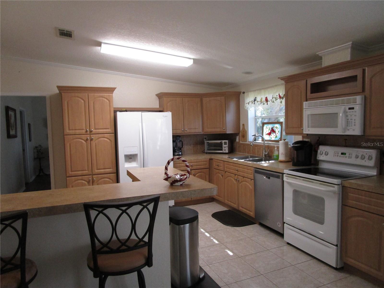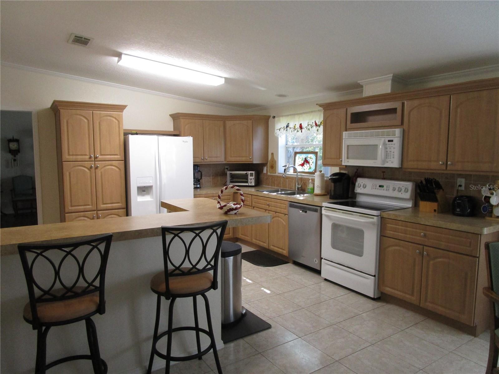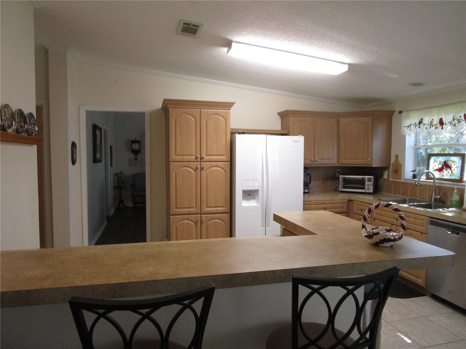 Home espetacular de Palm Harbor! A sra. Clean mora aqui em casa parece nova. Entre na grande sala com tetos altos, textura da parede de renda espanhola, ventilador de teto. Cozinha de tirar o fôlego É enorme, muitos armários, despensa, pacote de eletrodomésticos, muito espaço para entreter seu convidado. Sala de jantar formal ou sala de jogo/artesanato 16x14. O quarto primário é muito espaçoso em 22x24, ventiladores de teto, banheiro primário luxuoso, apresentando suas pias, pias de chuveiro, banheira de jardim, enorme caminhada no armário. Mais dois quartos do lado oposto da casa e um banheiro com banheira com combinação de banheira/chuveiro. Esta casa foi equipada com uma rampa na sala da FL e outra pequena rampa que levaria à lavanderia. FL Room tem janelas de vinil. O gerador de um ano de idade permanecerá Westinghouse Gen 5300C, existem 8 plugues na sala de estar que sairão do gerador. Brookridge é uma comunidade de mais de 55 anos com uma ótima casa de clubes, piscina aquecida, picada, tábua de embaralhamento, aeróbica aquática, tênis. O campo de golfe é extra se você quiser jogar golfe.